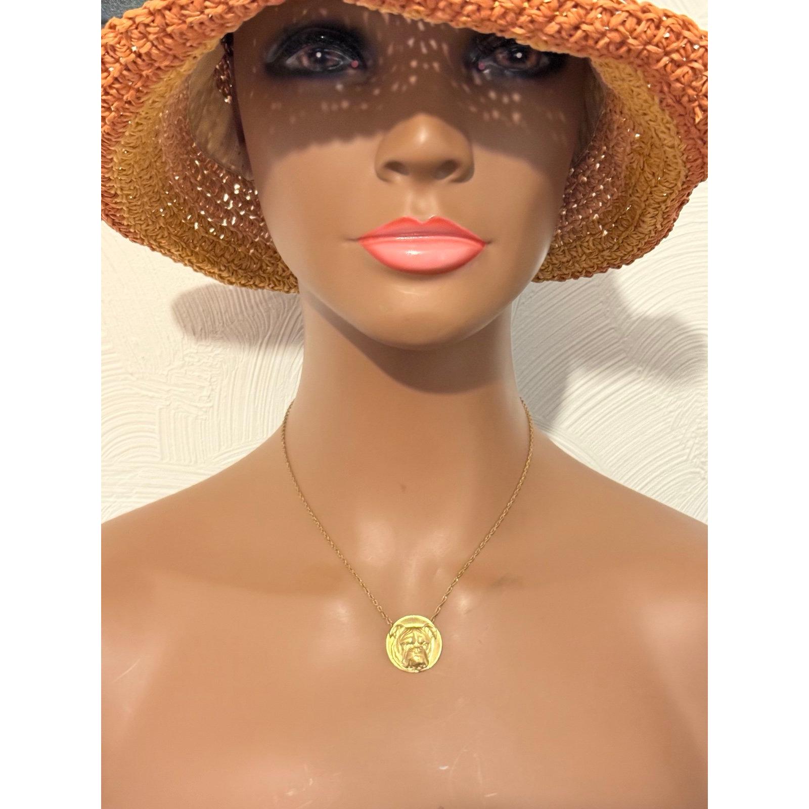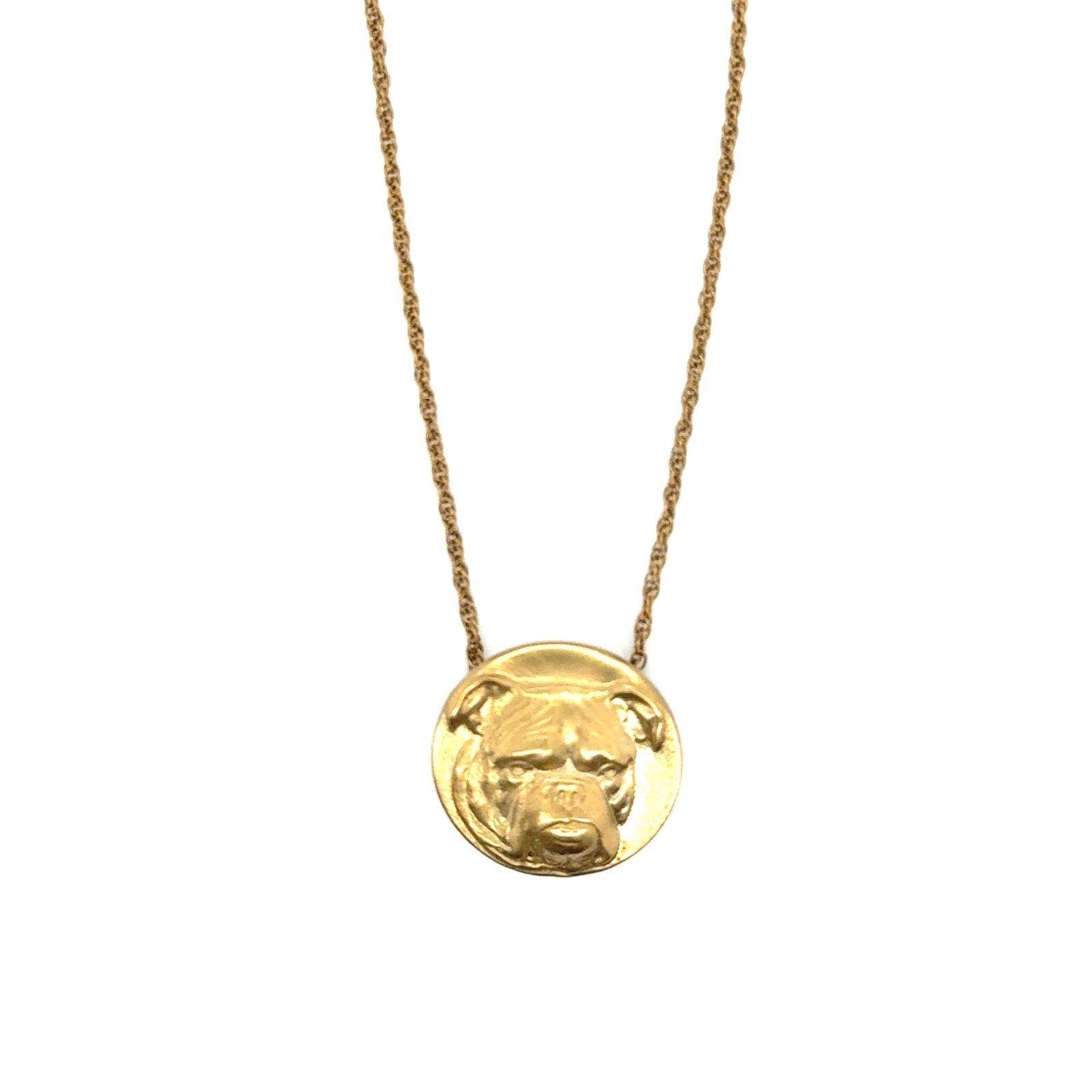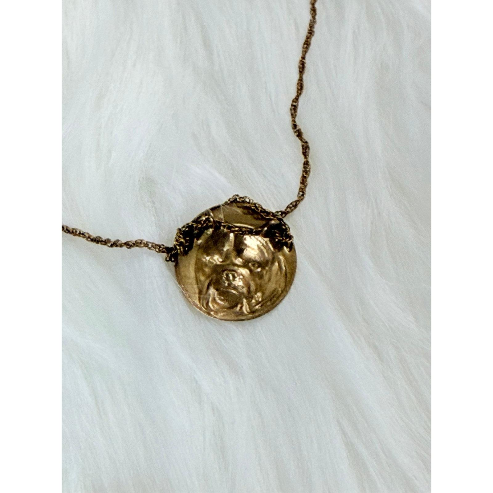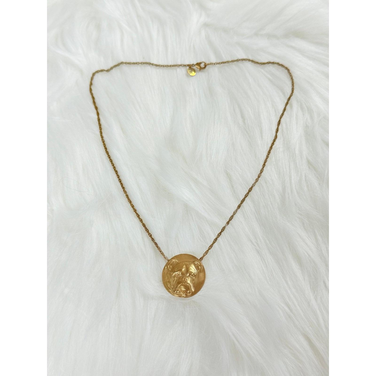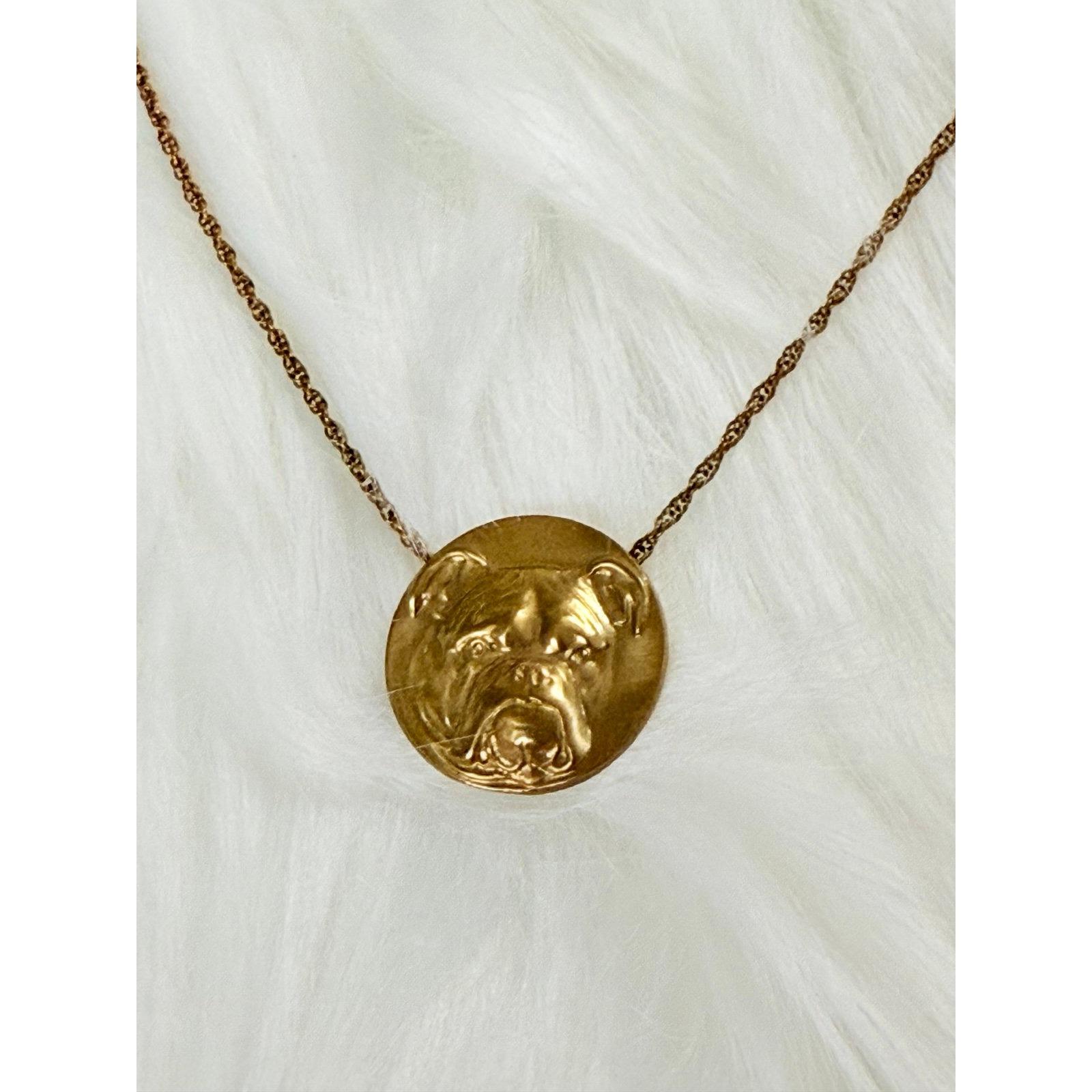 Not real goldSigned KE on the clasp Measures 16” LDog is 1” Preowned and chain shows wear
