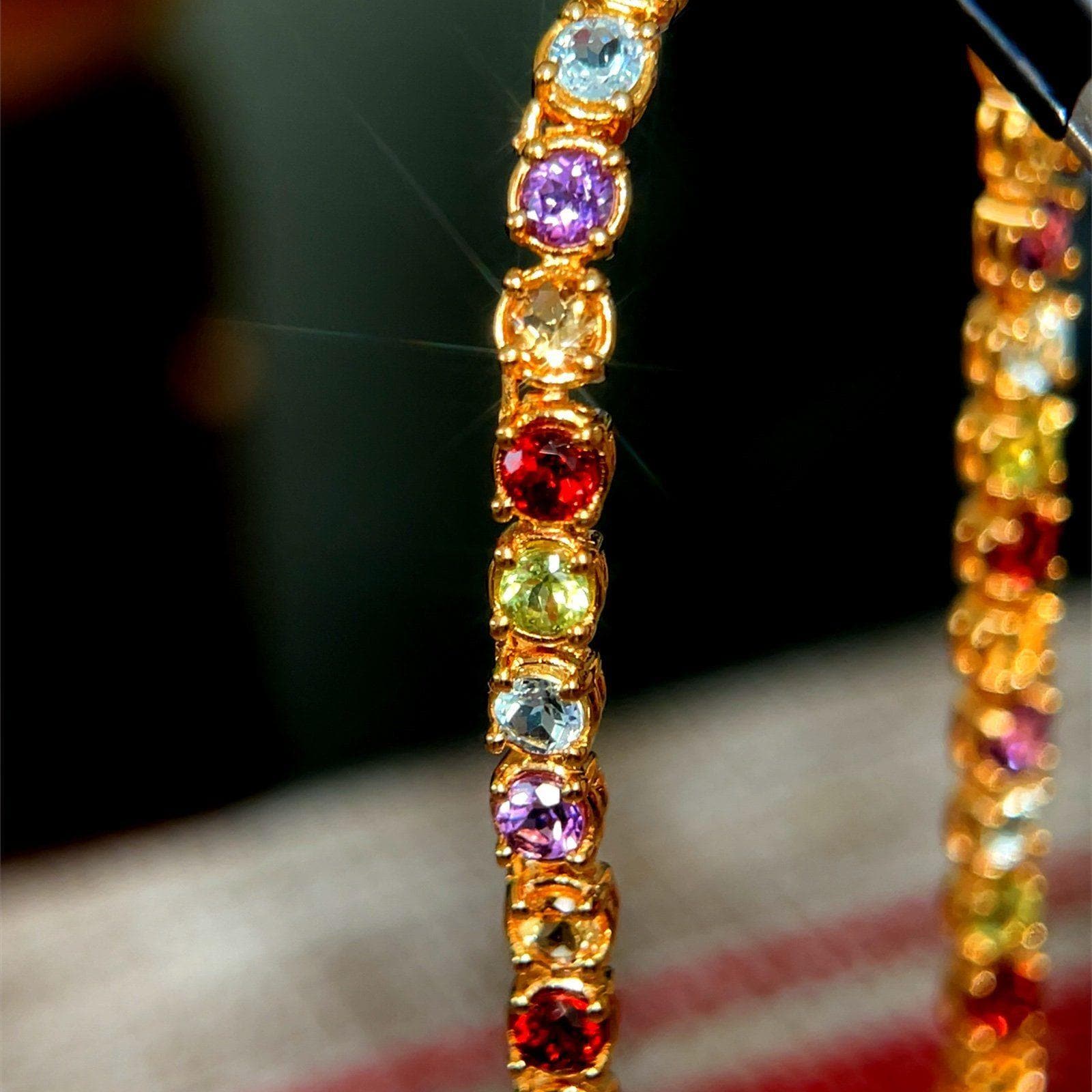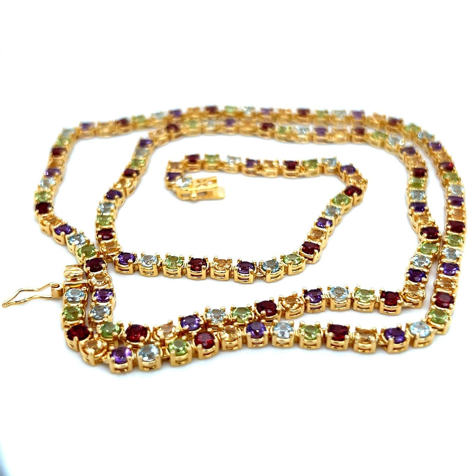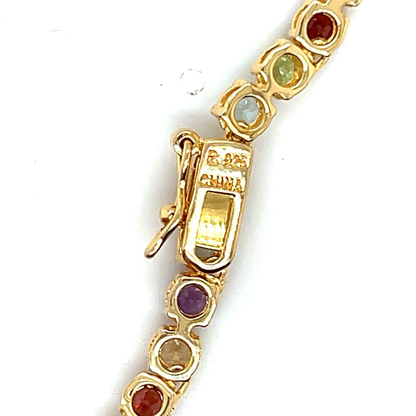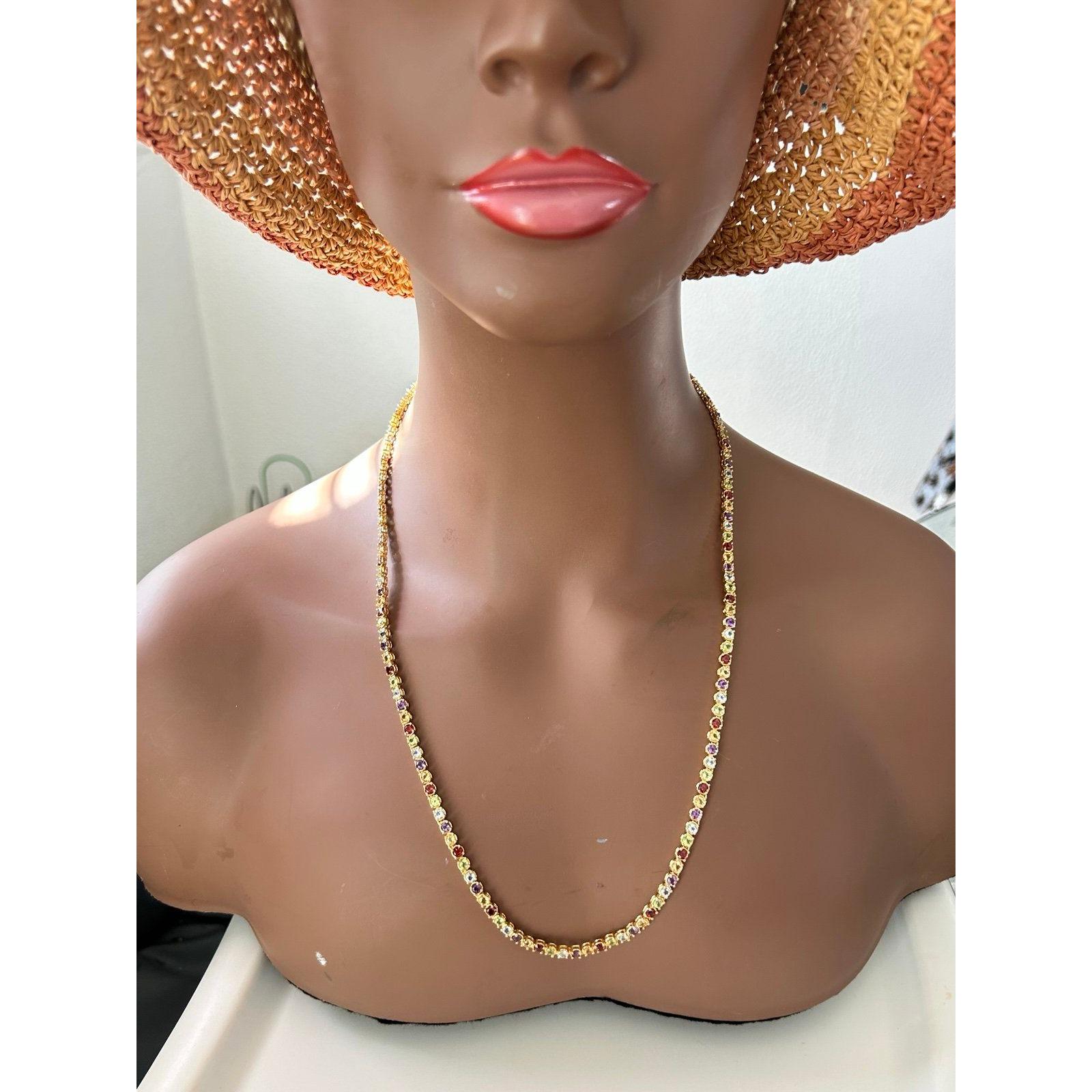 Gold Over Silver 925 Multicolored Stones Necklace.