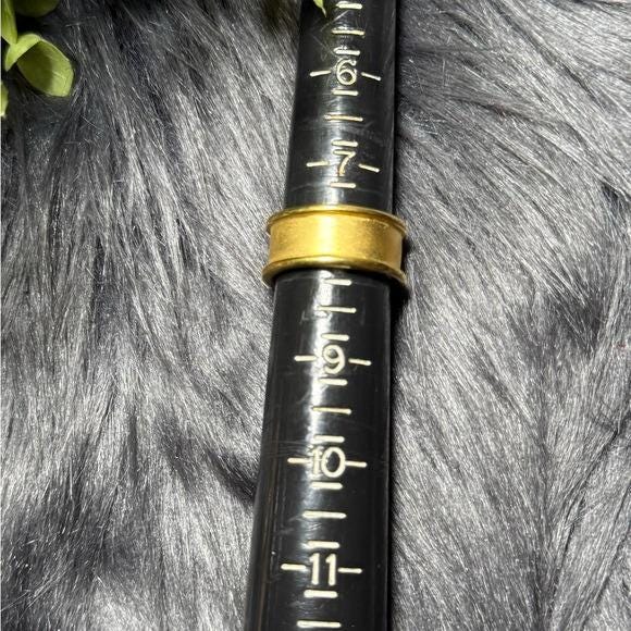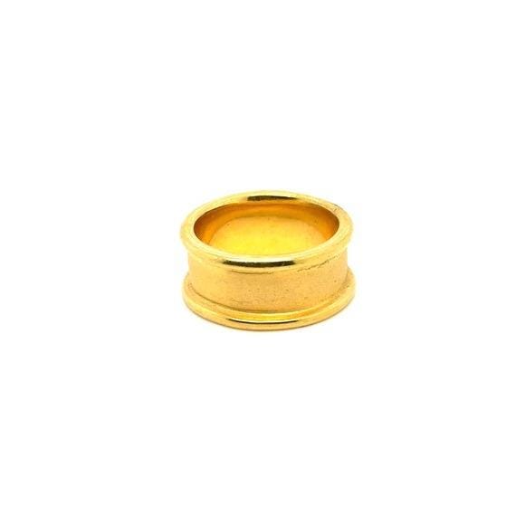Bold gold-tone wide band ring. Smooth polished finish with a subtle raised edge. Classic, versatile design. Perfect as a statement piece.