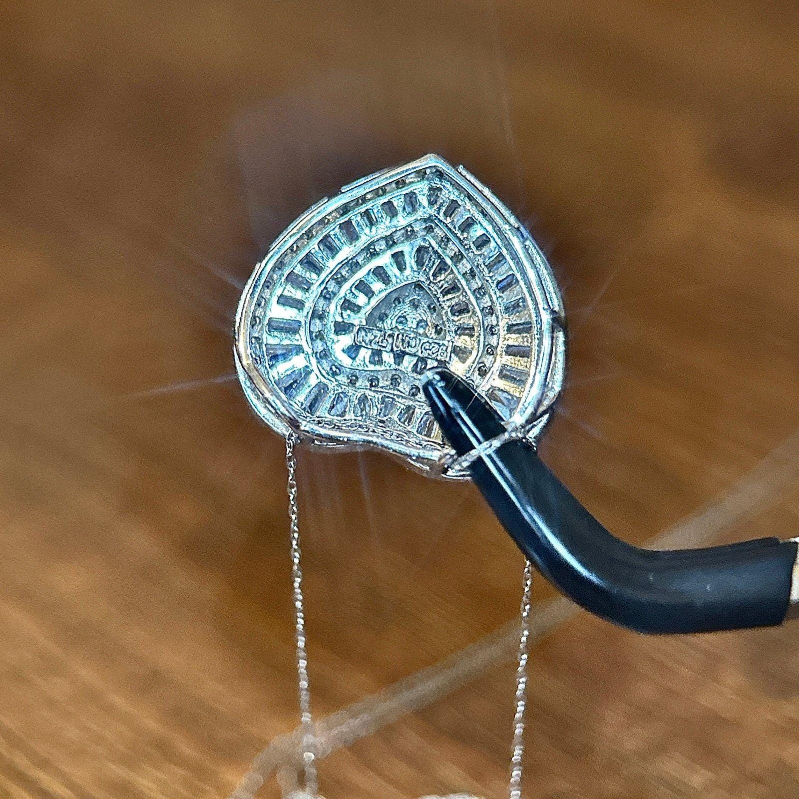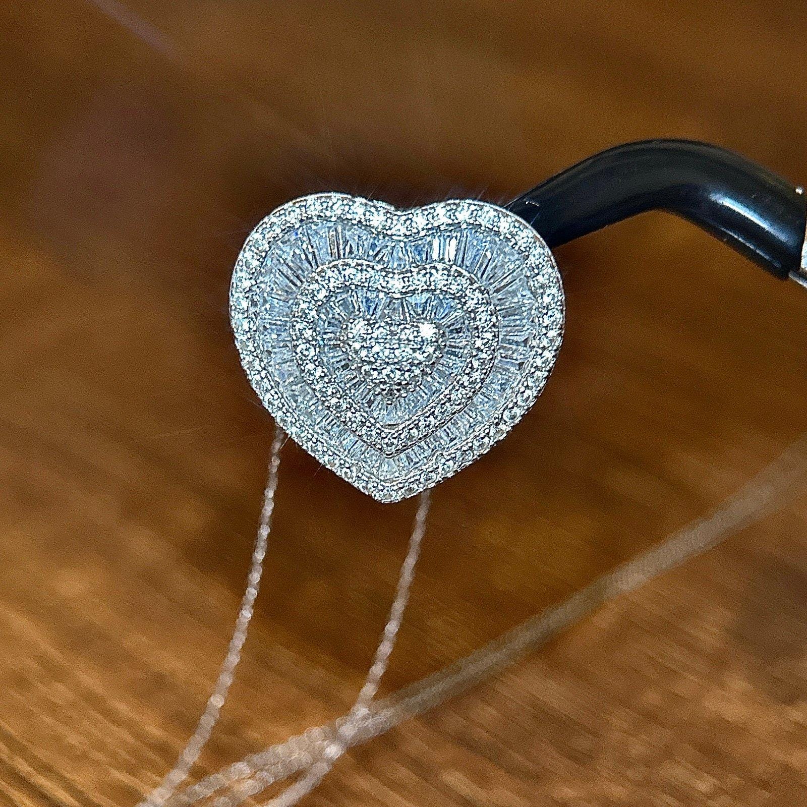 The heart Cz pendant is 925 Silver, the delicate chain is 10K White Gold.