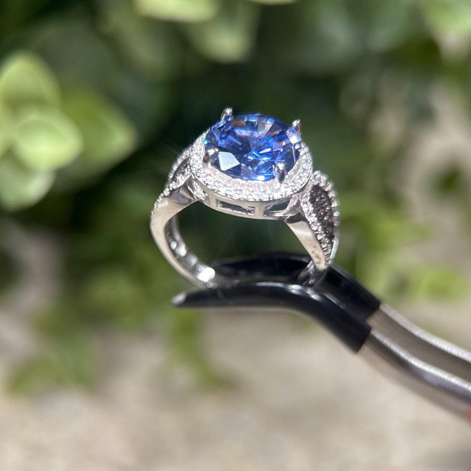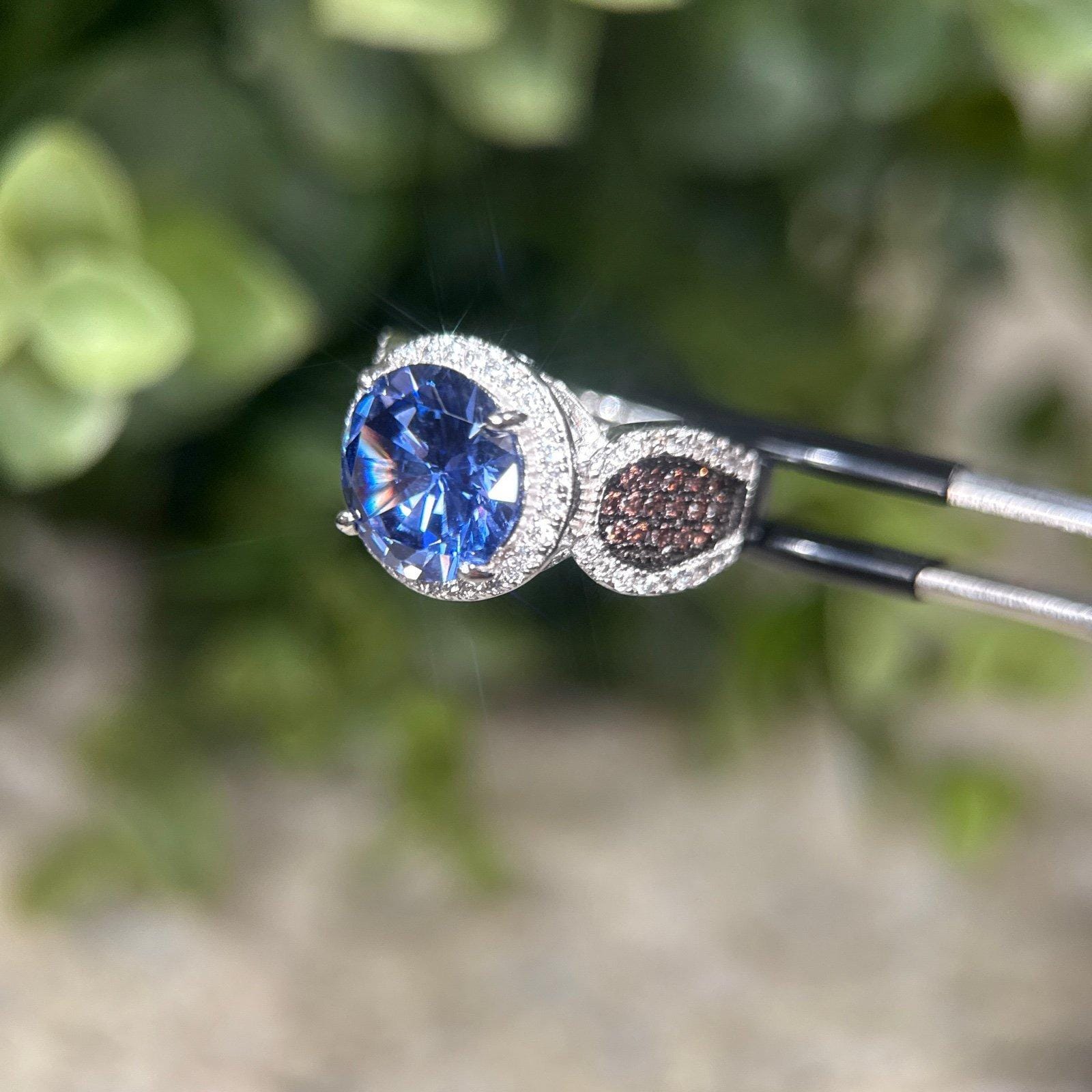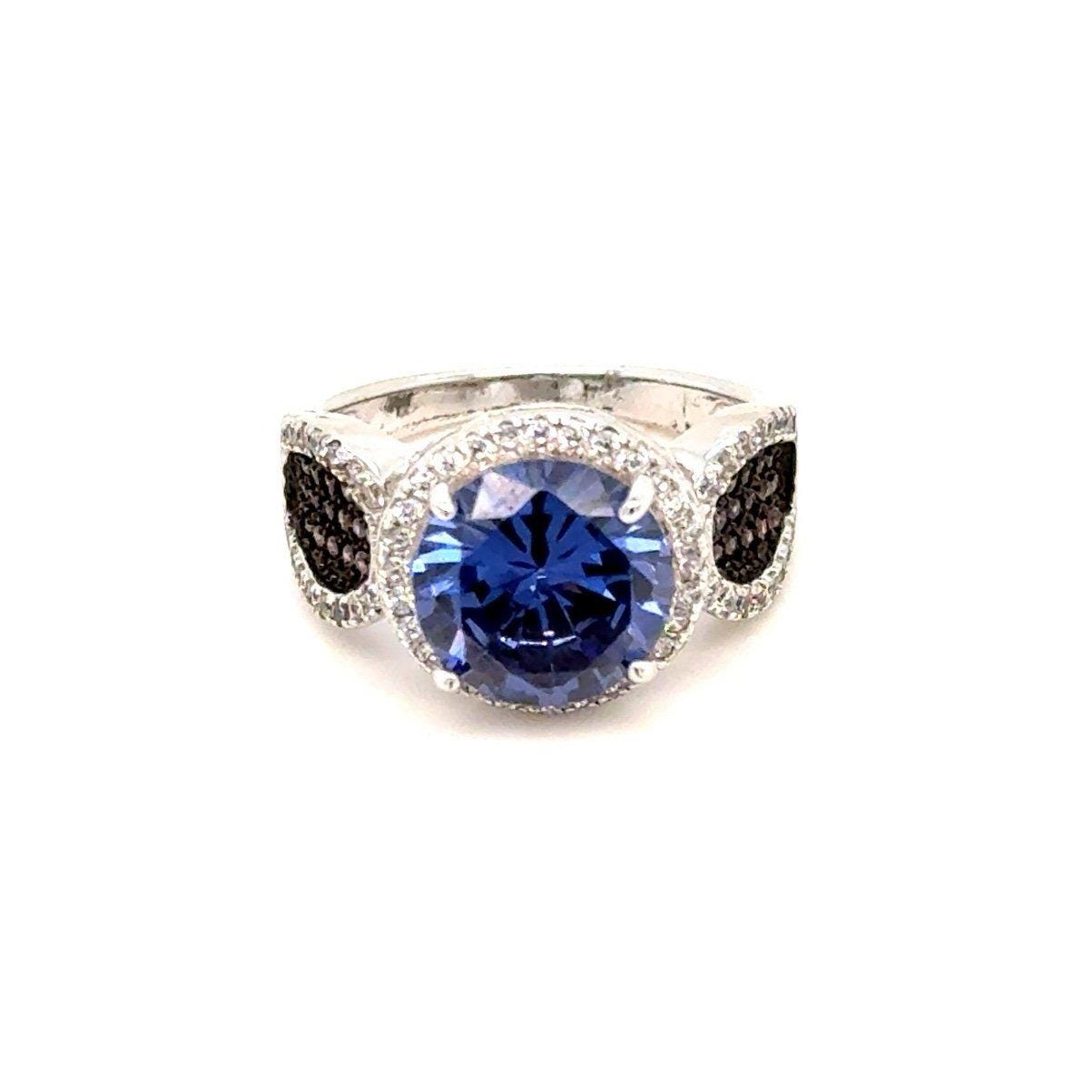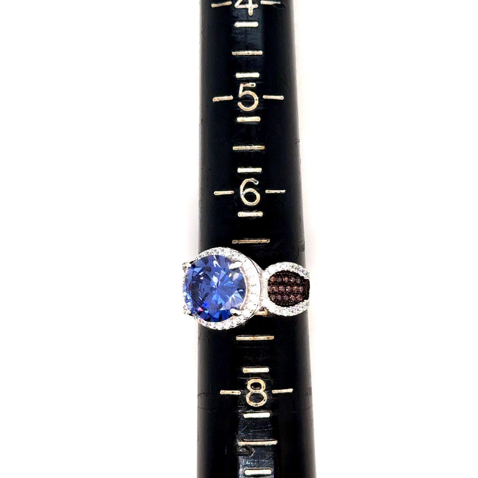 Sterling Silver 925 Blue/Pave Champagne Stones Ring. Ring is gorgeous.
