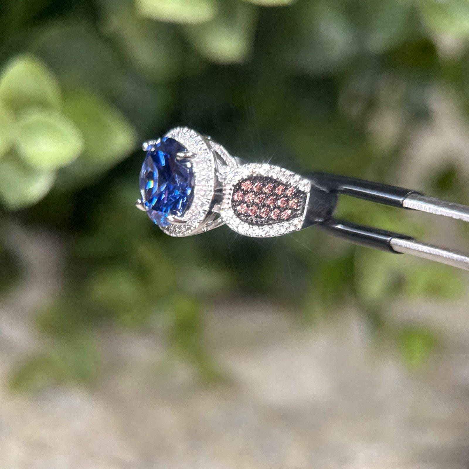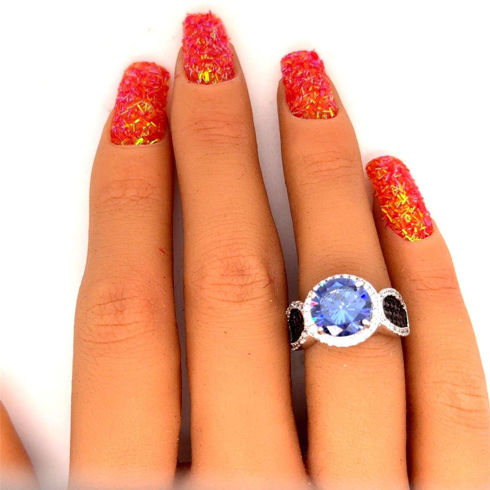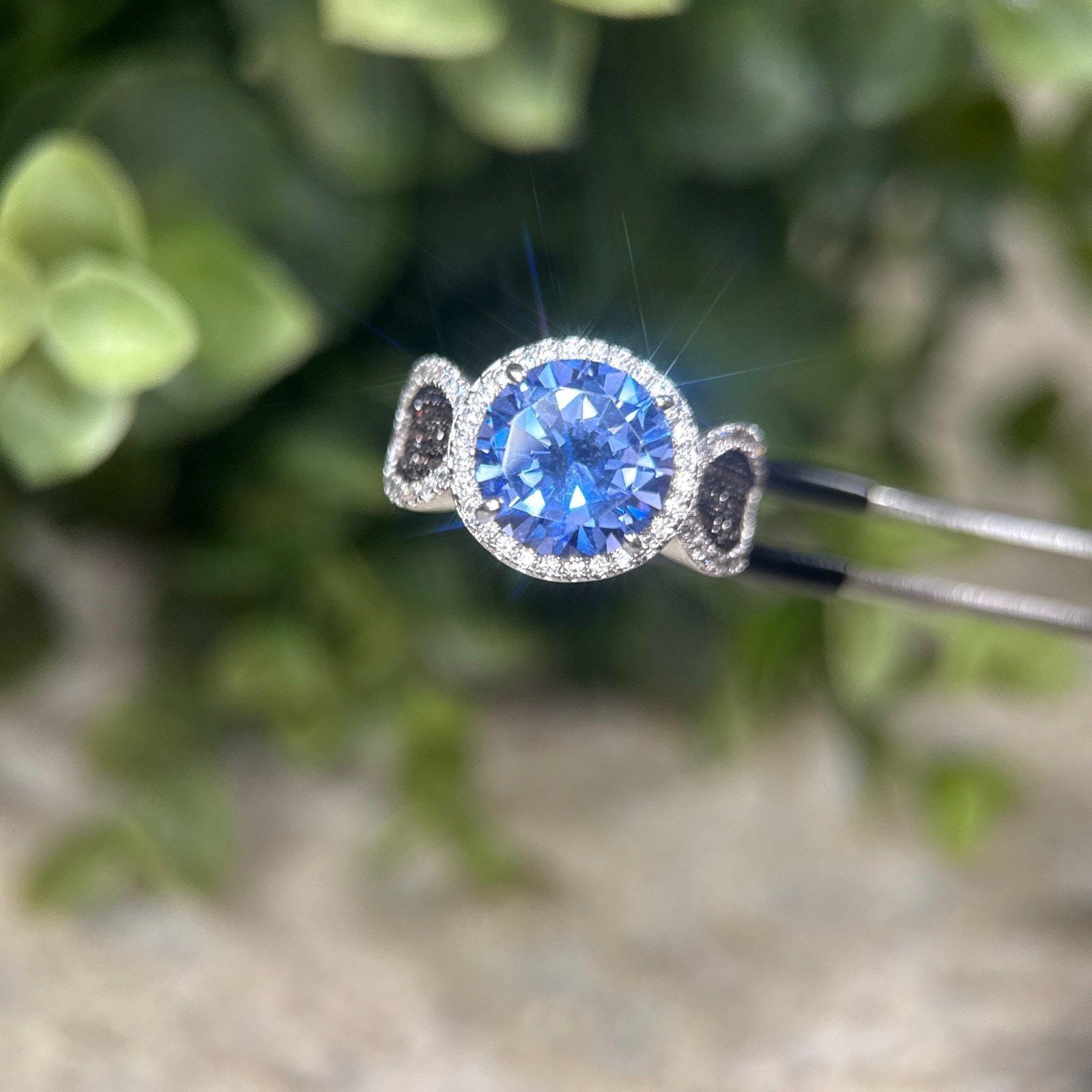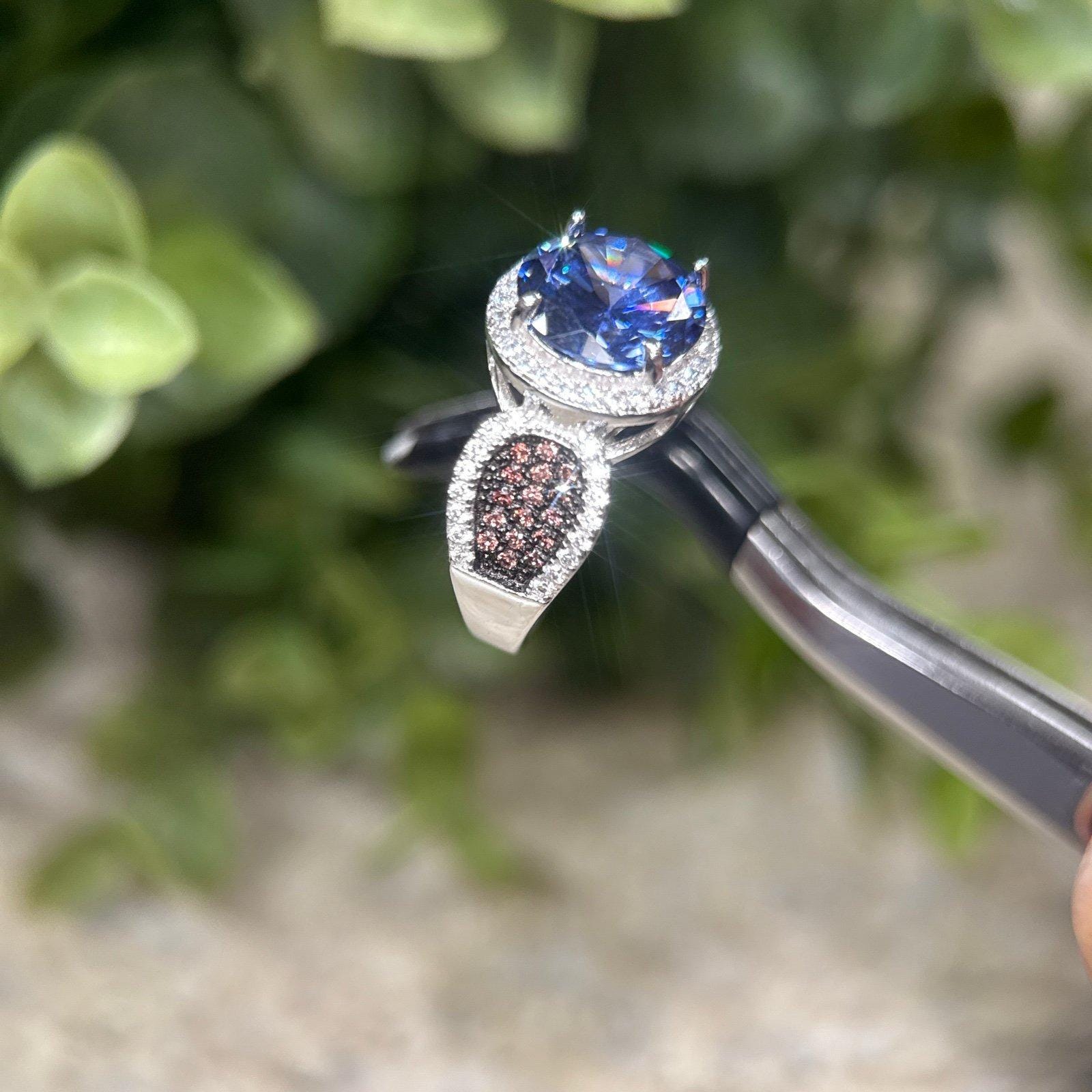 Sterling Silver 925 Blue/Pave Champagne Stones Ring. Ring is gorgeous.