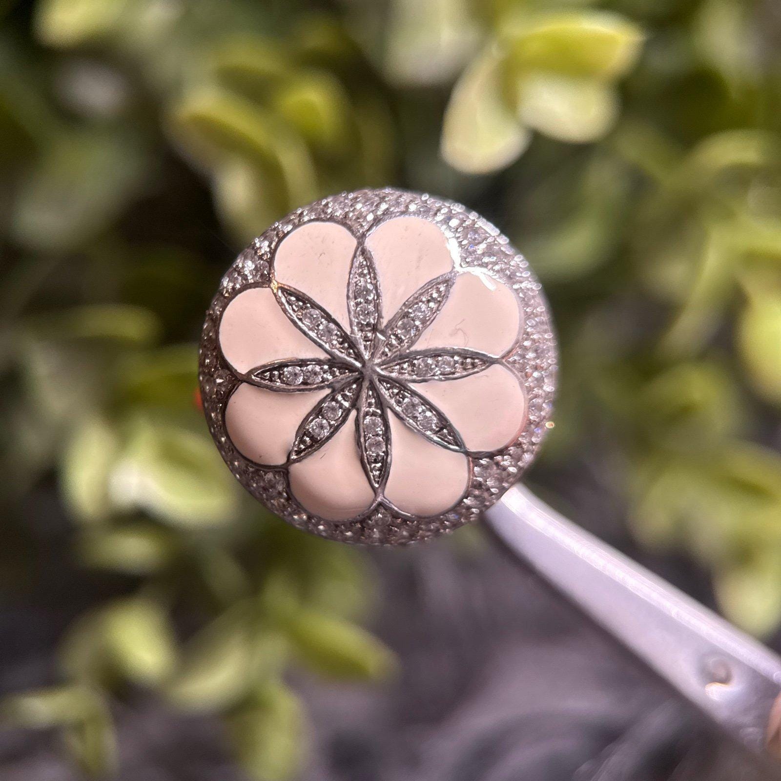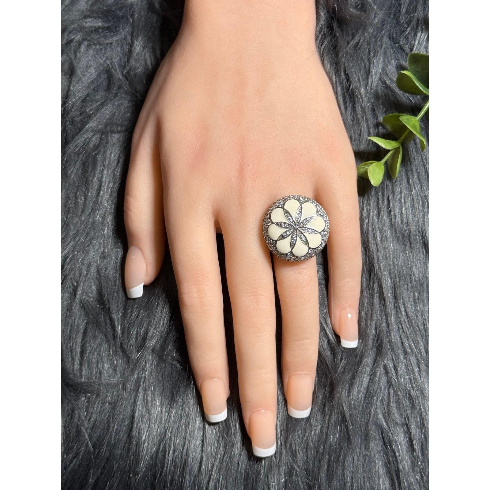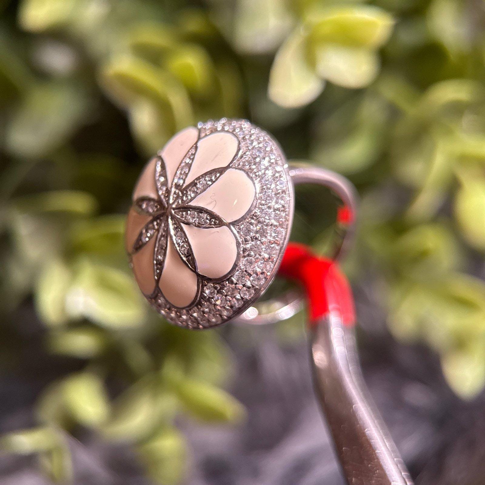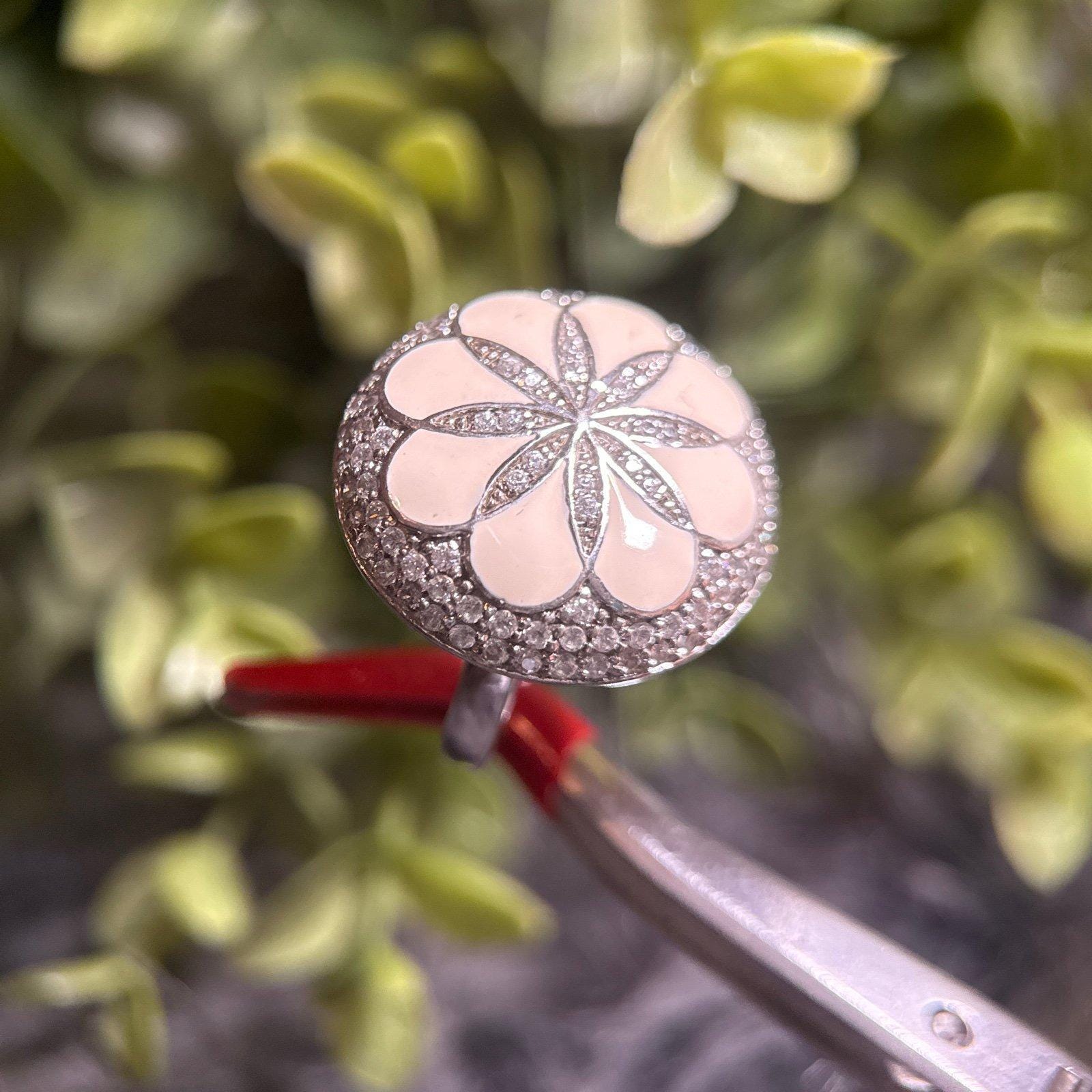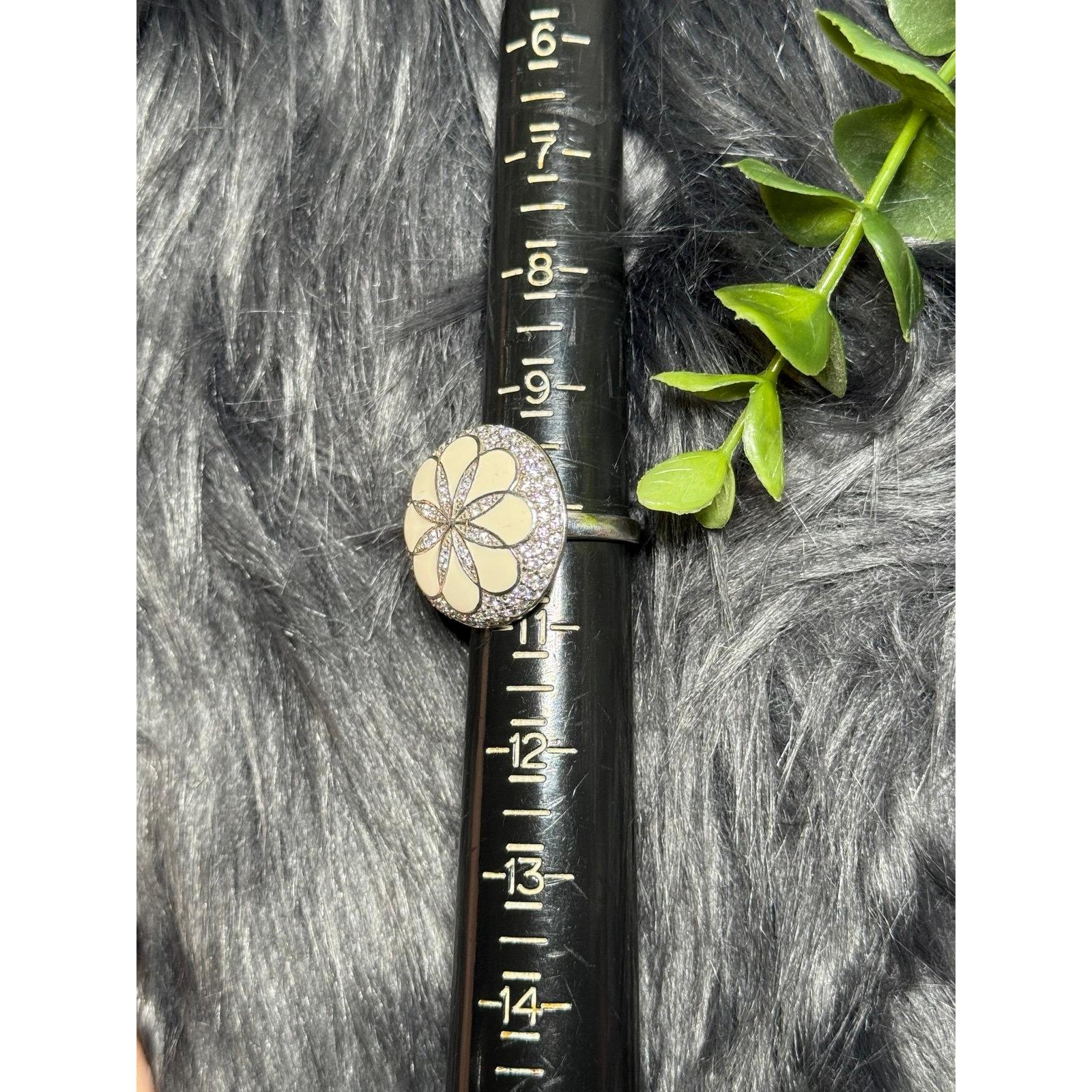 Sterling. Silver 925 White Enamel Flower Cz Ring.