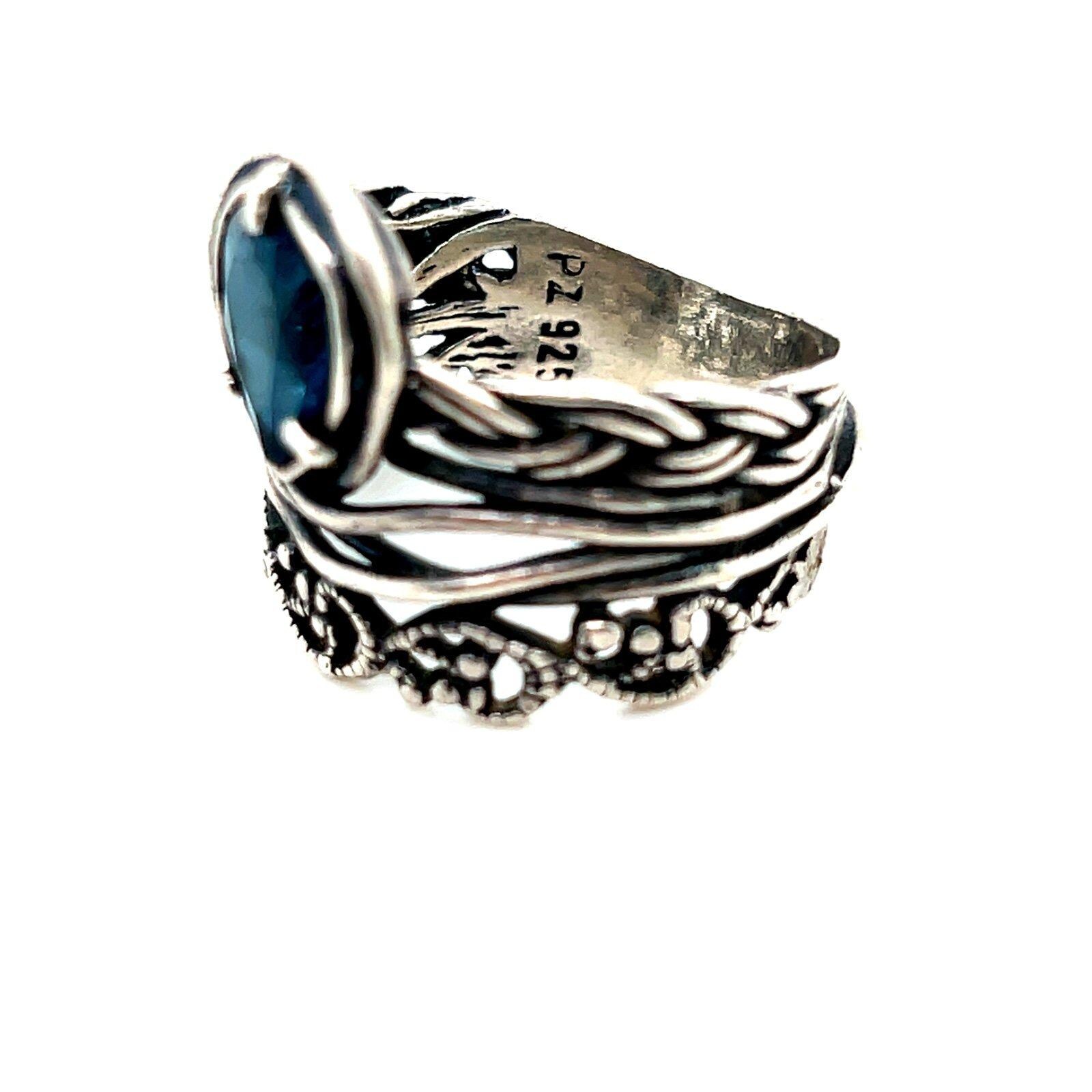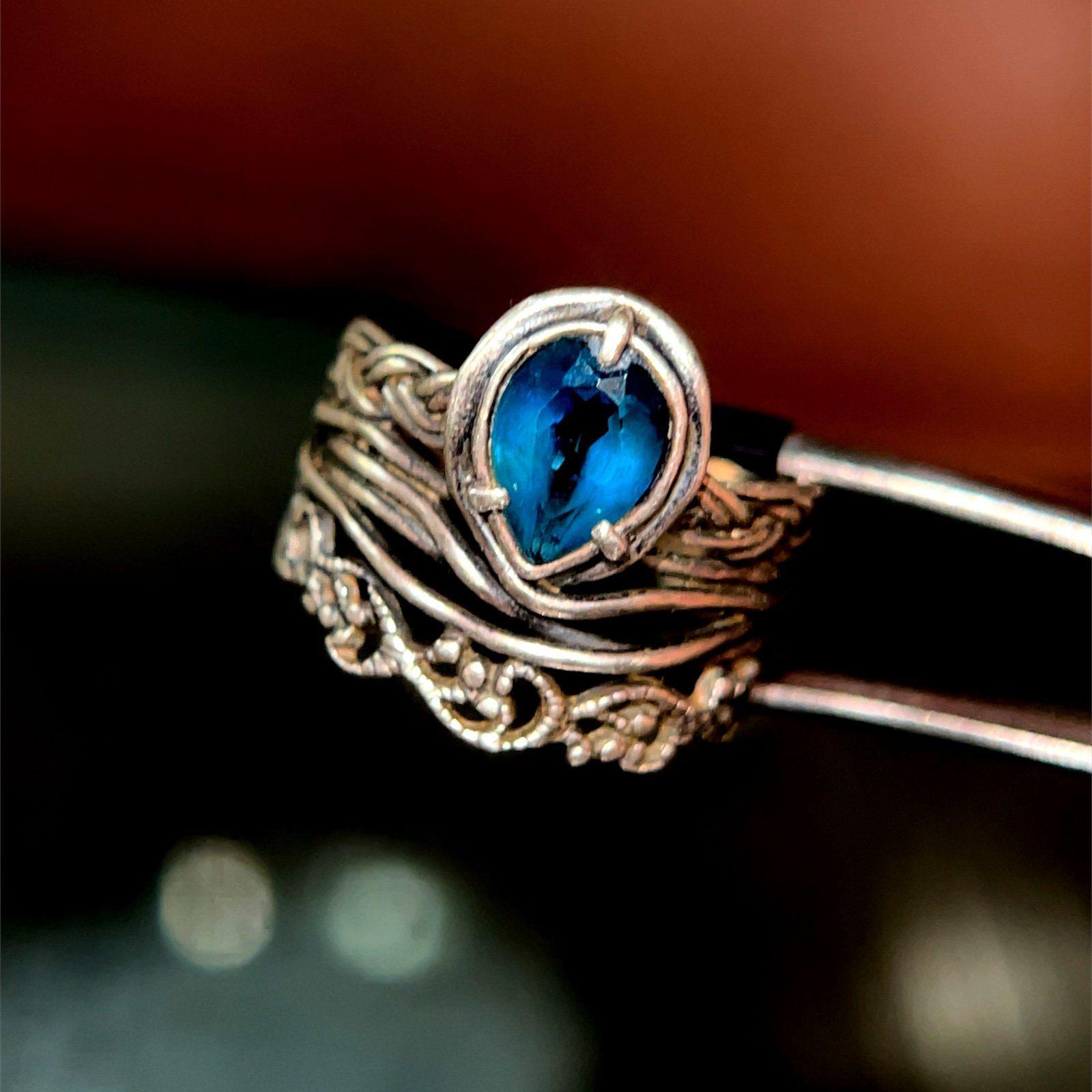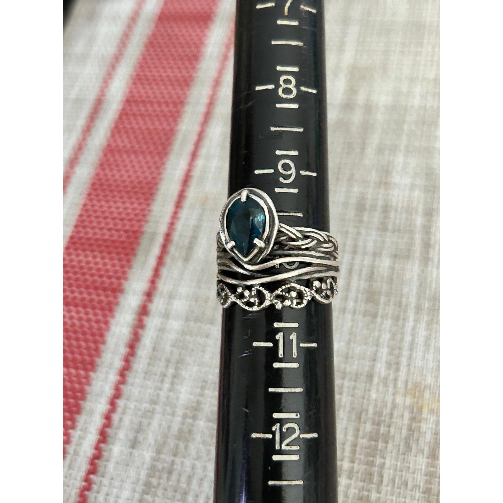 Sterling Silver 925 Blue Teardrop Stone Ring.