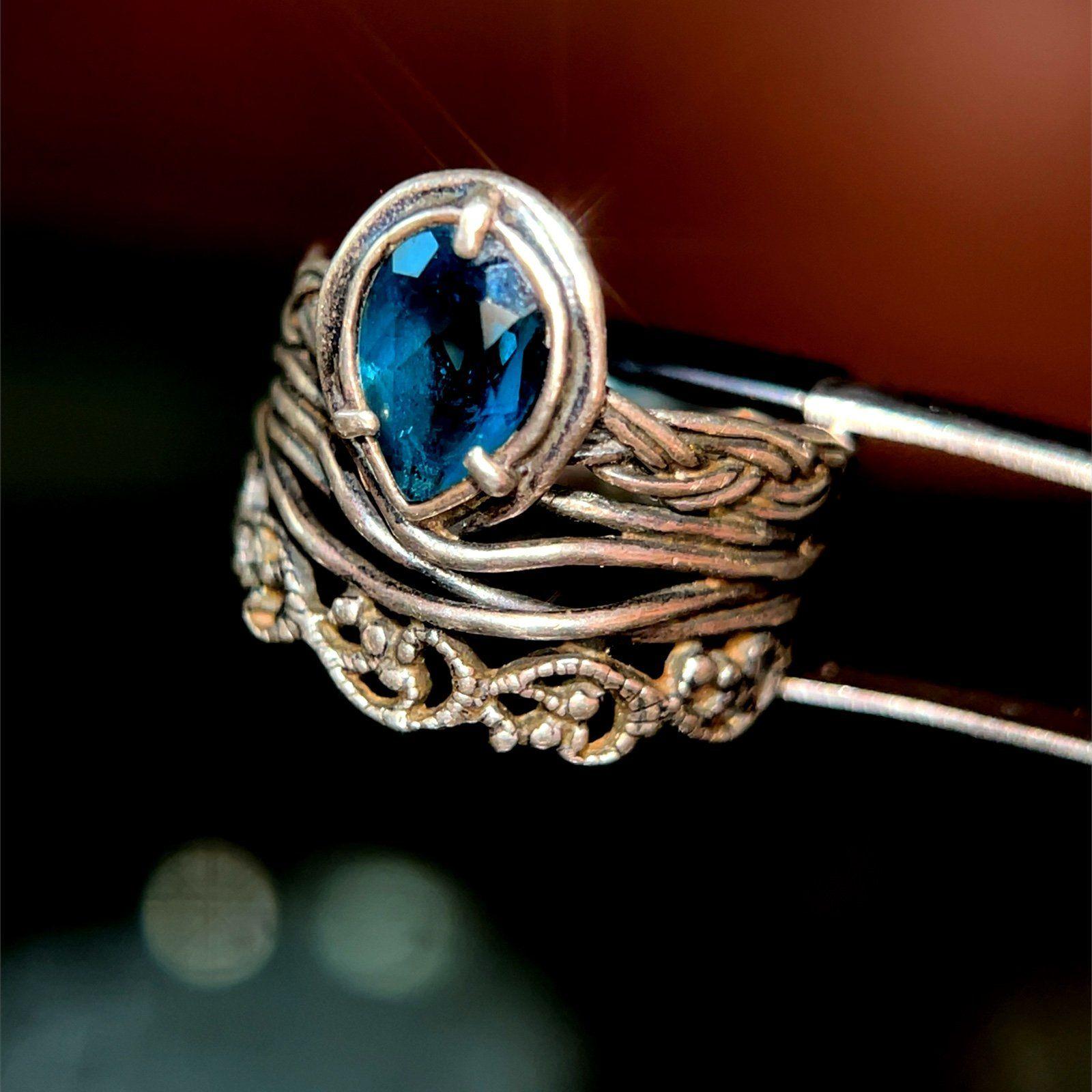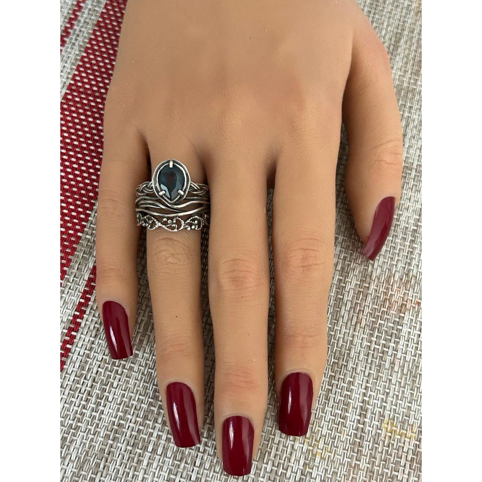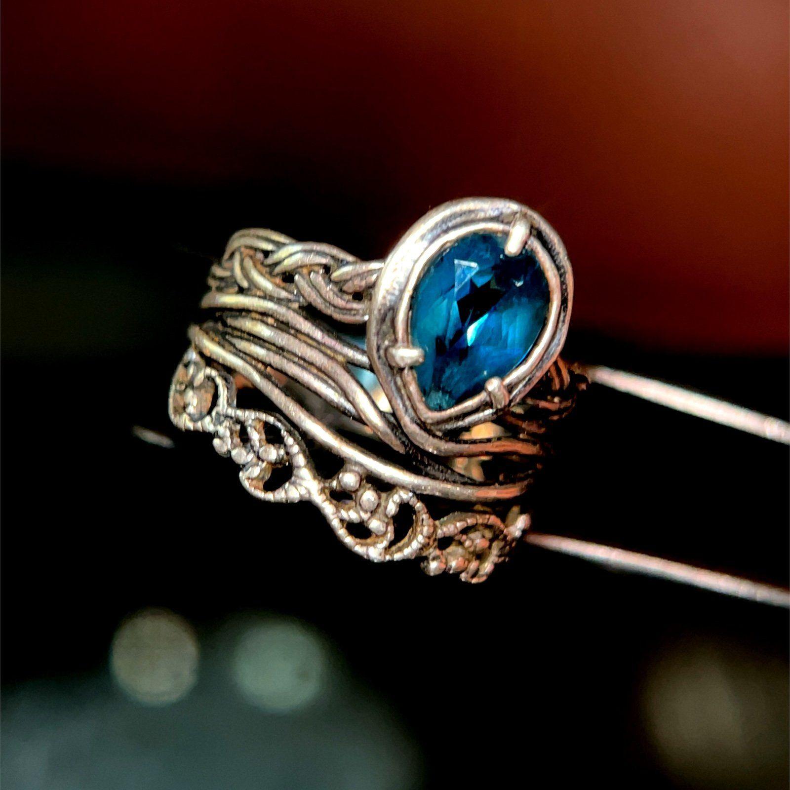 Sterling Silver 925 Blue Teardrop Stone Ring.