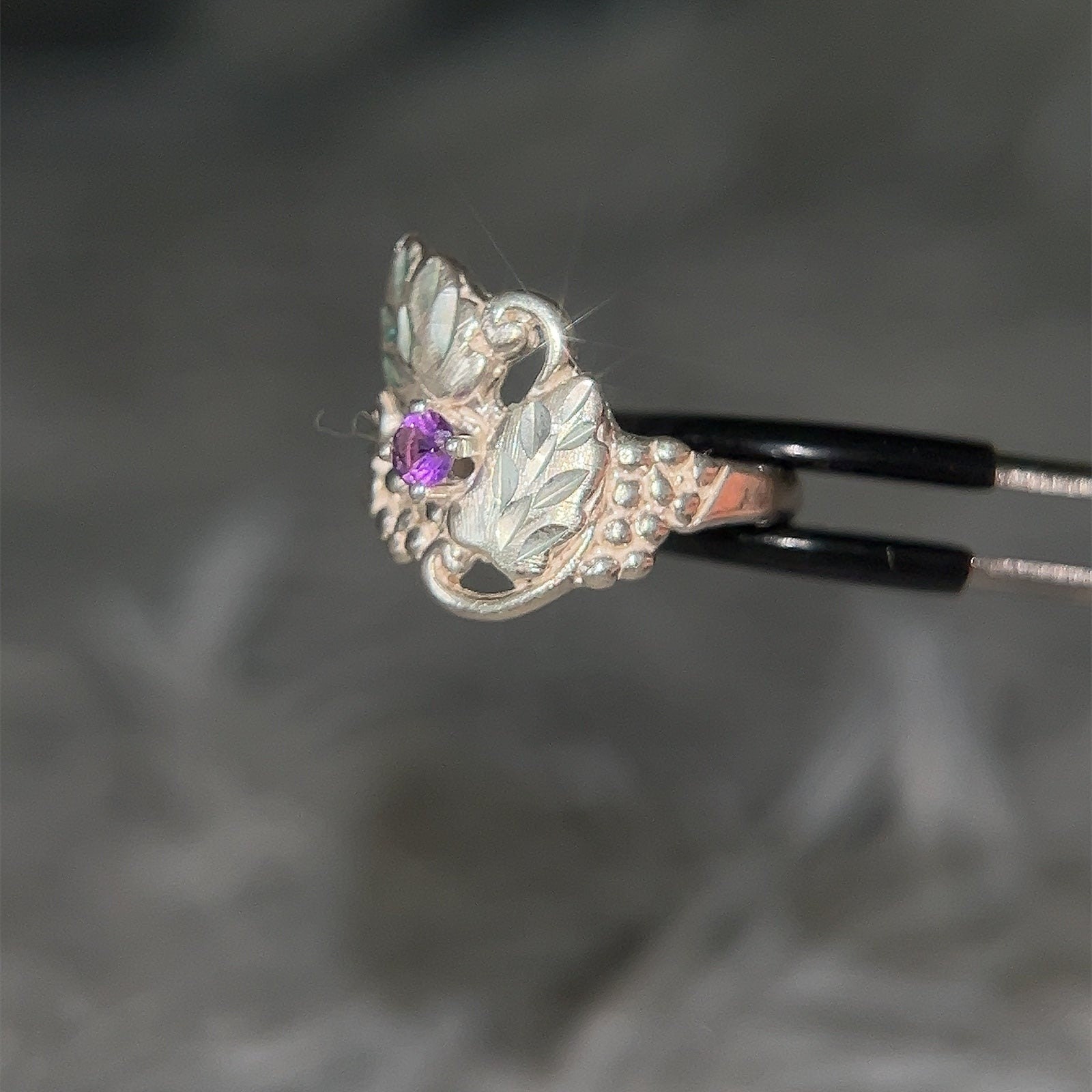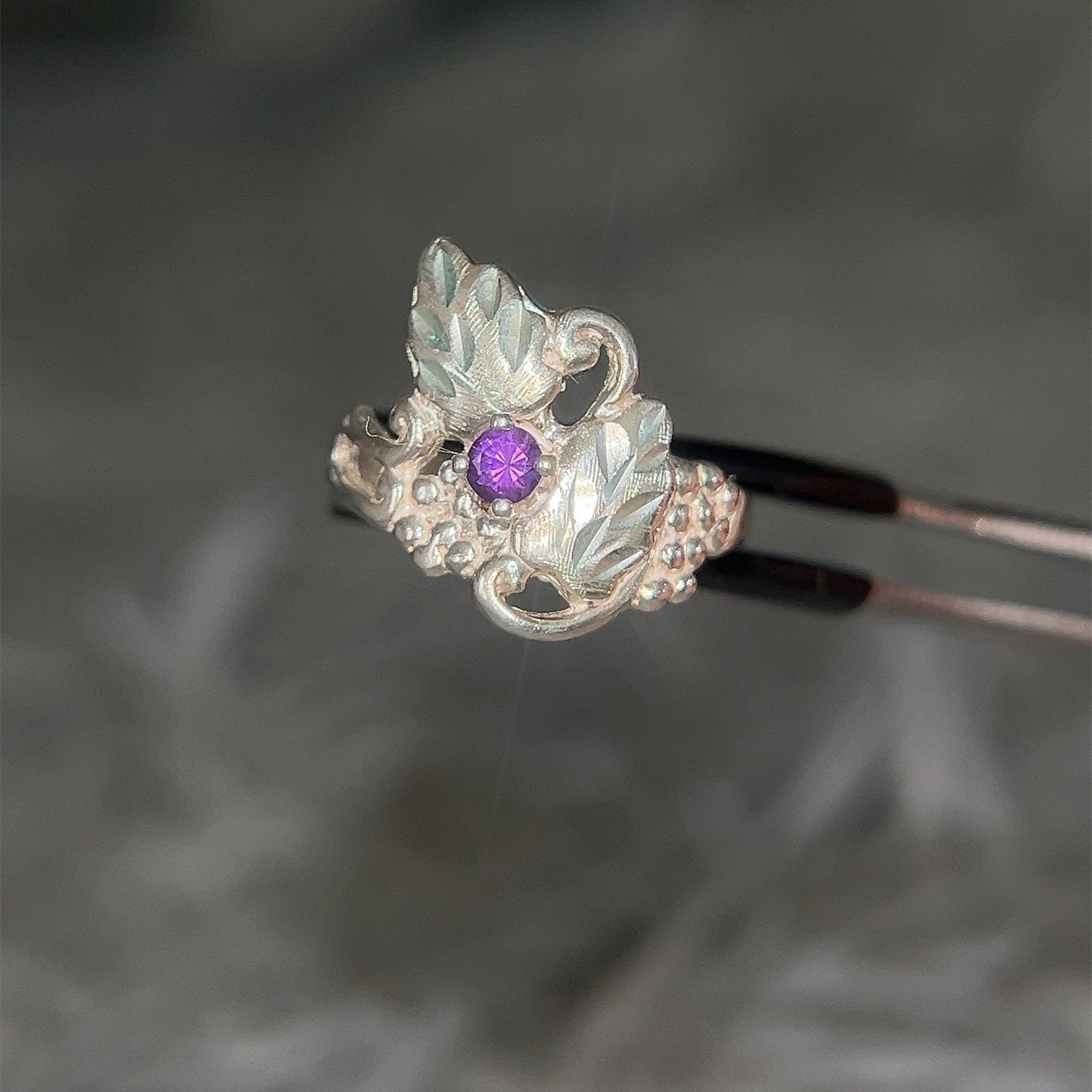 Sterling Silver Grape Shaped Amethyst Ring.