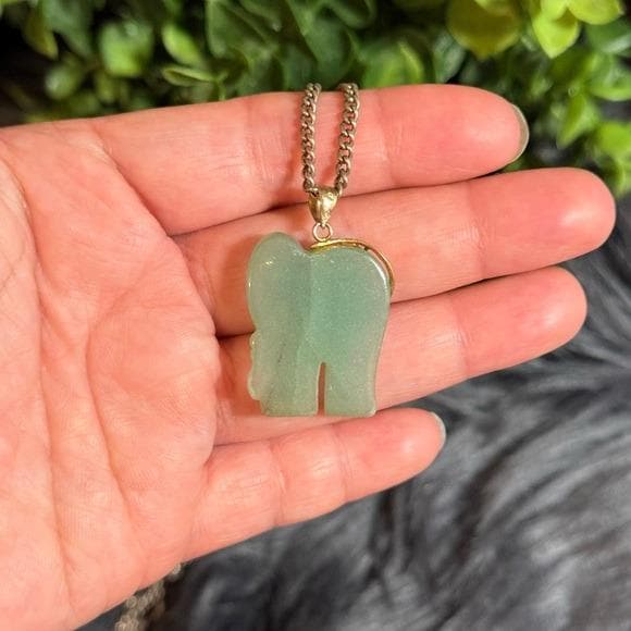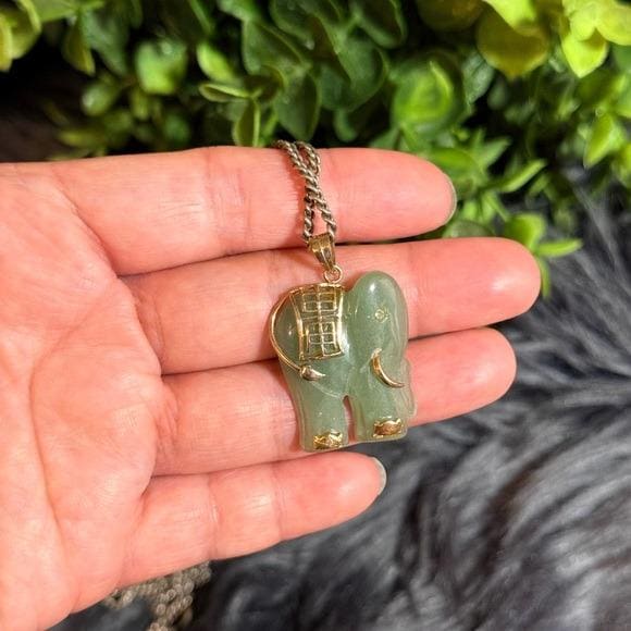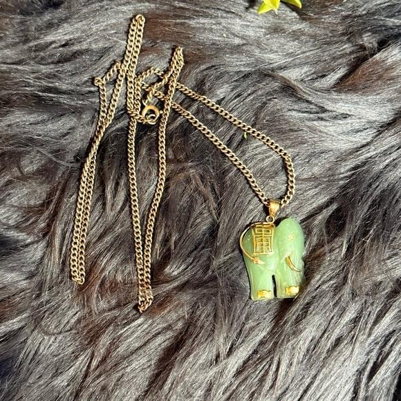 Charming green elephant pendant with gold accents. Crafted for everyday wear and easy styling. Features a polished green stone finish with elegant gold detailing. Adds a playful yet refined touch to any outfit.