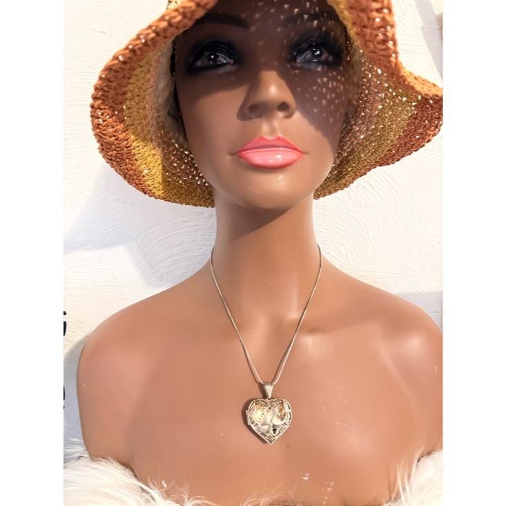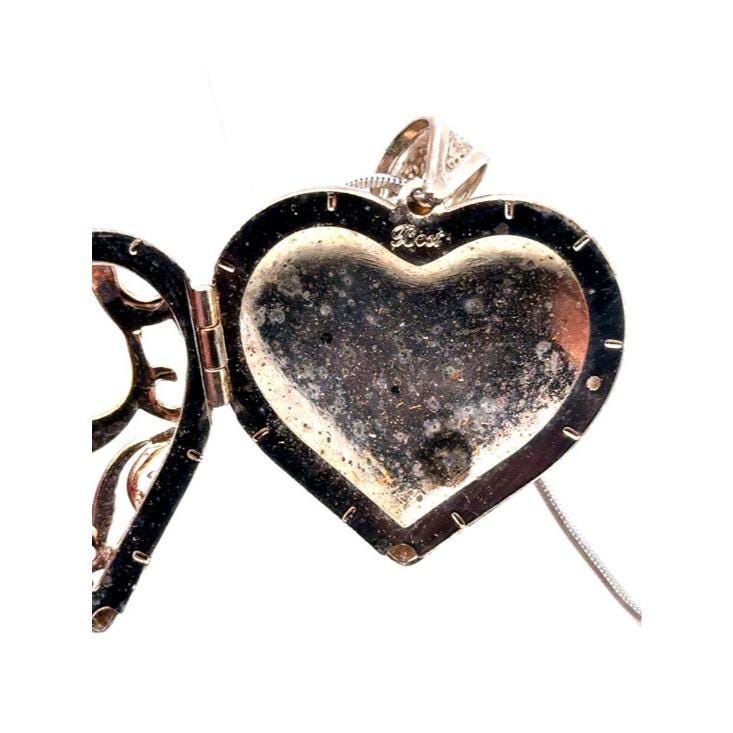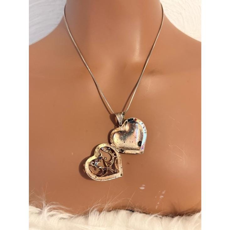 Elegant heart locket pendant with intricate scrollwork. Polished silver tone. Secure bail for standard chains. Perfect gift-ready piece that adds romantic charm to any outfit.