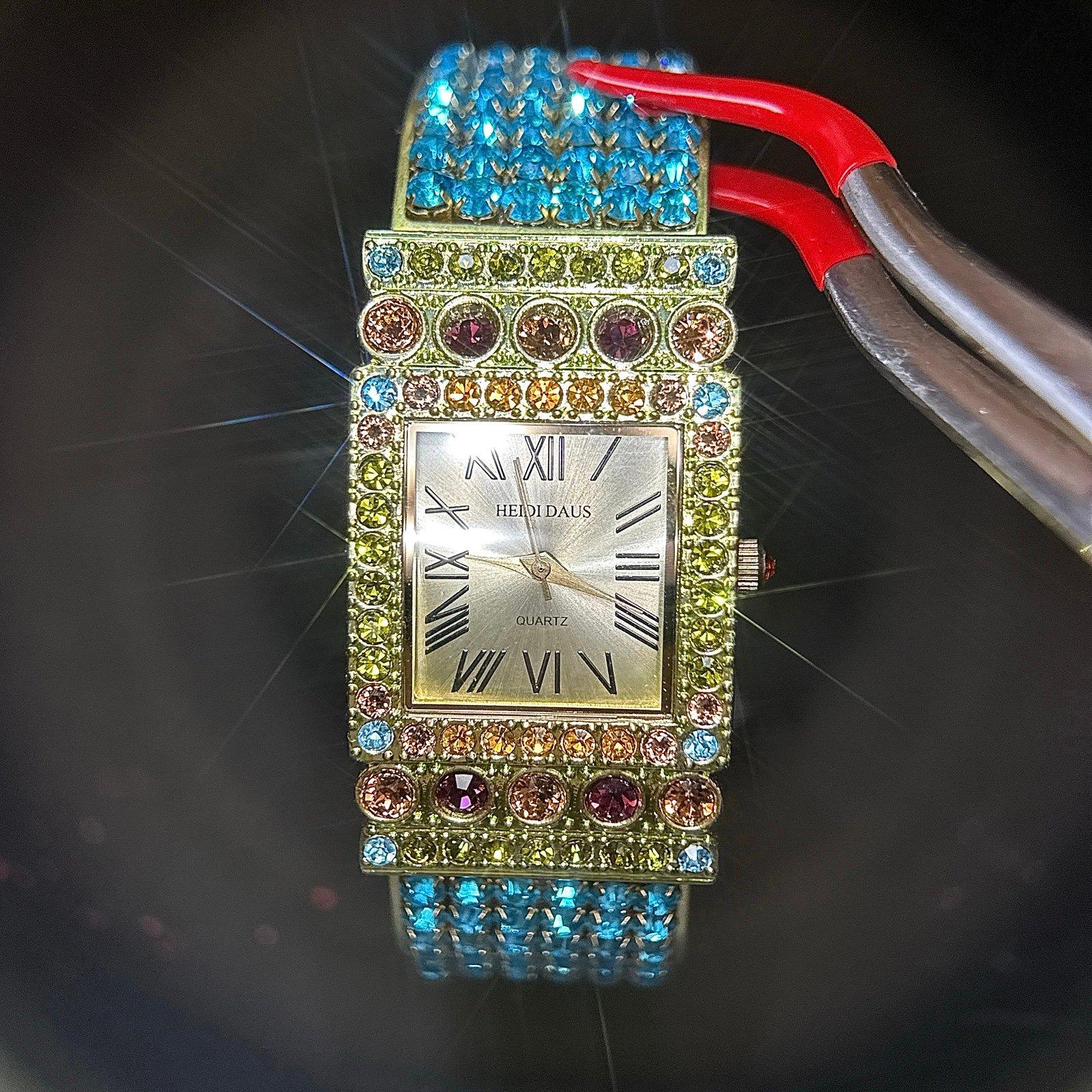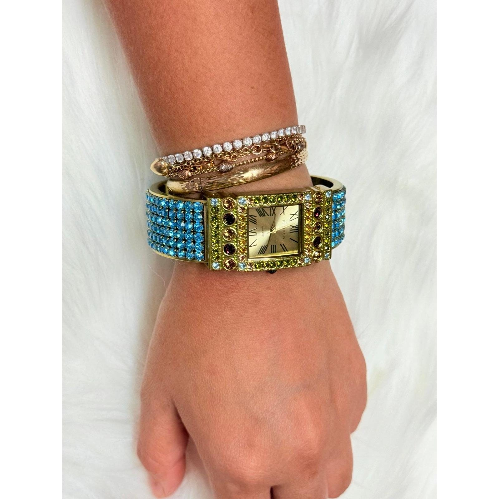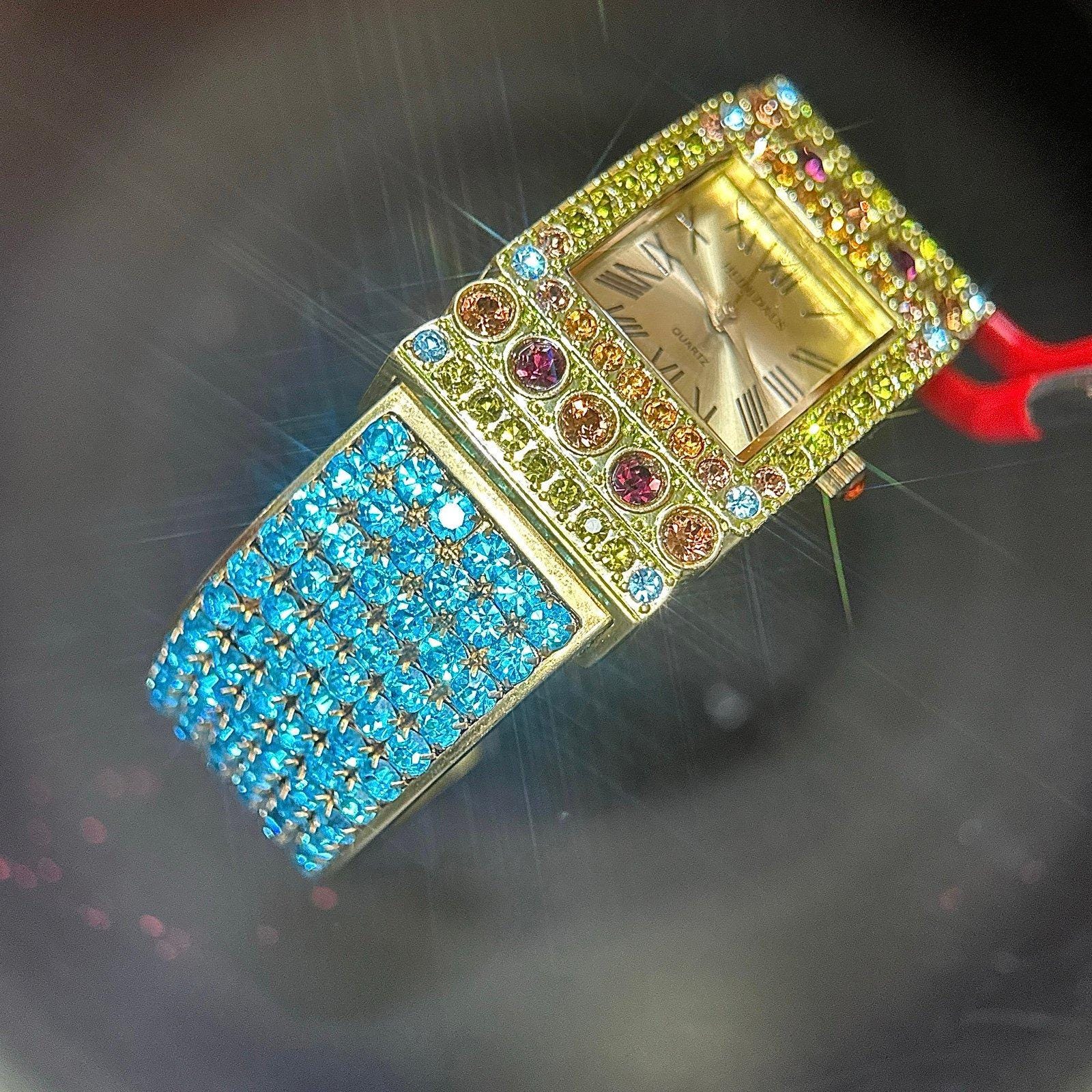 Heidi Daus Blue Stones Band Cuff WatchNo missing stonesExcellent condition Needs new battery