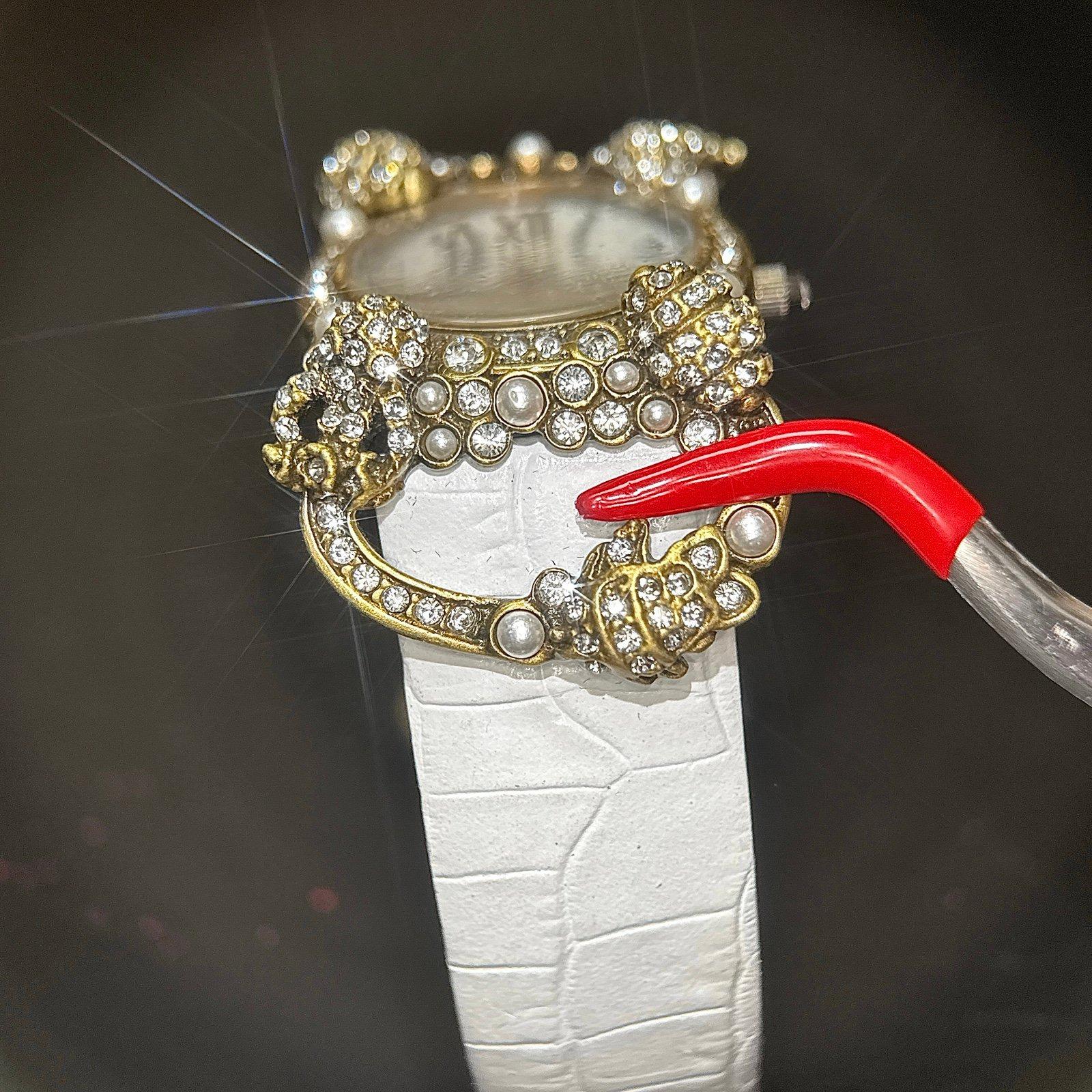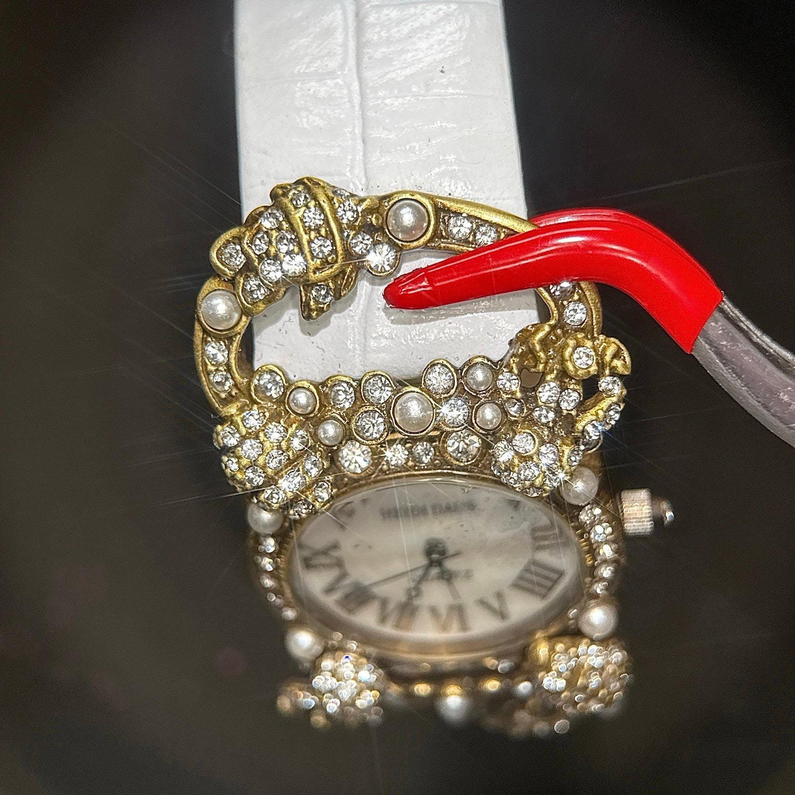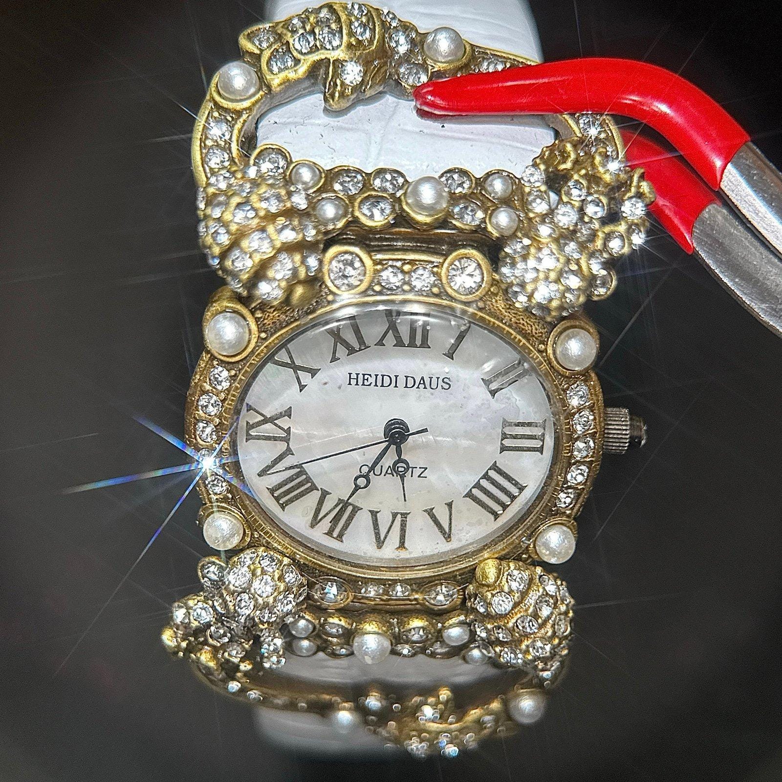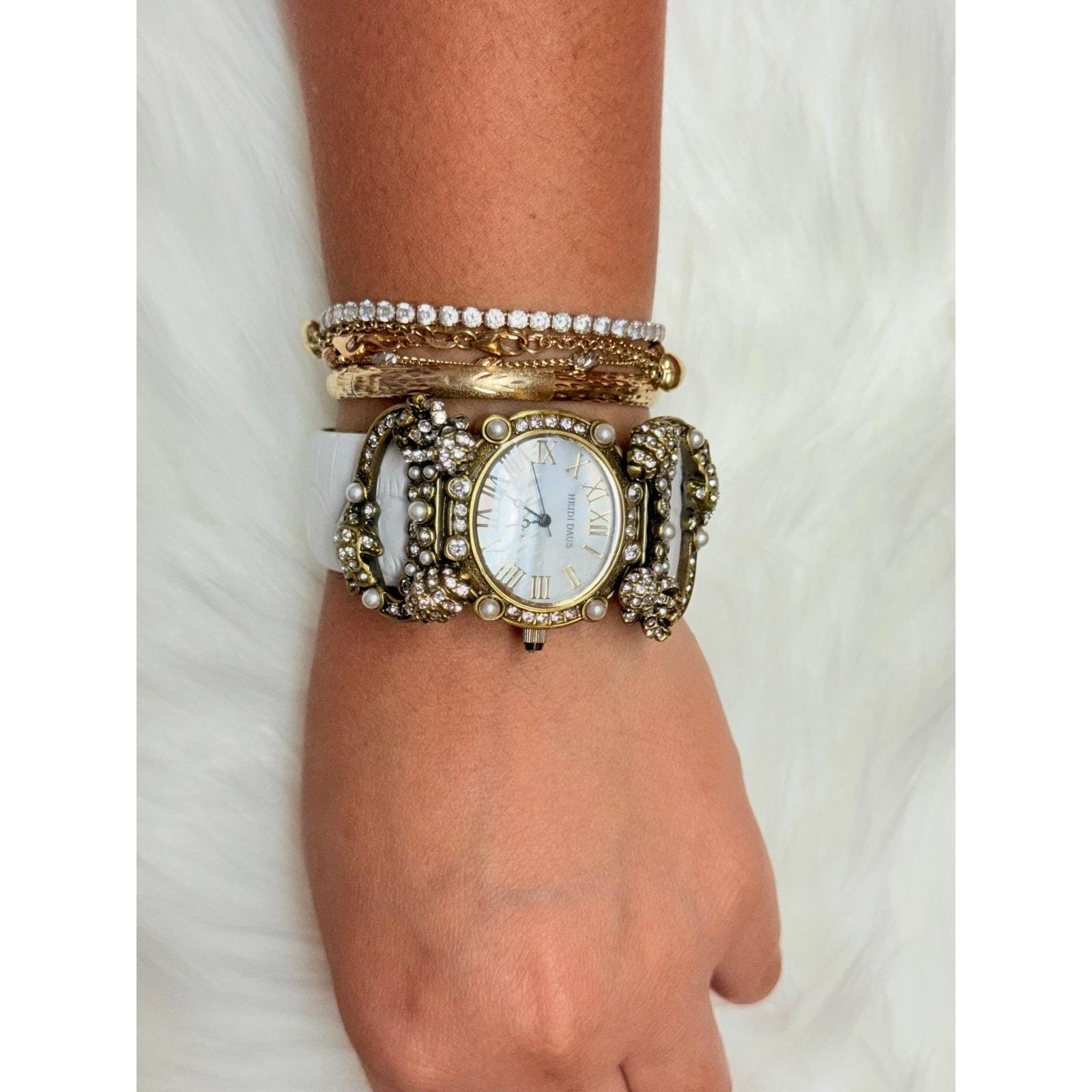 Heidi Daus White Leather Band with Pearls and Crystals Watch