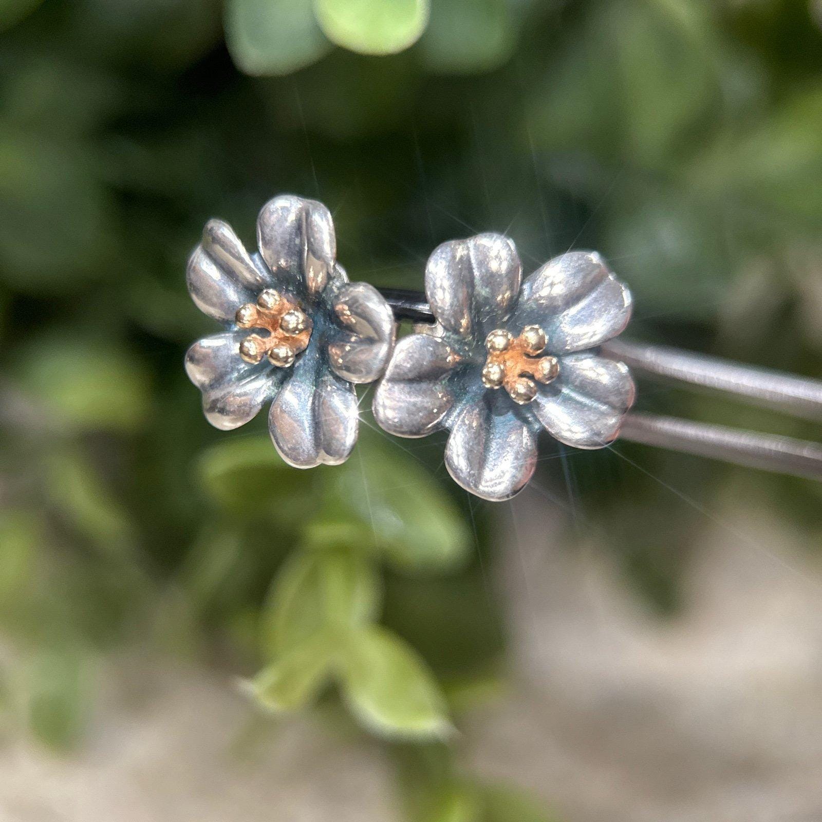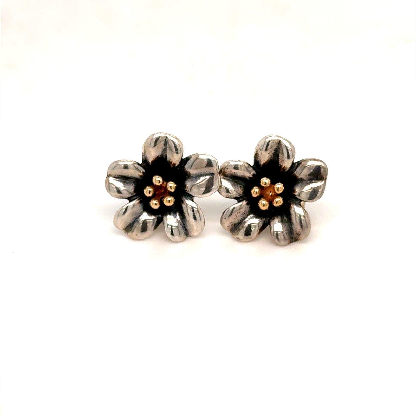 Authentic James Avery Sterling Silver 925 and 18K Gold Flower Stud Earrings.