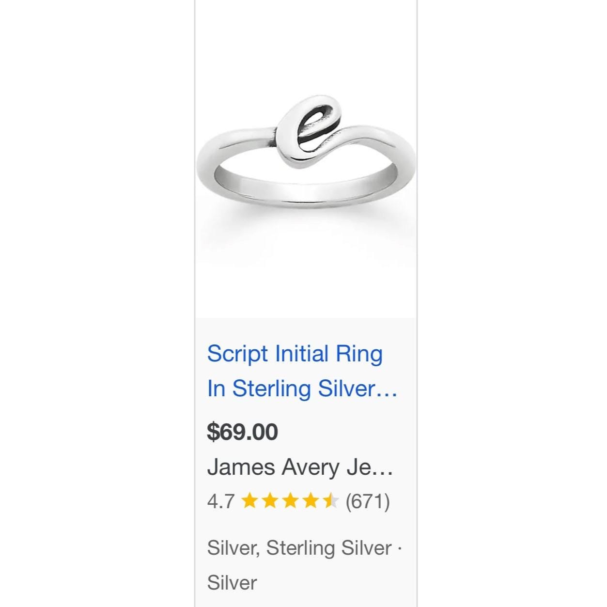 Authentic James Avery Script Letter e Ring in Sterling Silver 925.