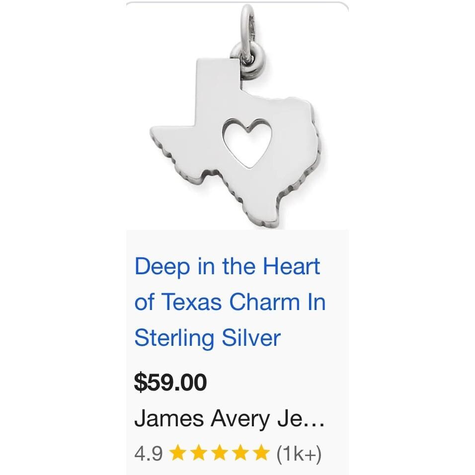 Authentic Sterling Silver James Avery Deep In The Heart of Texas Charm.