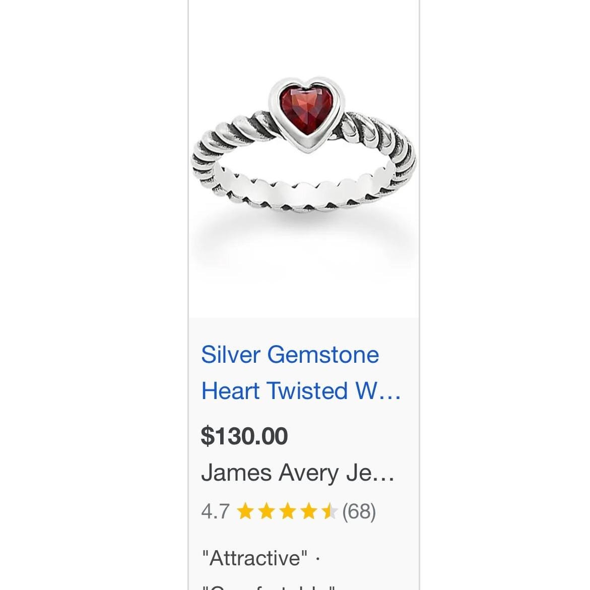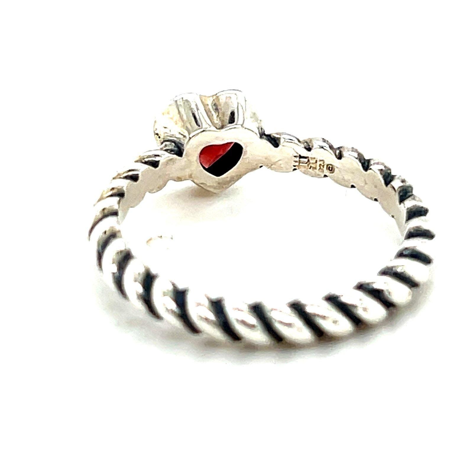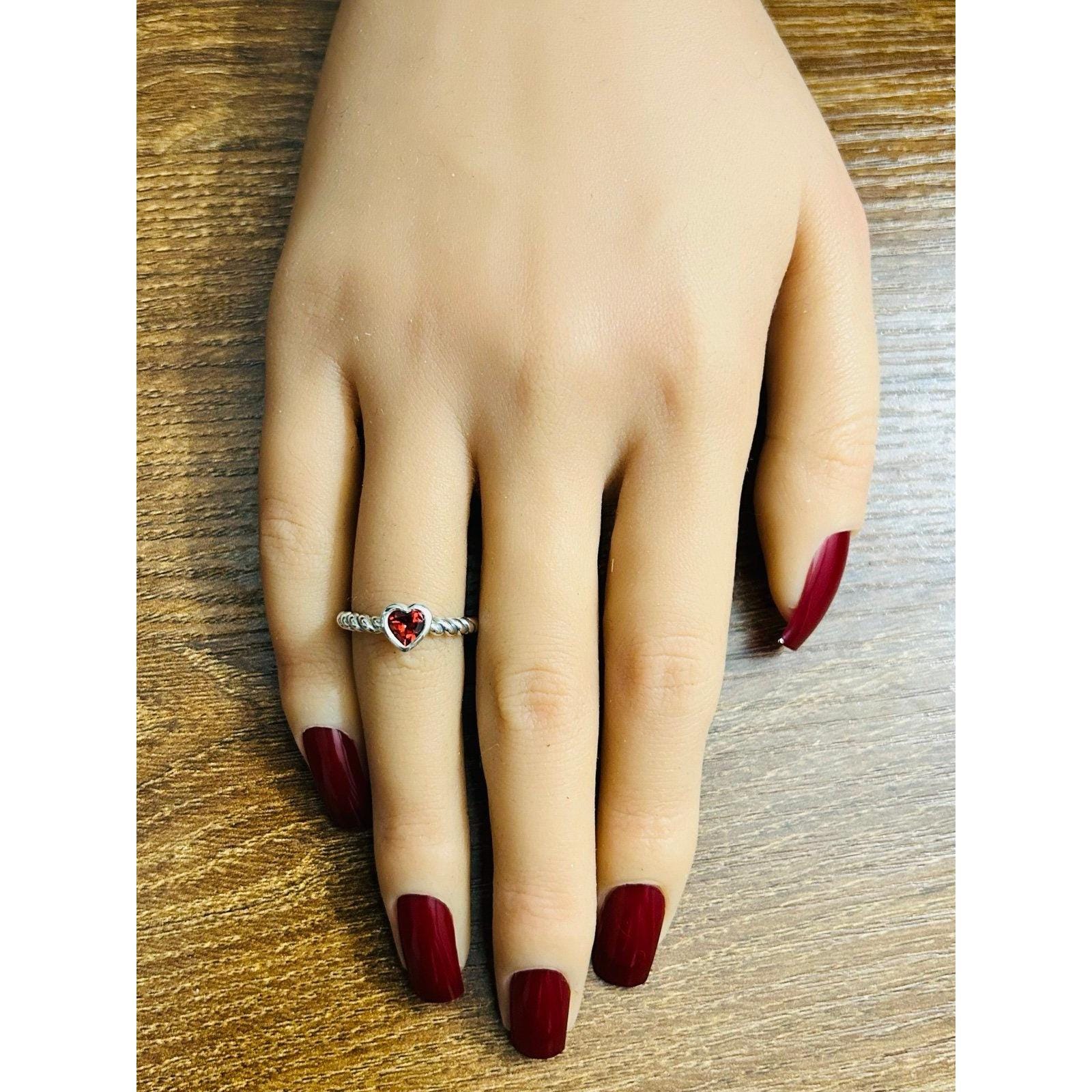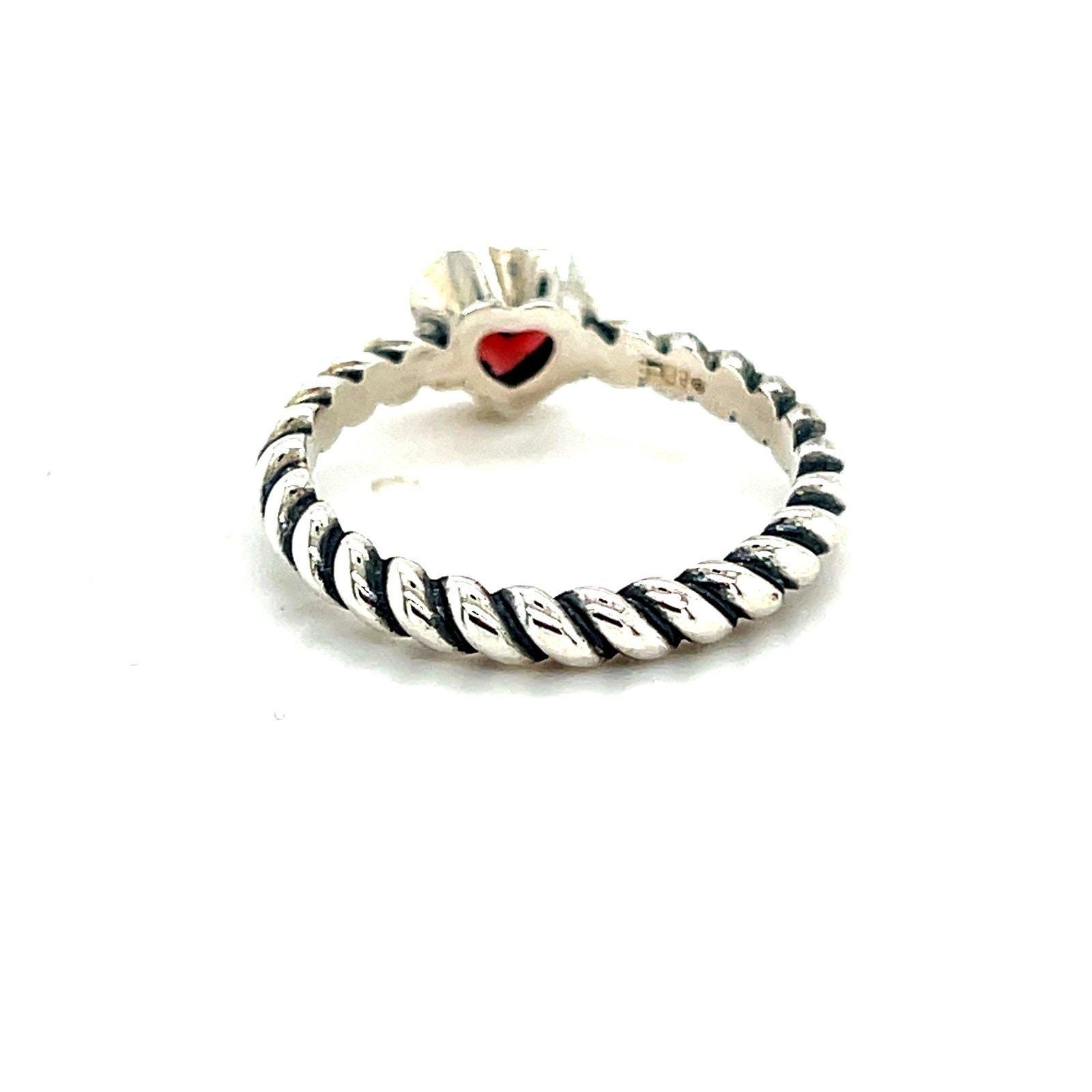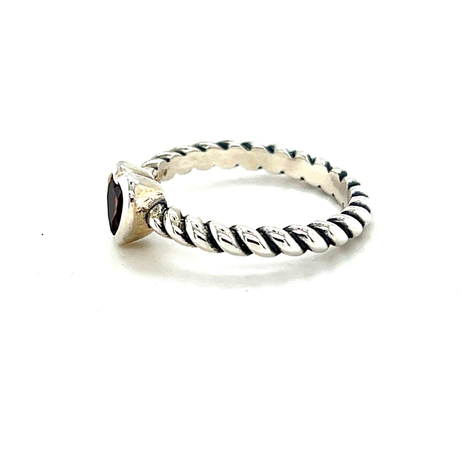 Silver and Authentic James Avery Garnet Gemstone Twisted Heart Ring.