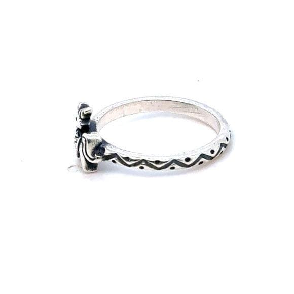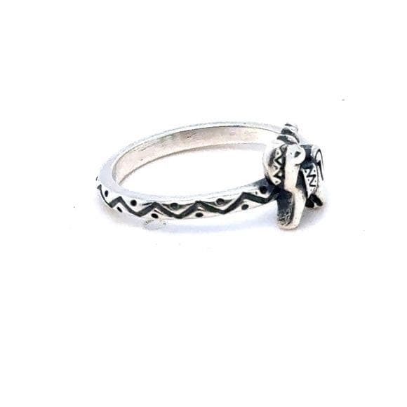 Charming silver ring featuring a small unicorn motif. Subtle engraved tribal accents on the band. Lightweight and whimsical for daily wear. Classic design with a playful touch.