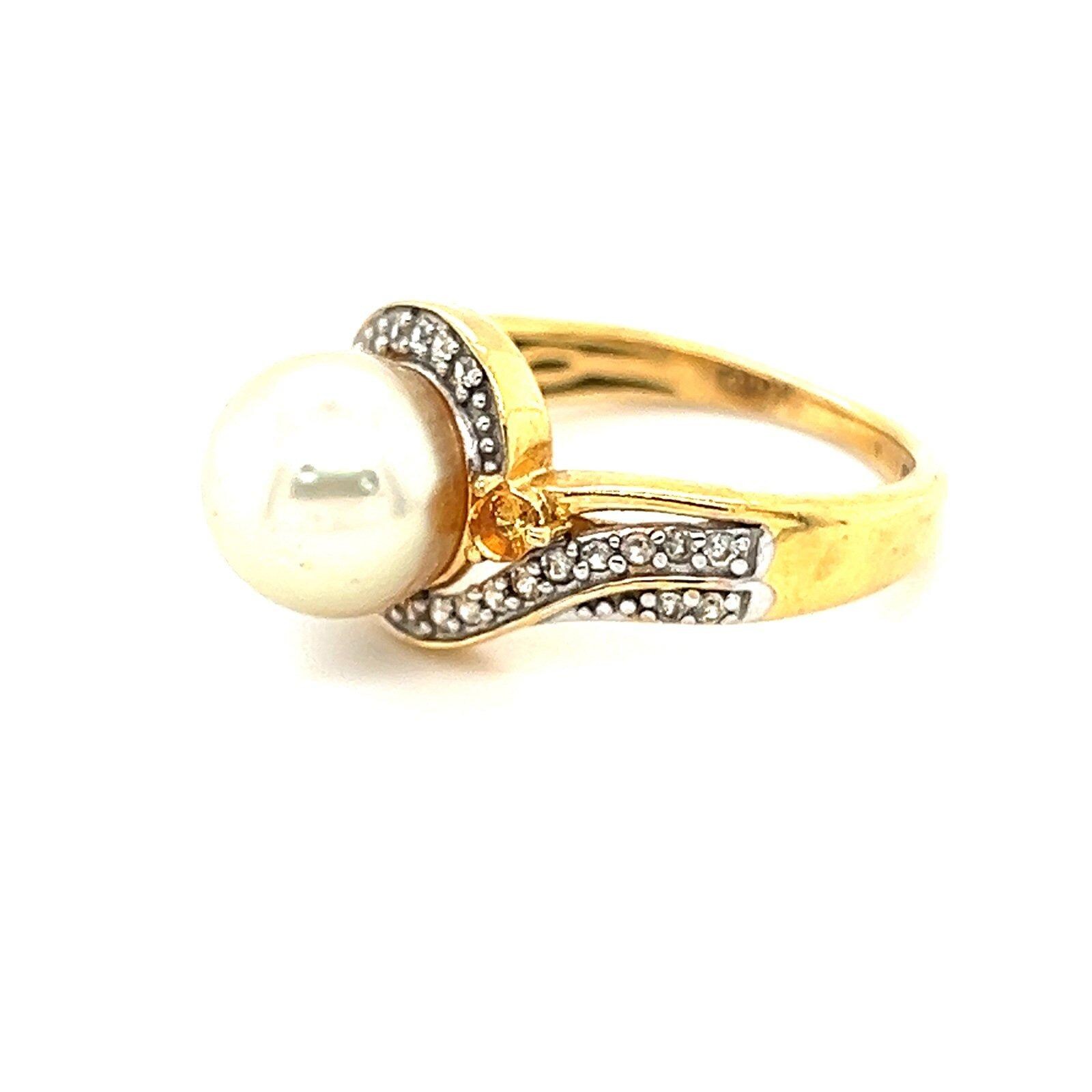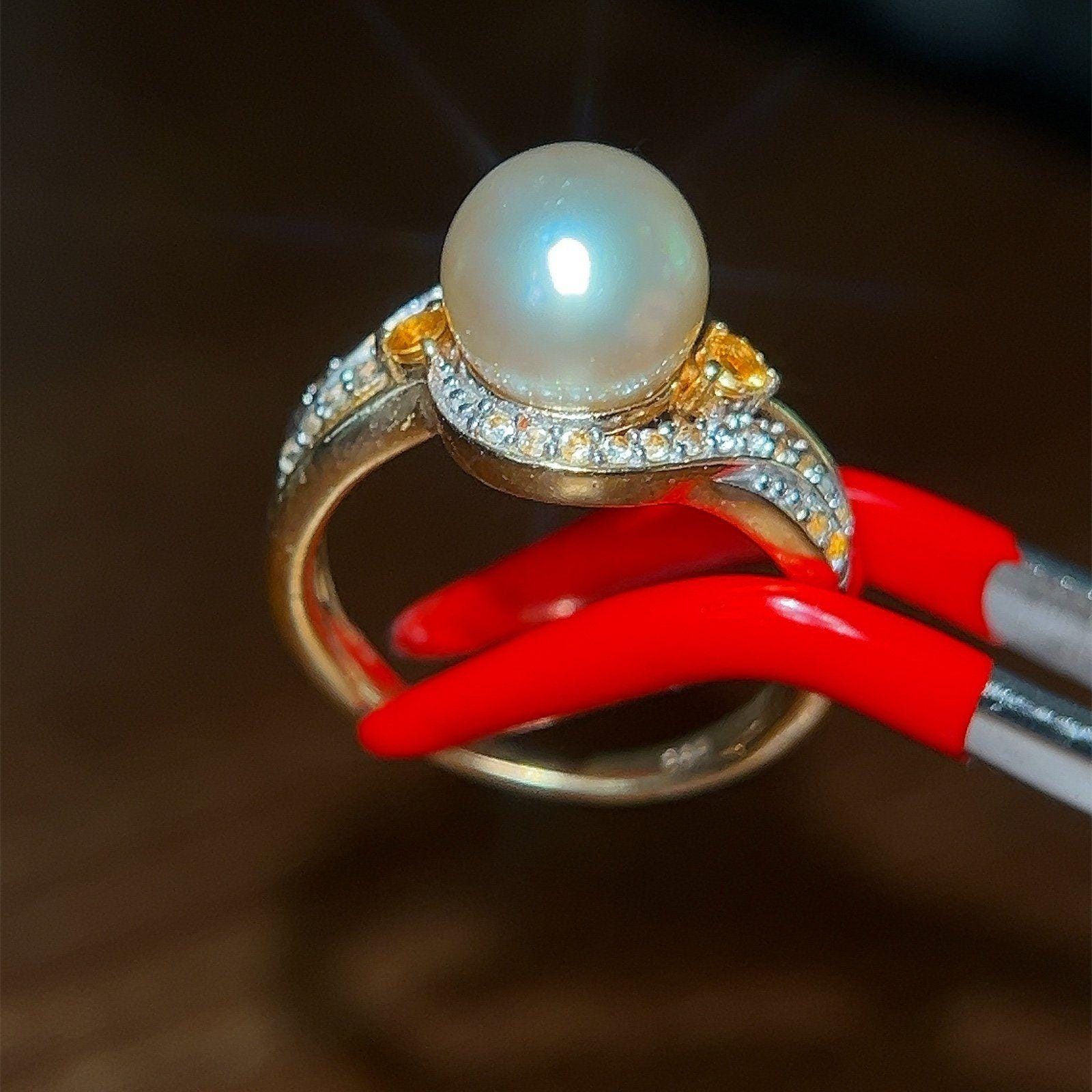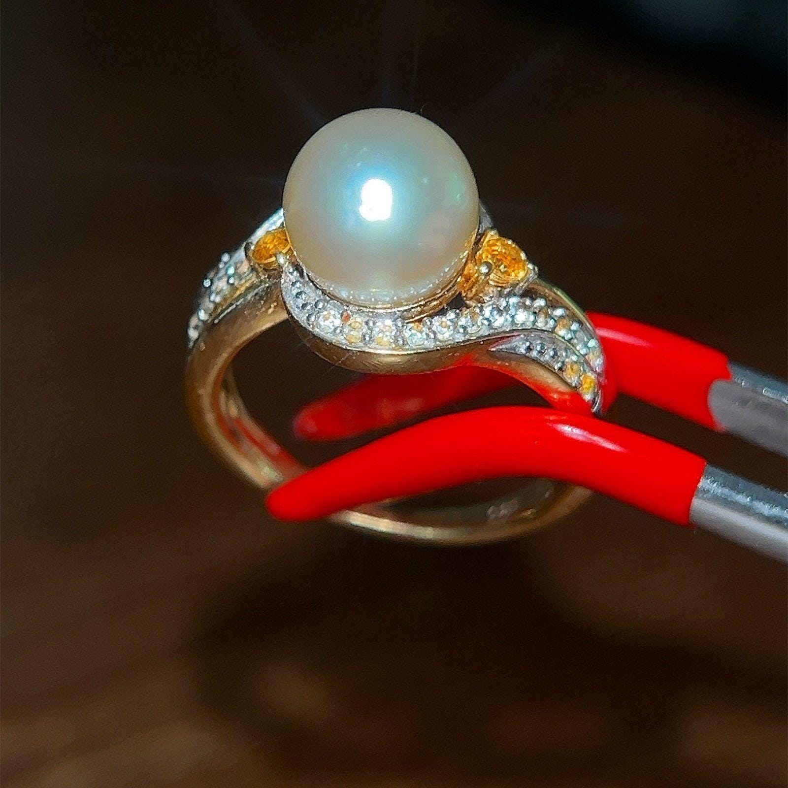 Gold Vermeil 925 Faux Pearl/Citrine/Cz Ring.
