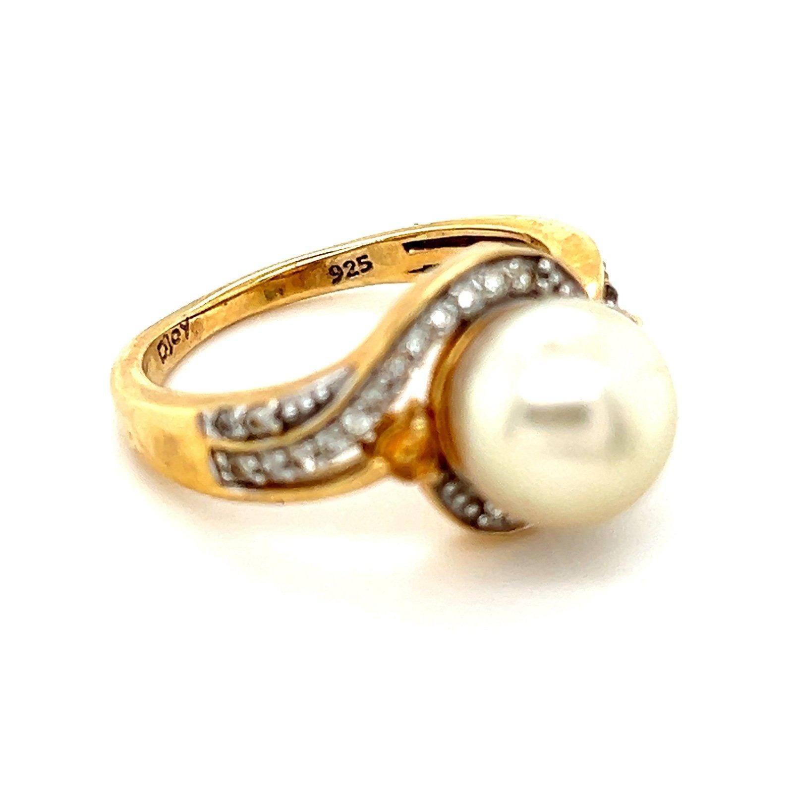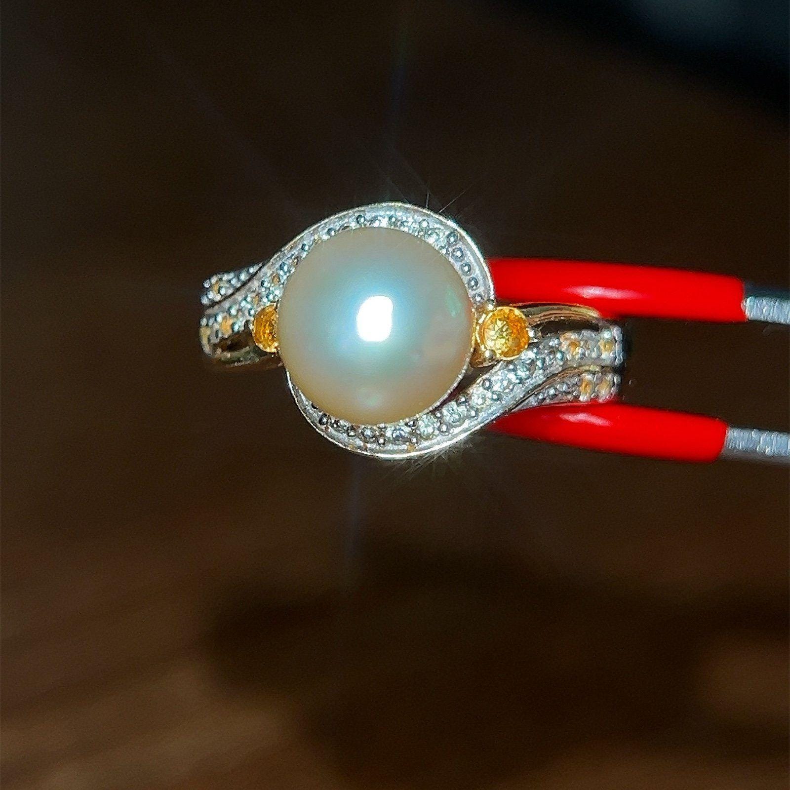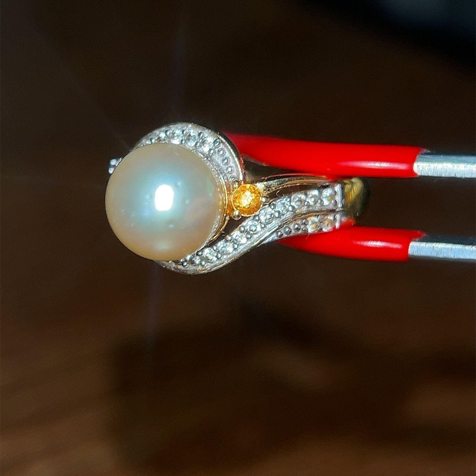 Gold Vermeil 925 Faux Pearl/Citrine/Cz Ring.