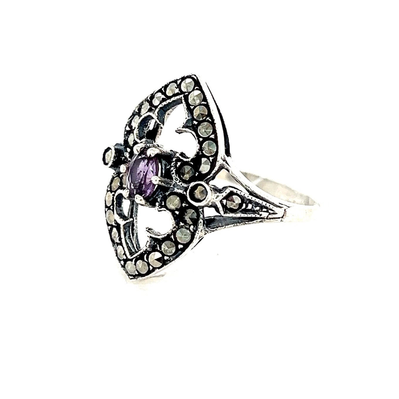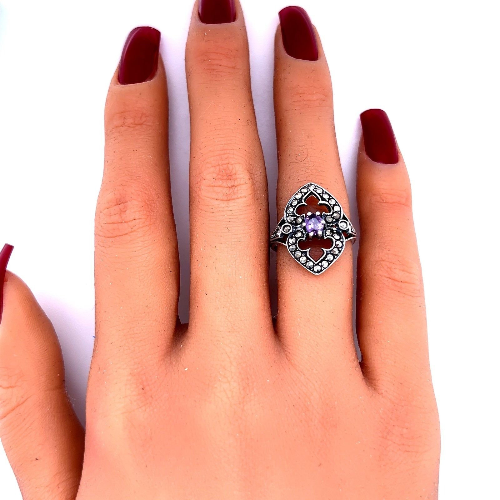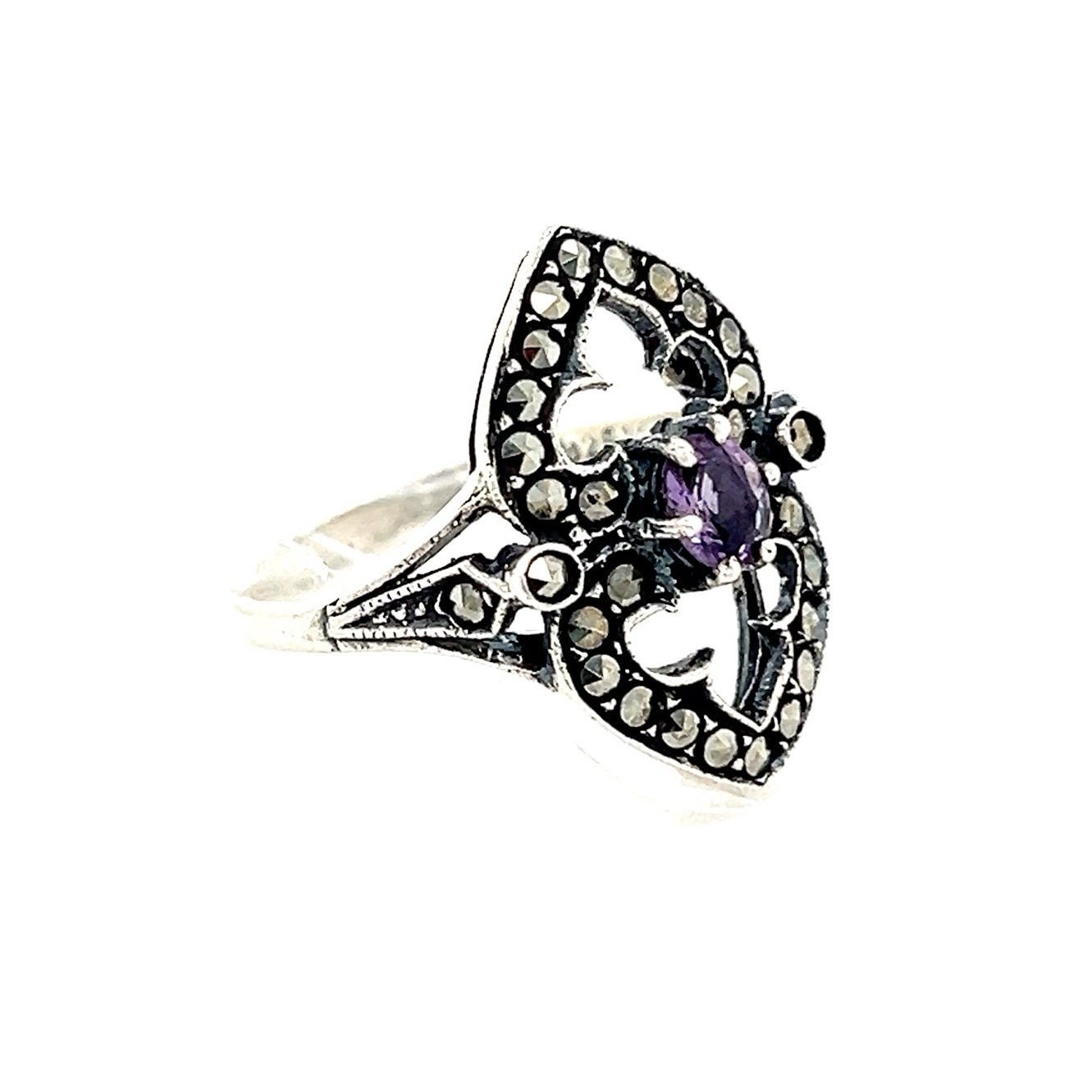 Sterling Silver 925 Amethyst & Marcasite Ring.