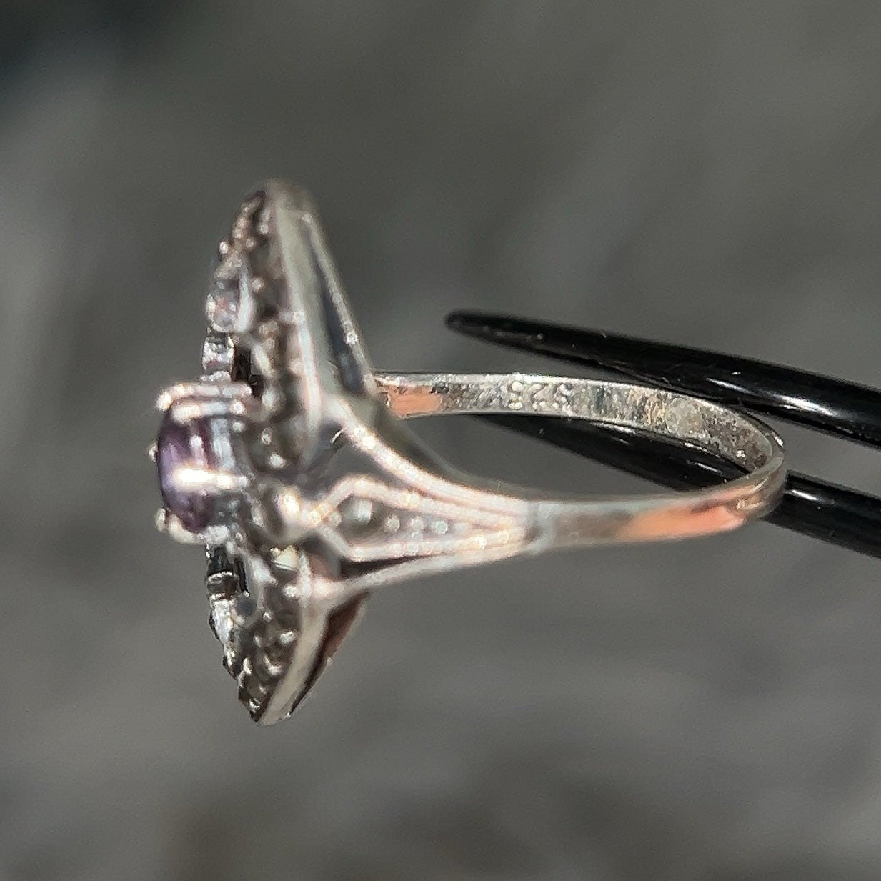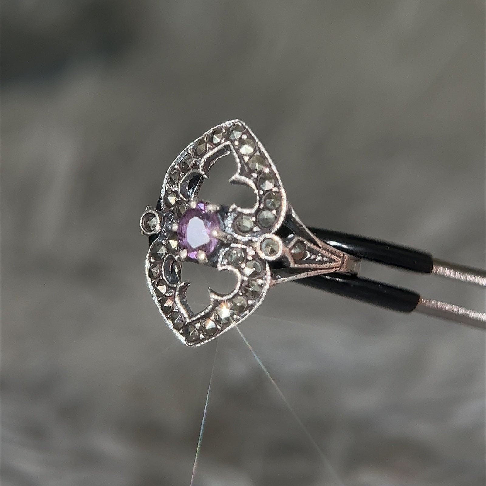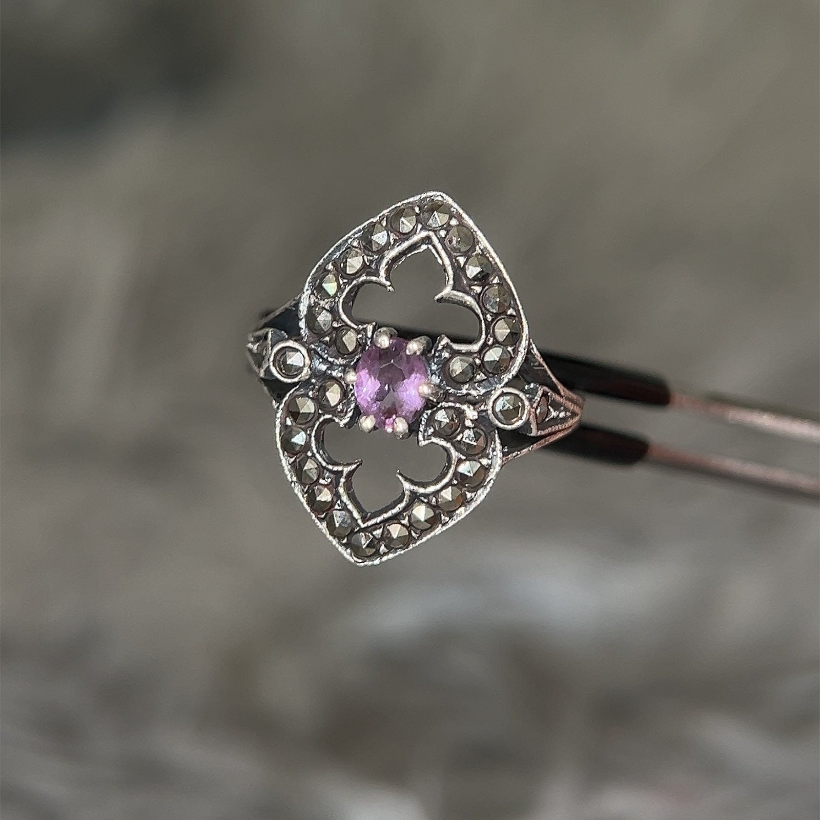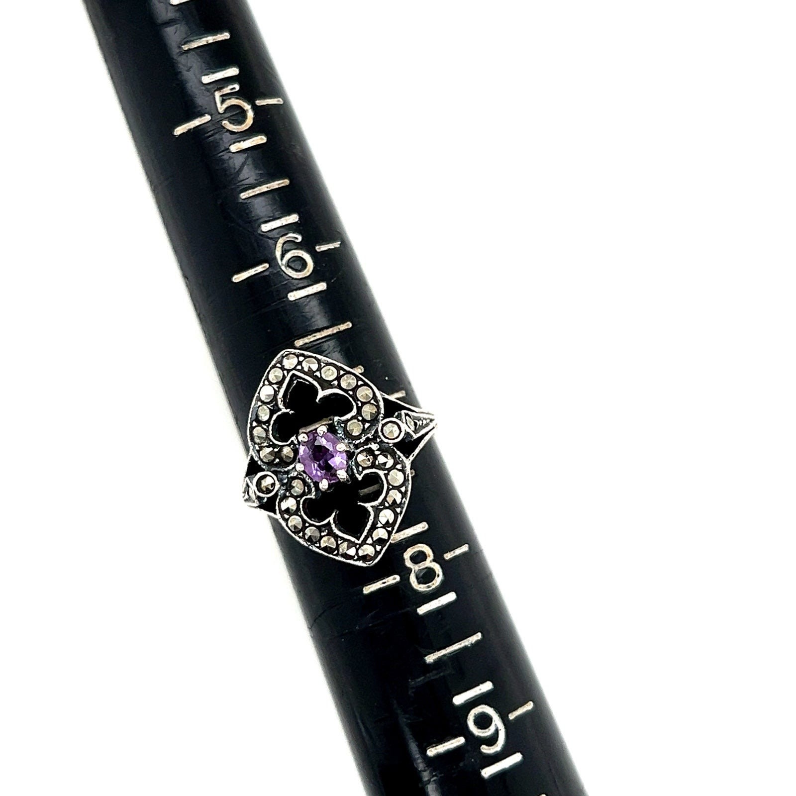 Sterling Silver 925 Amethyst & Marcasite Ring.