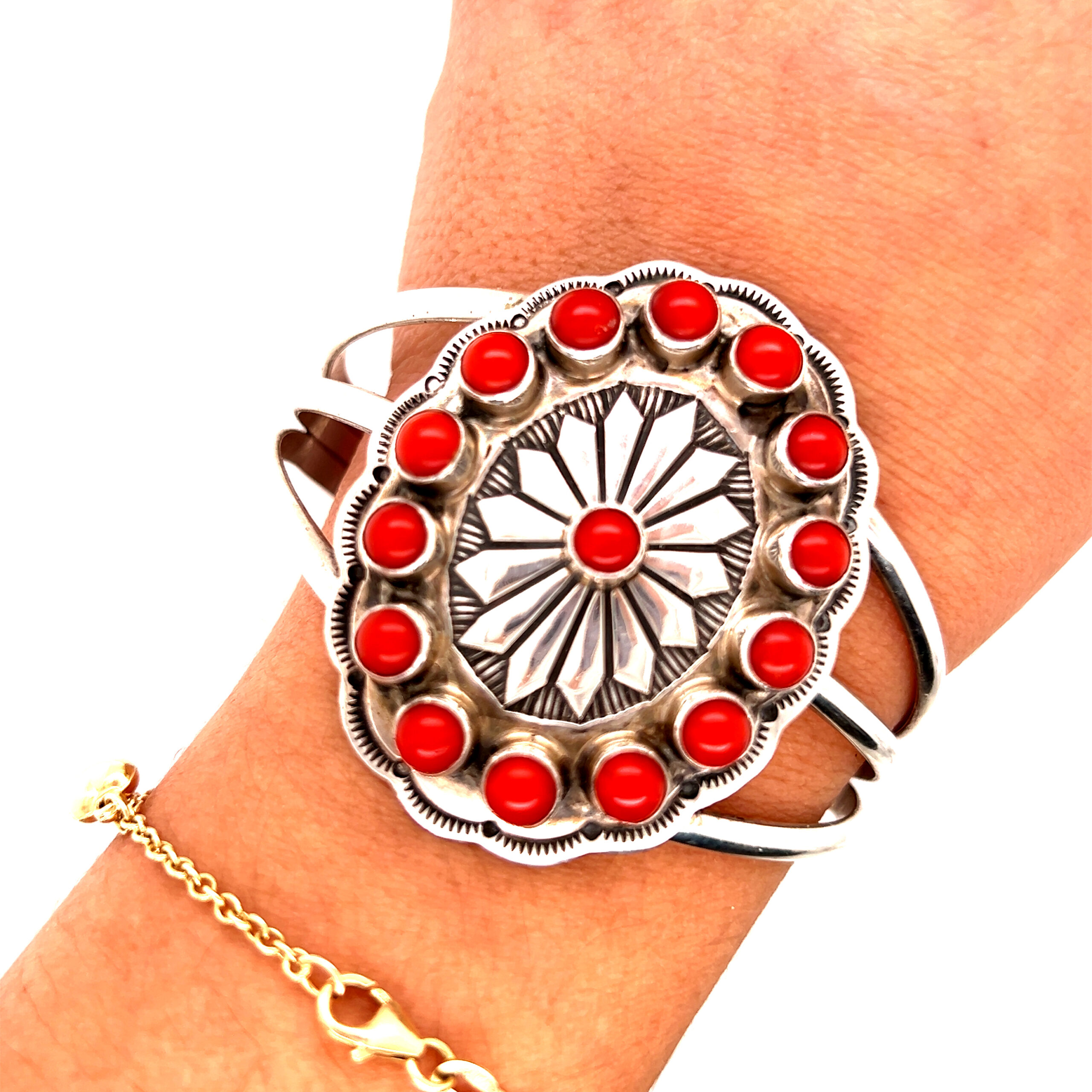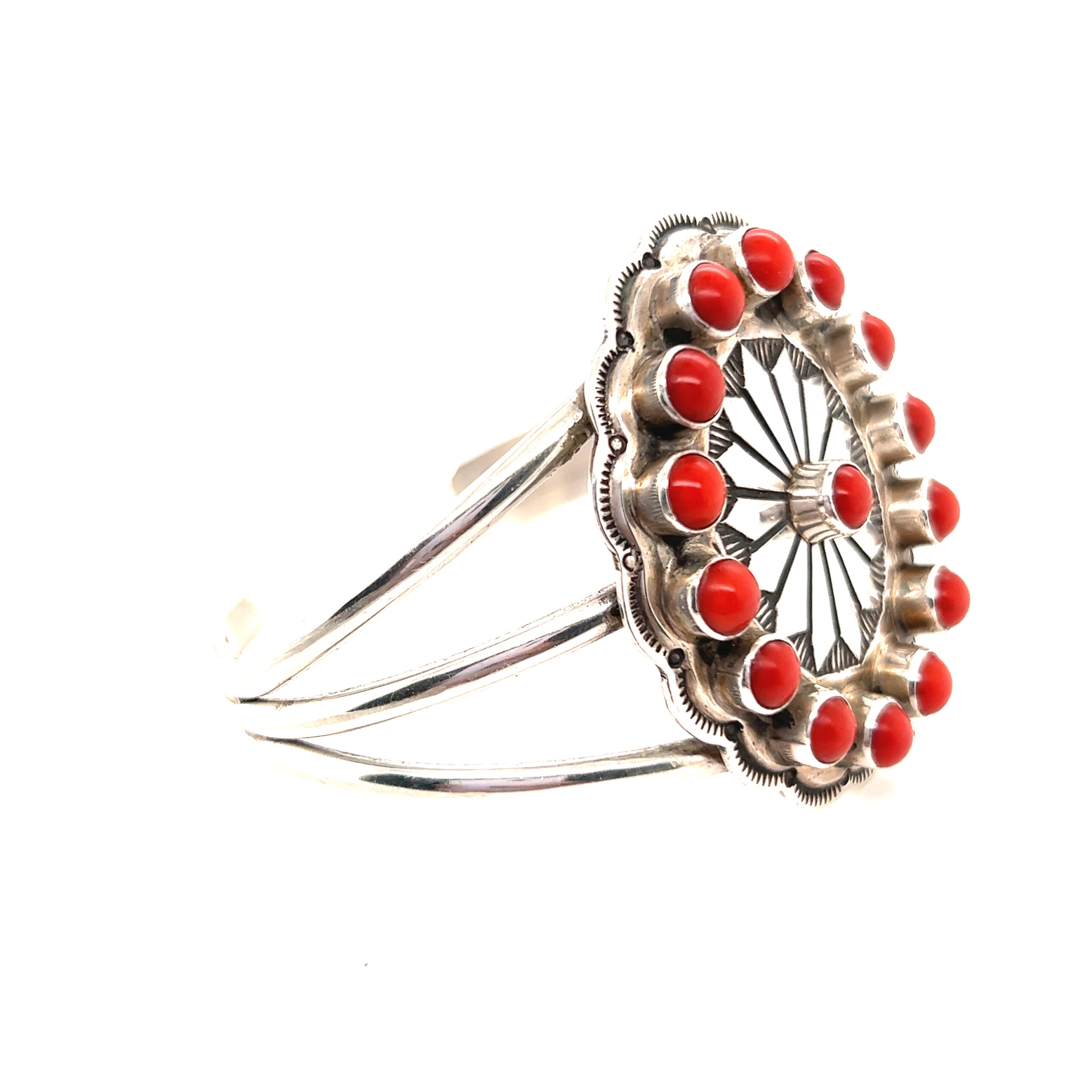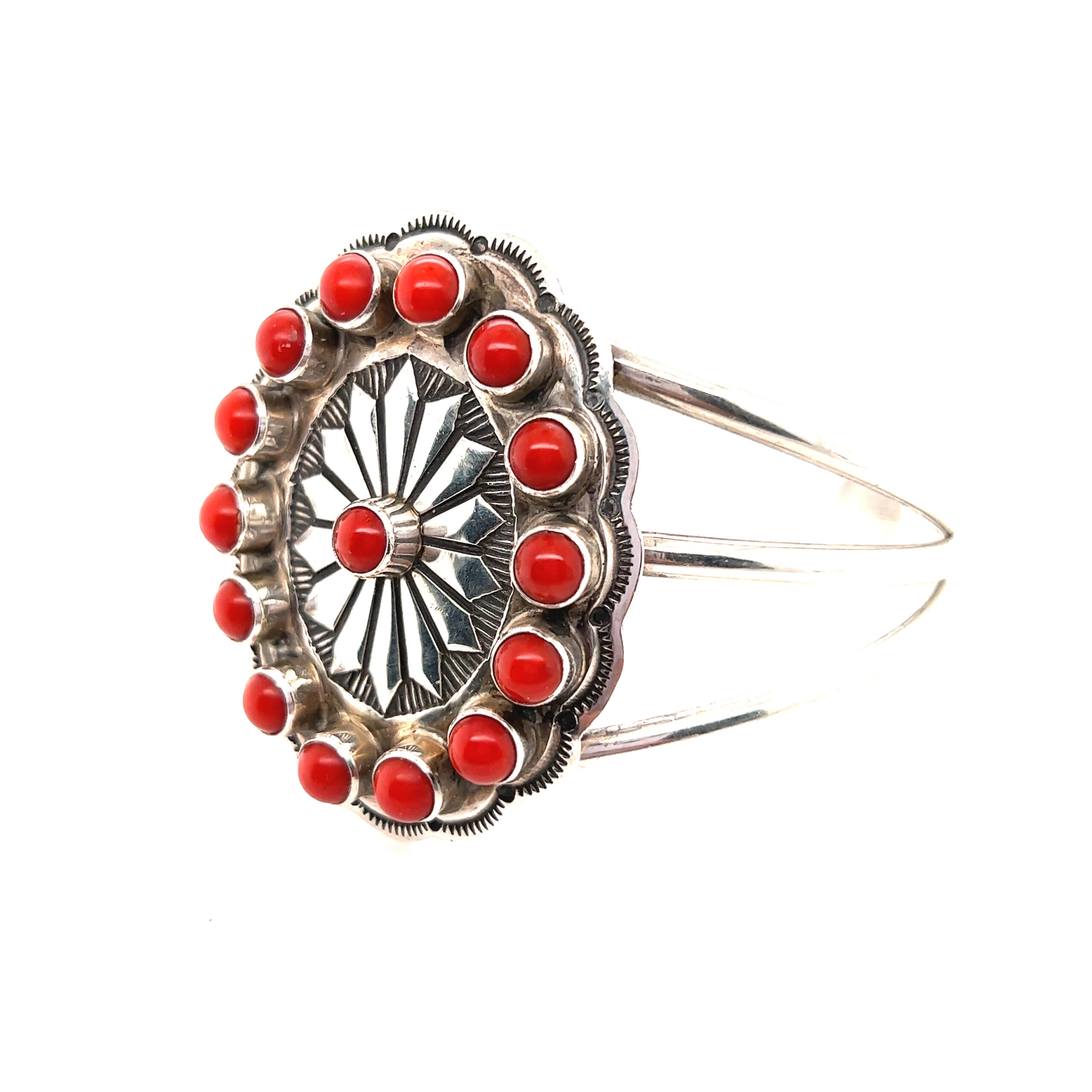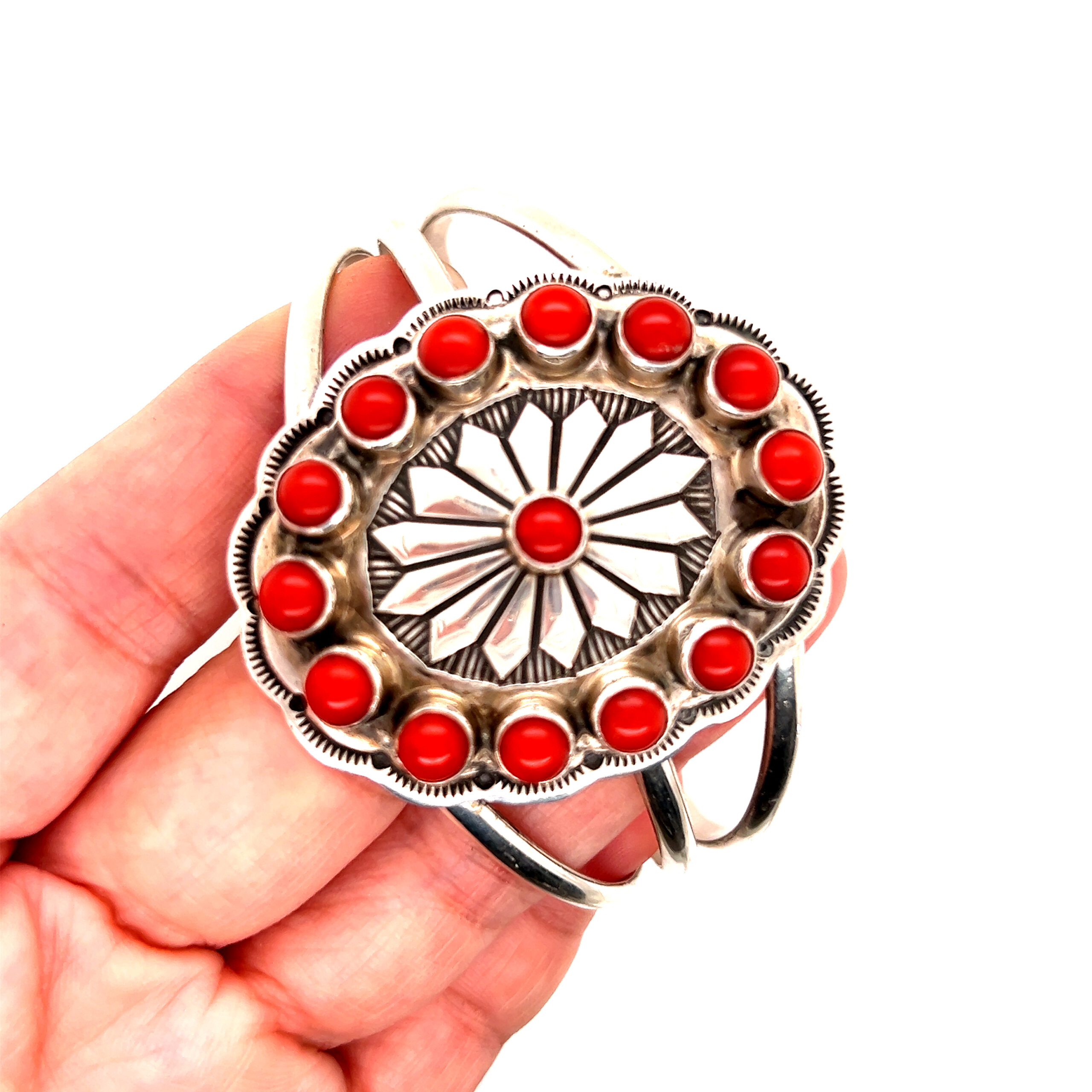 Navajo Sterling Silver Coral Cuff By D.Delgarito.