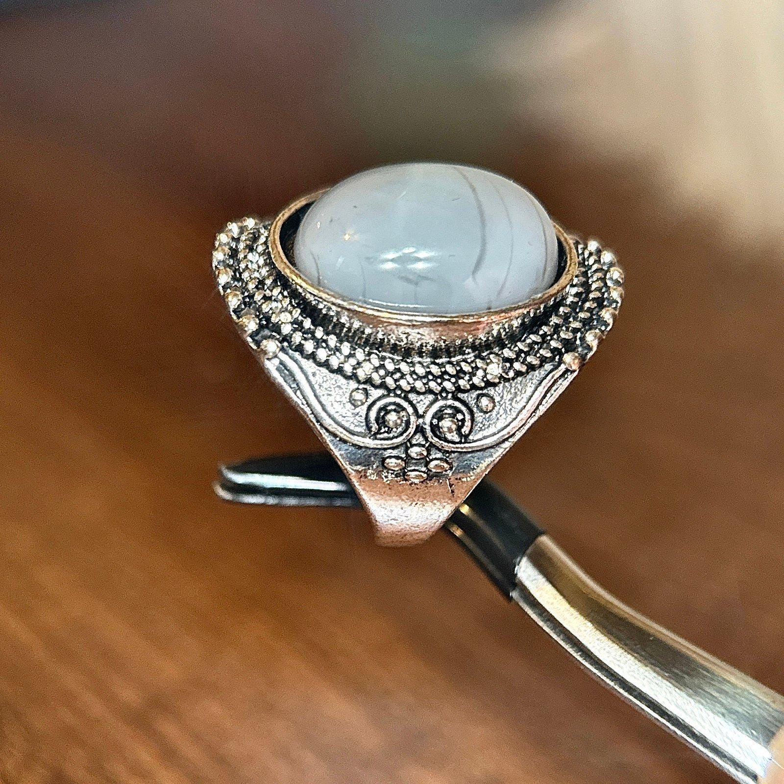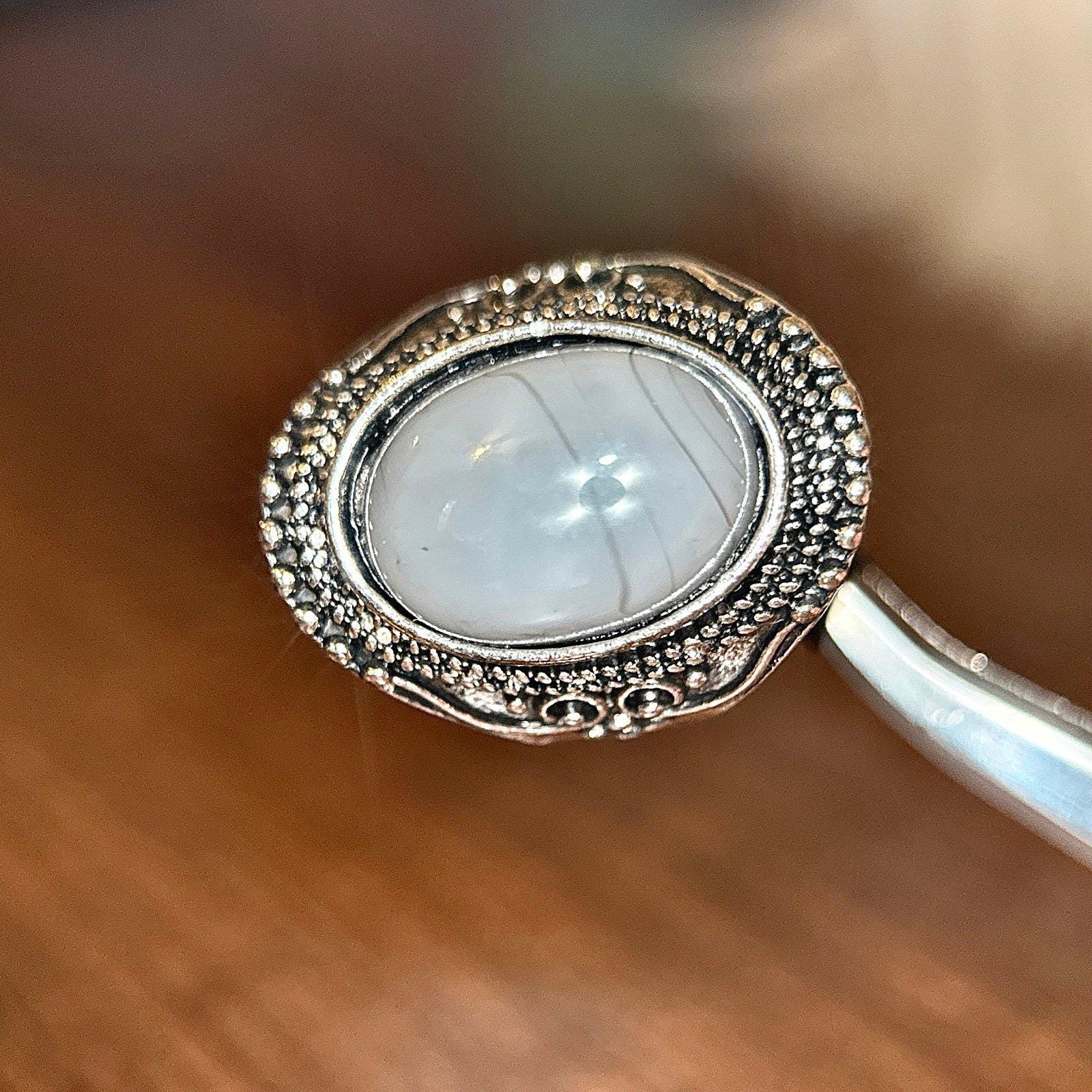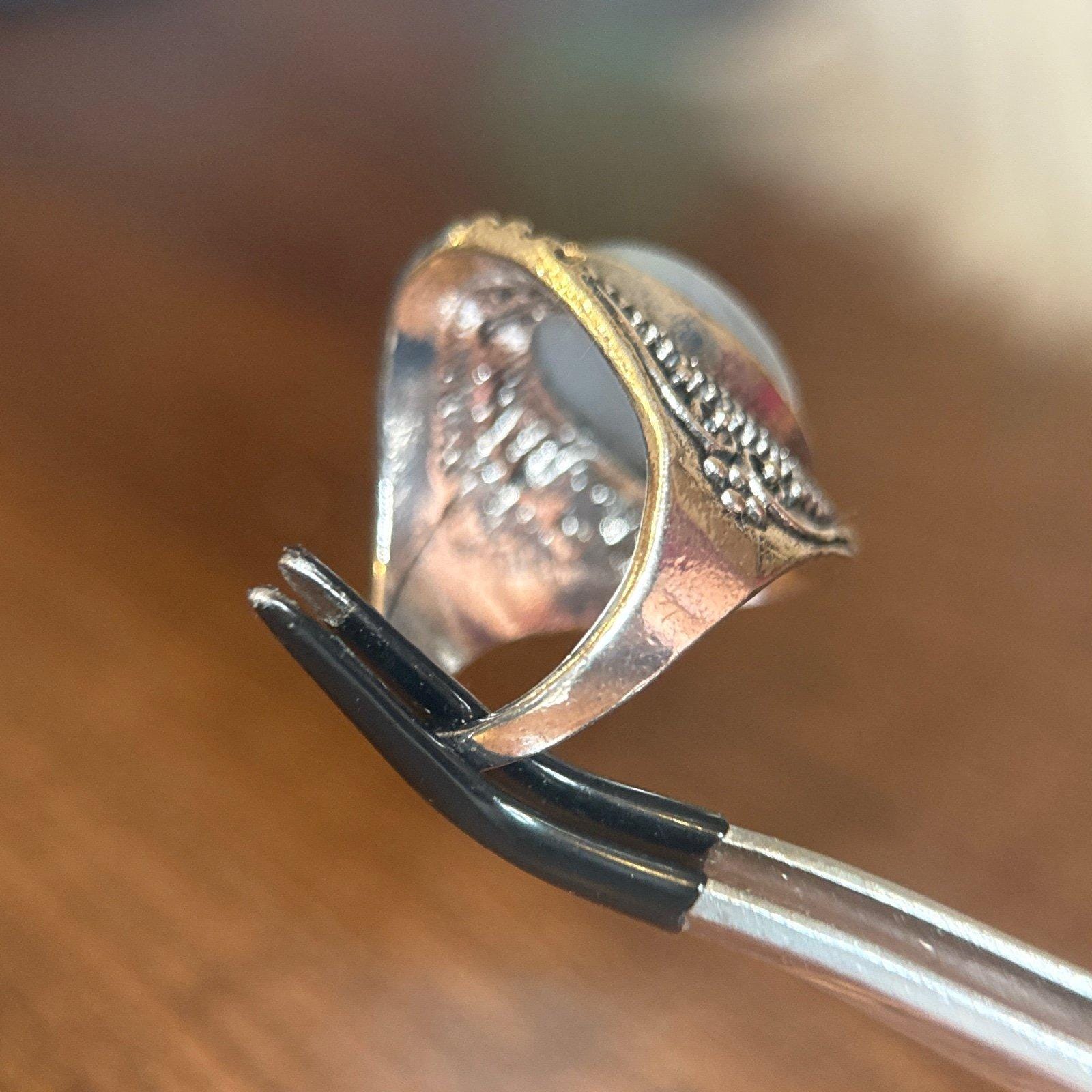 Large Gray Stone Ring Not real silver Excellent condition Size 9