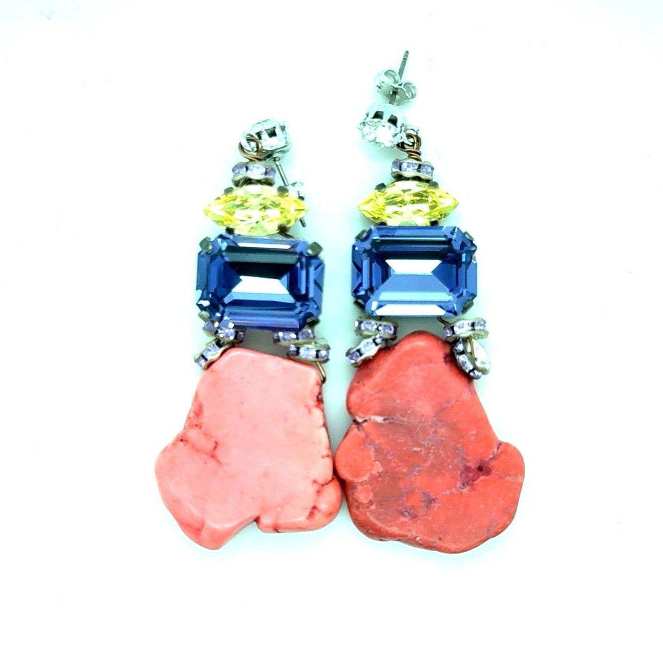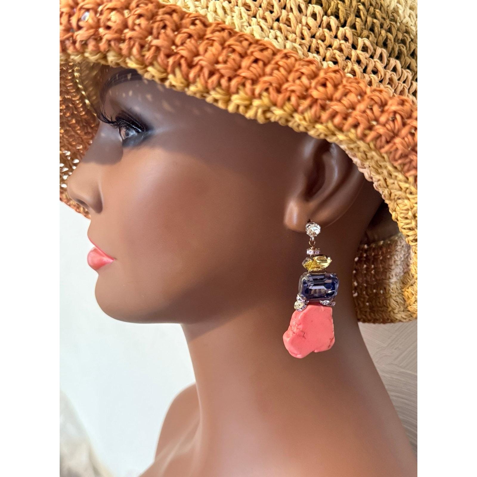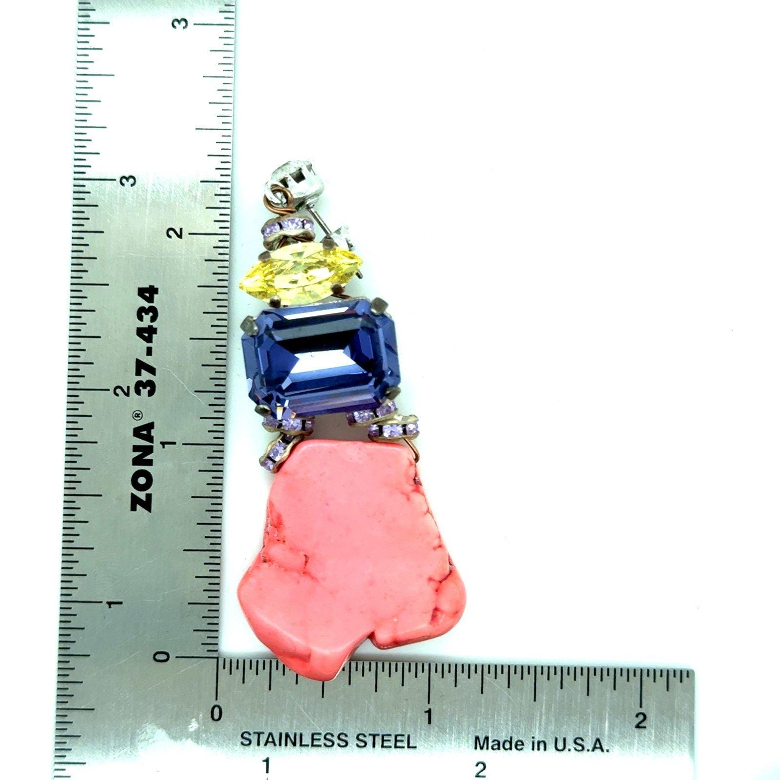 Pink with purple , yellow and white cz on top earrings