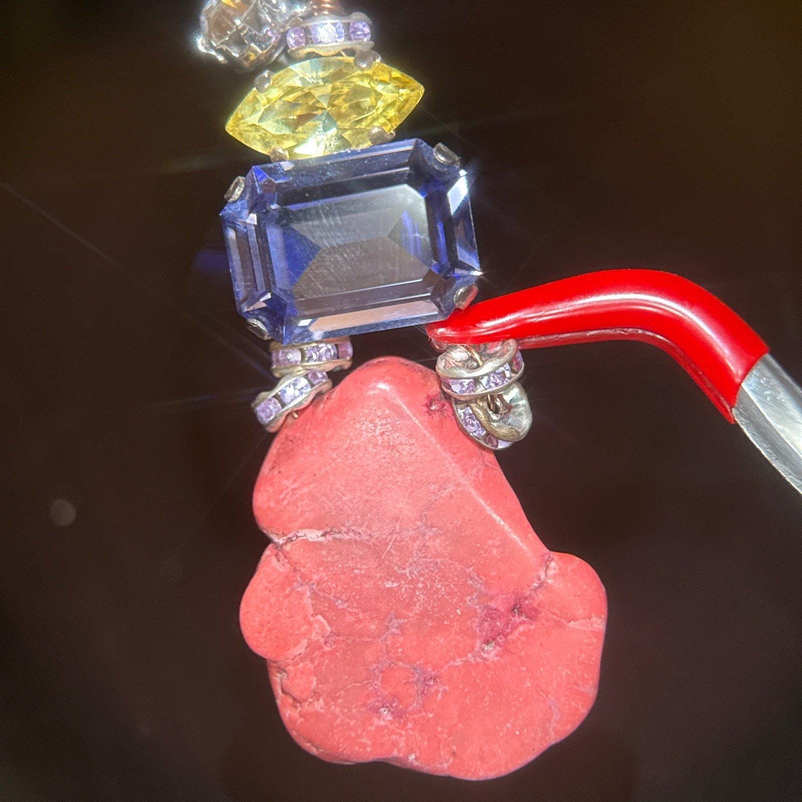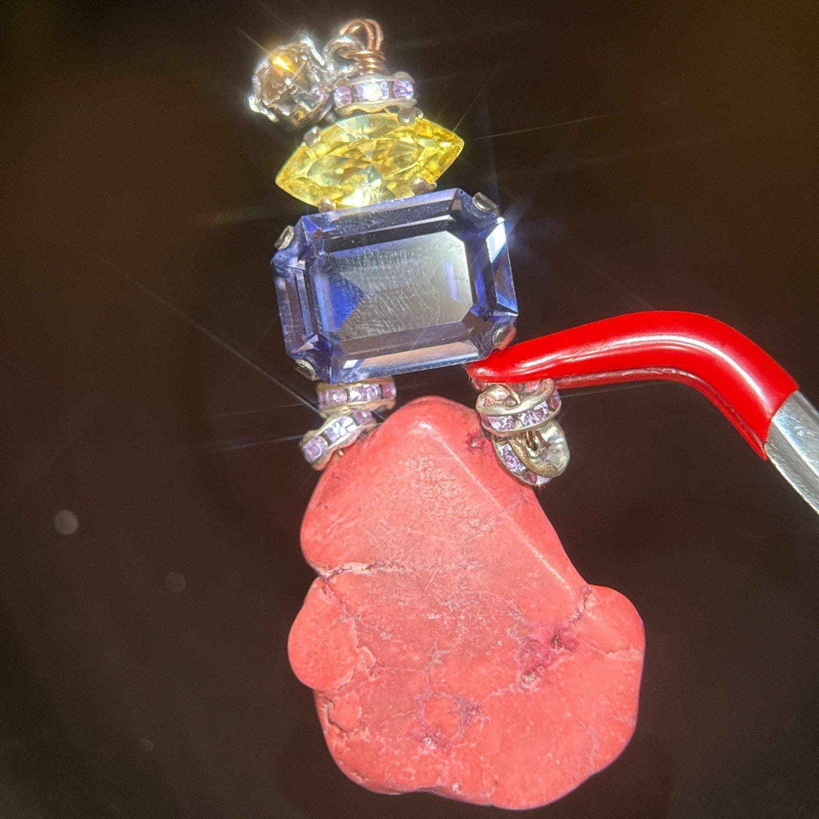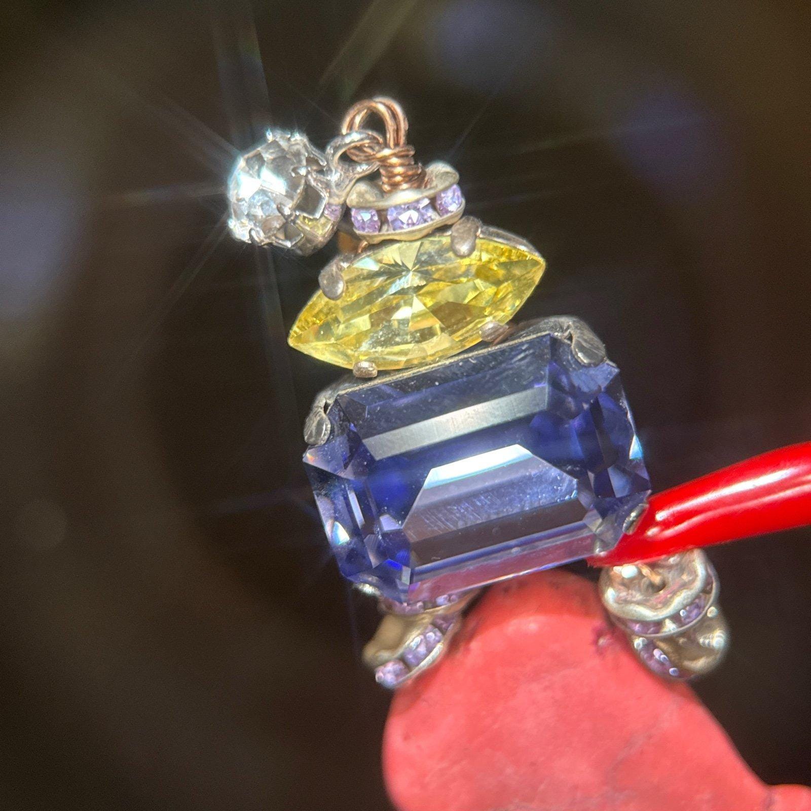 Pink with purple , yellow and white cz on top earrings