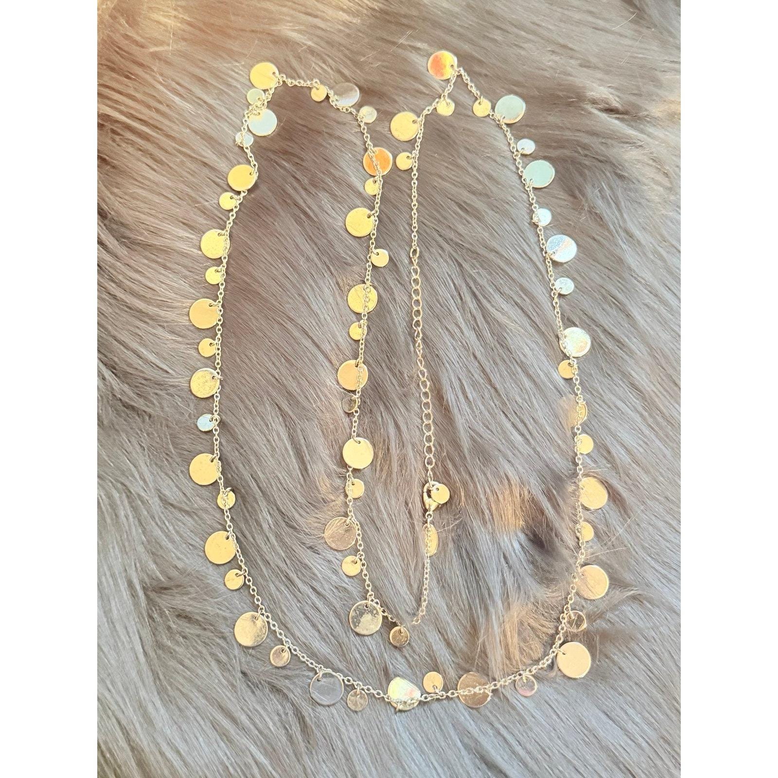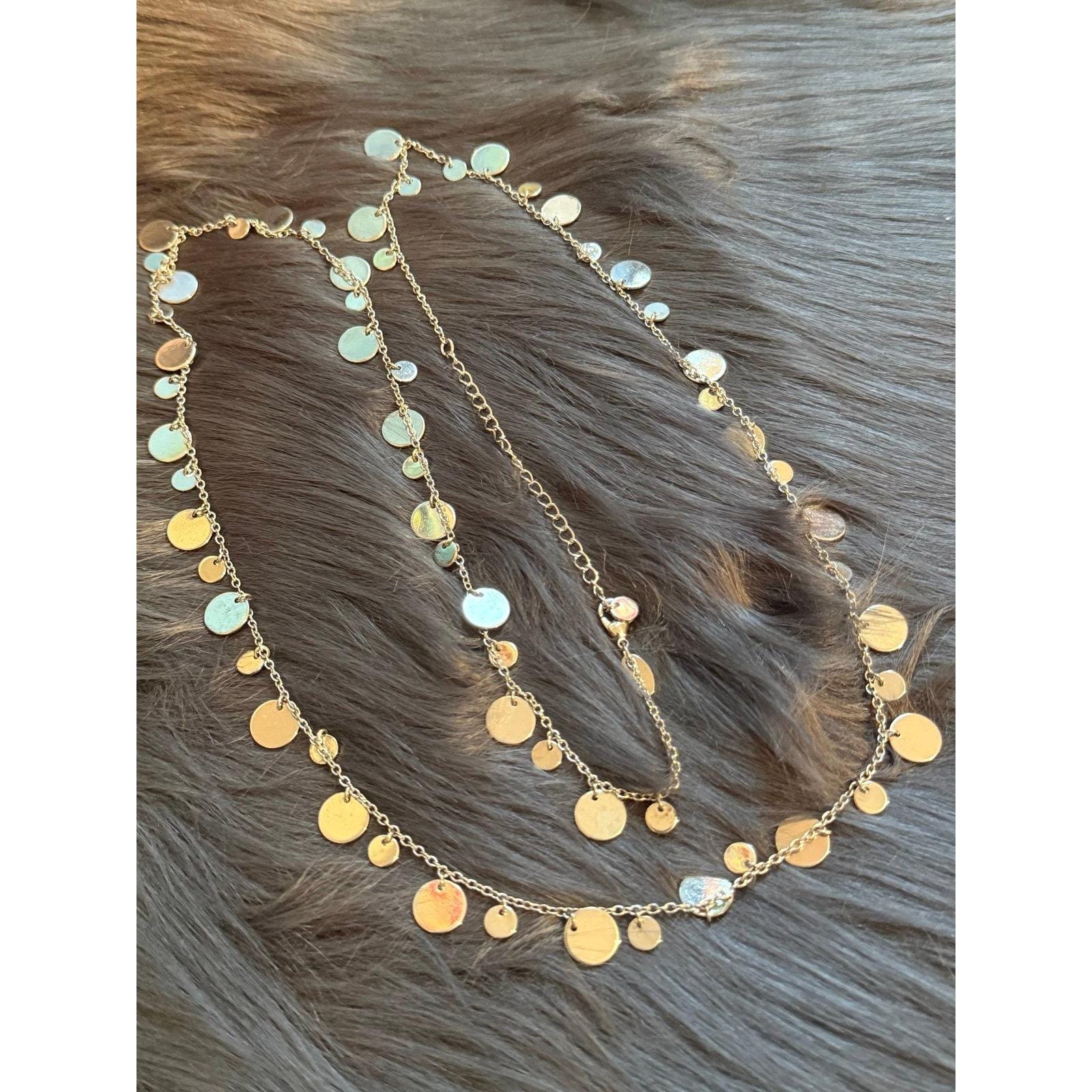 Lia Sophia Discs NecklaceSilver colorMeasures 33.5” L and adjustable up to 37” LPreowned