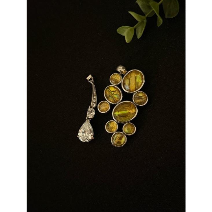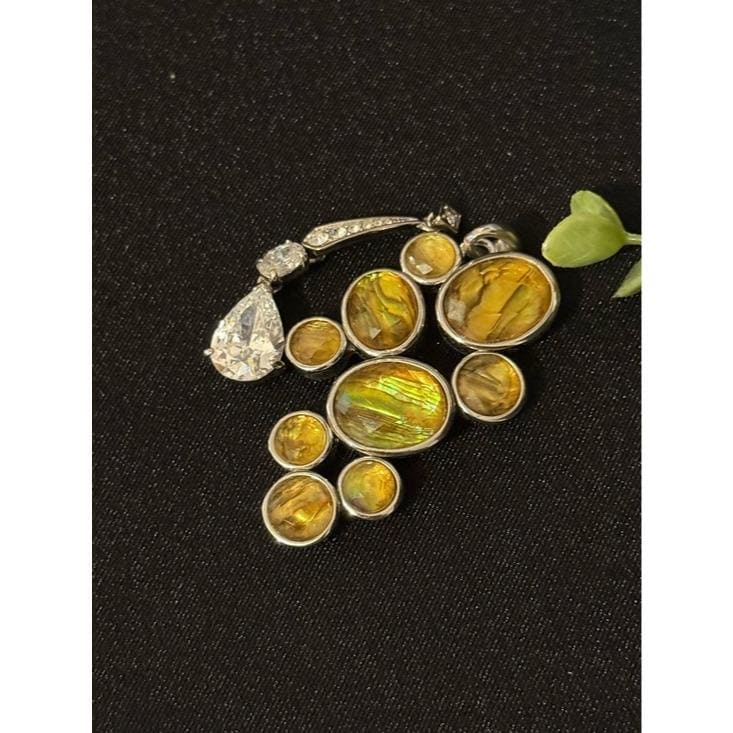 Lia Sophia Golden-Green Abalone Cluster & Monet Crystals Pendant