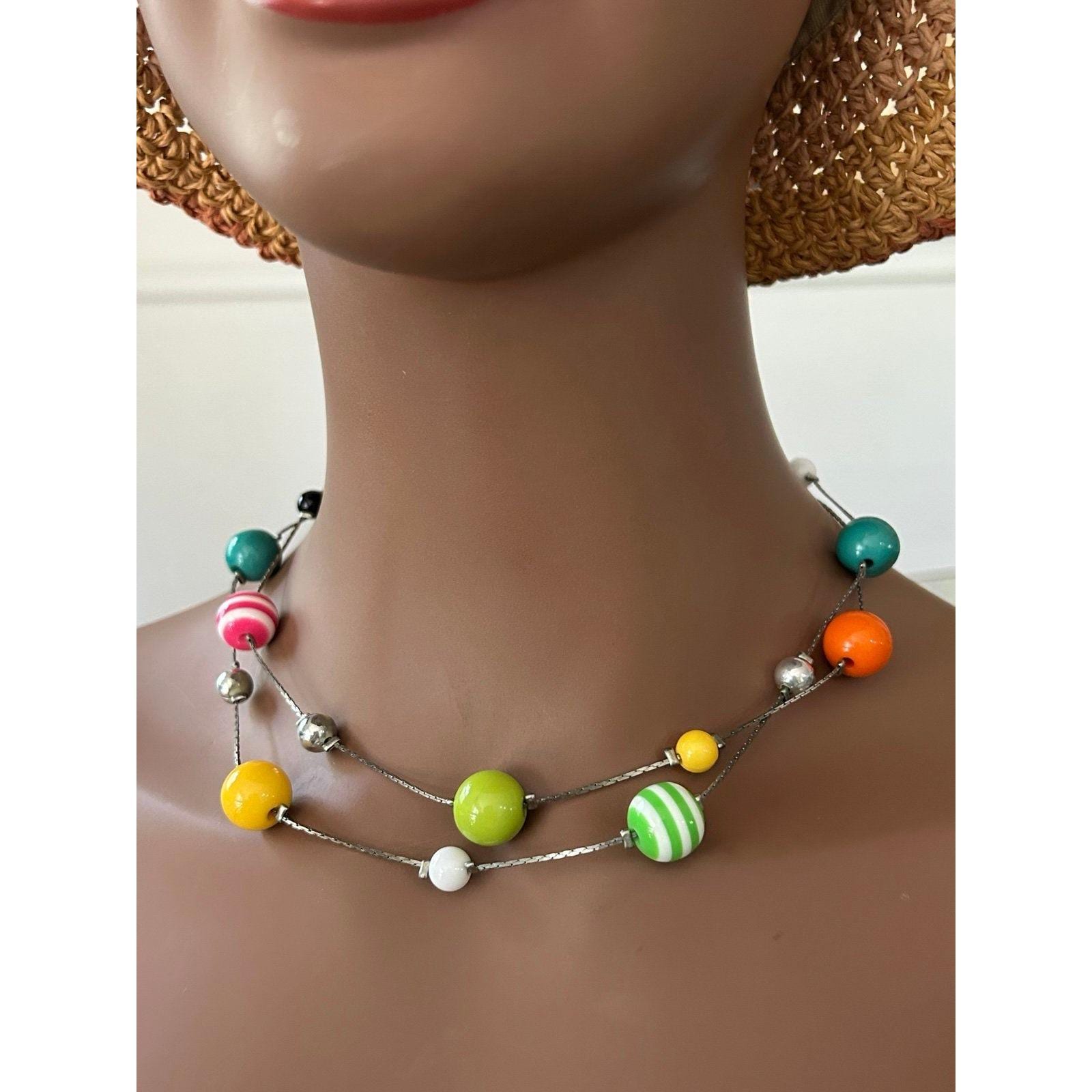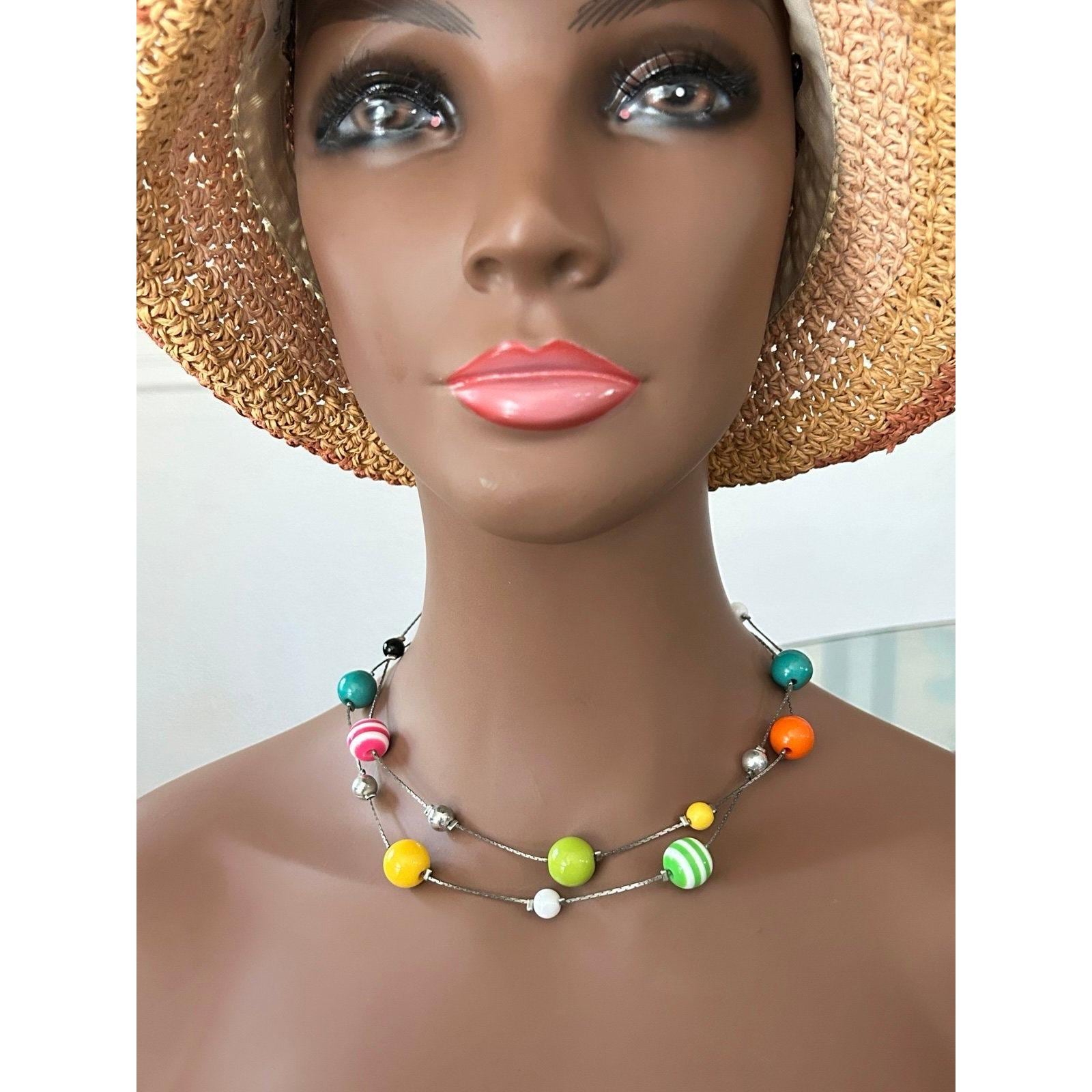 Cute long multicolor ball necklace Measures 36” L Preowned Lovely colors