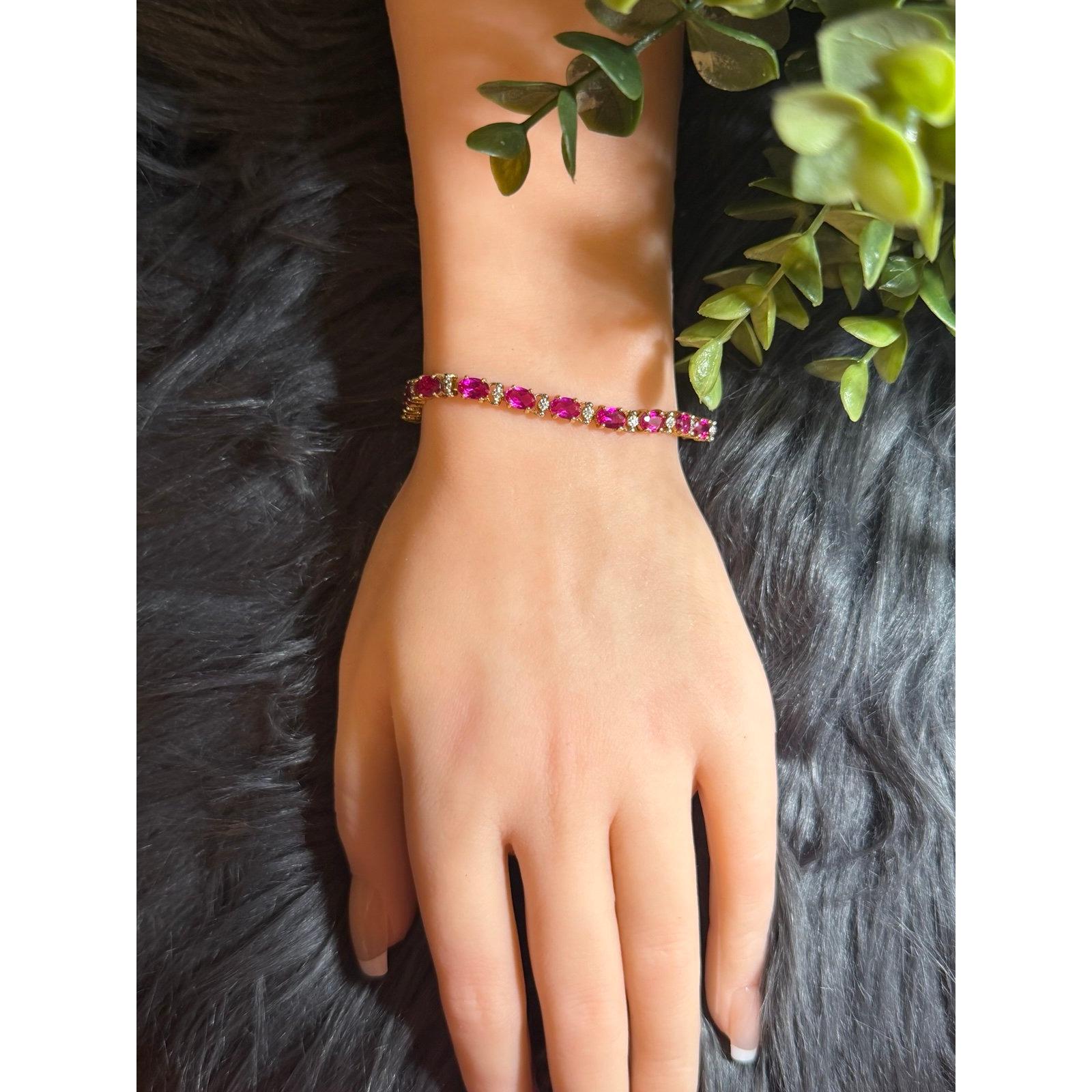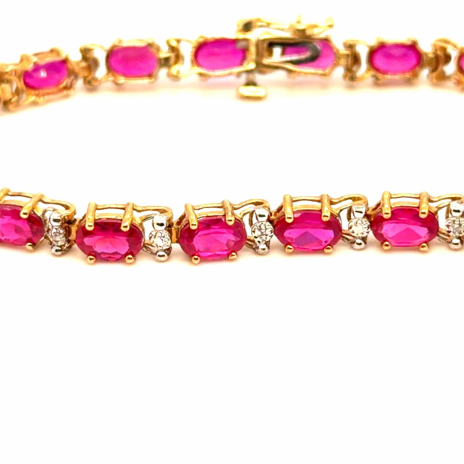 Real 10K Yellow Gold Synthetic Rubies /Diamond Accent Bracelet , REAL GOLD, NOT GOLD PLATED OR GOLD FILLED.