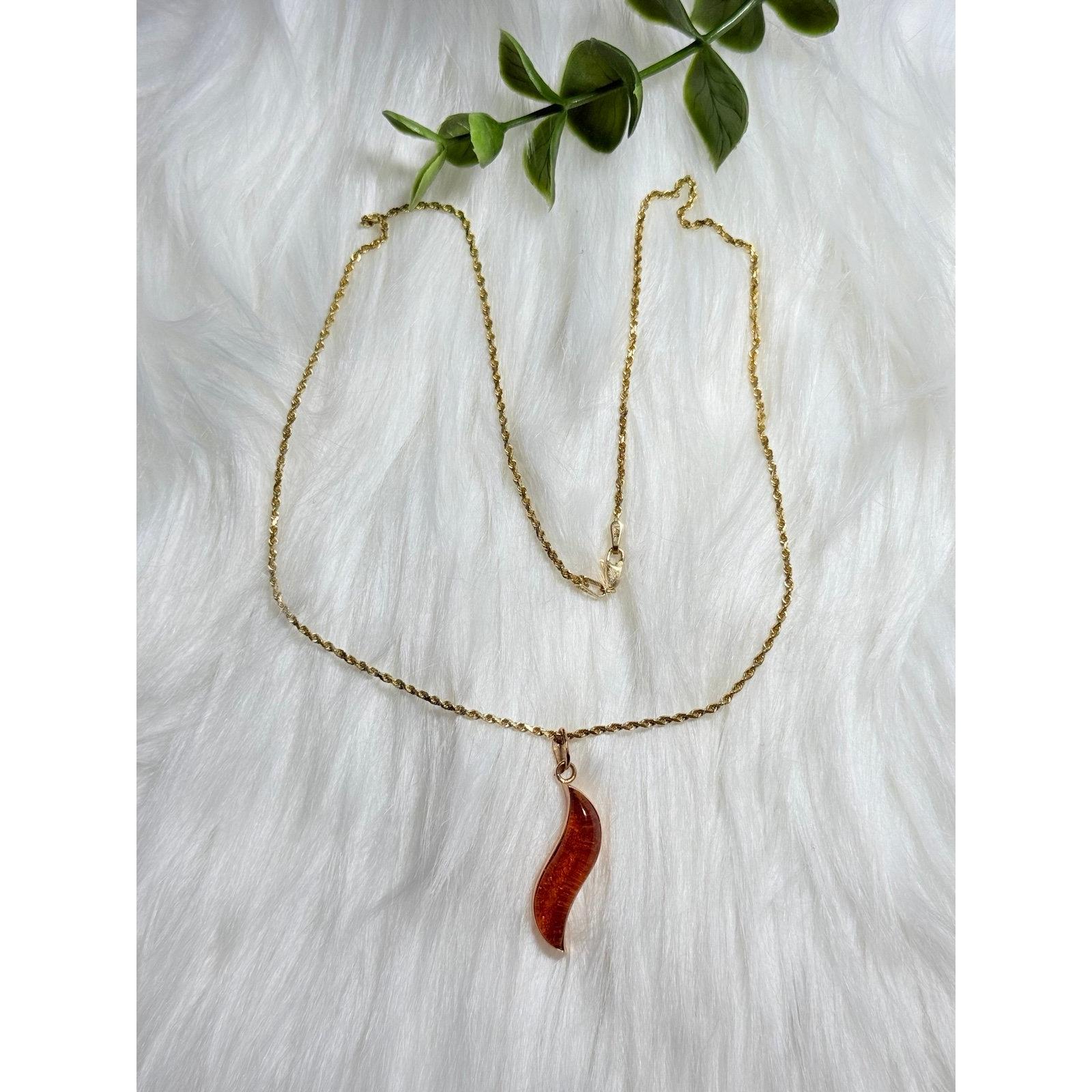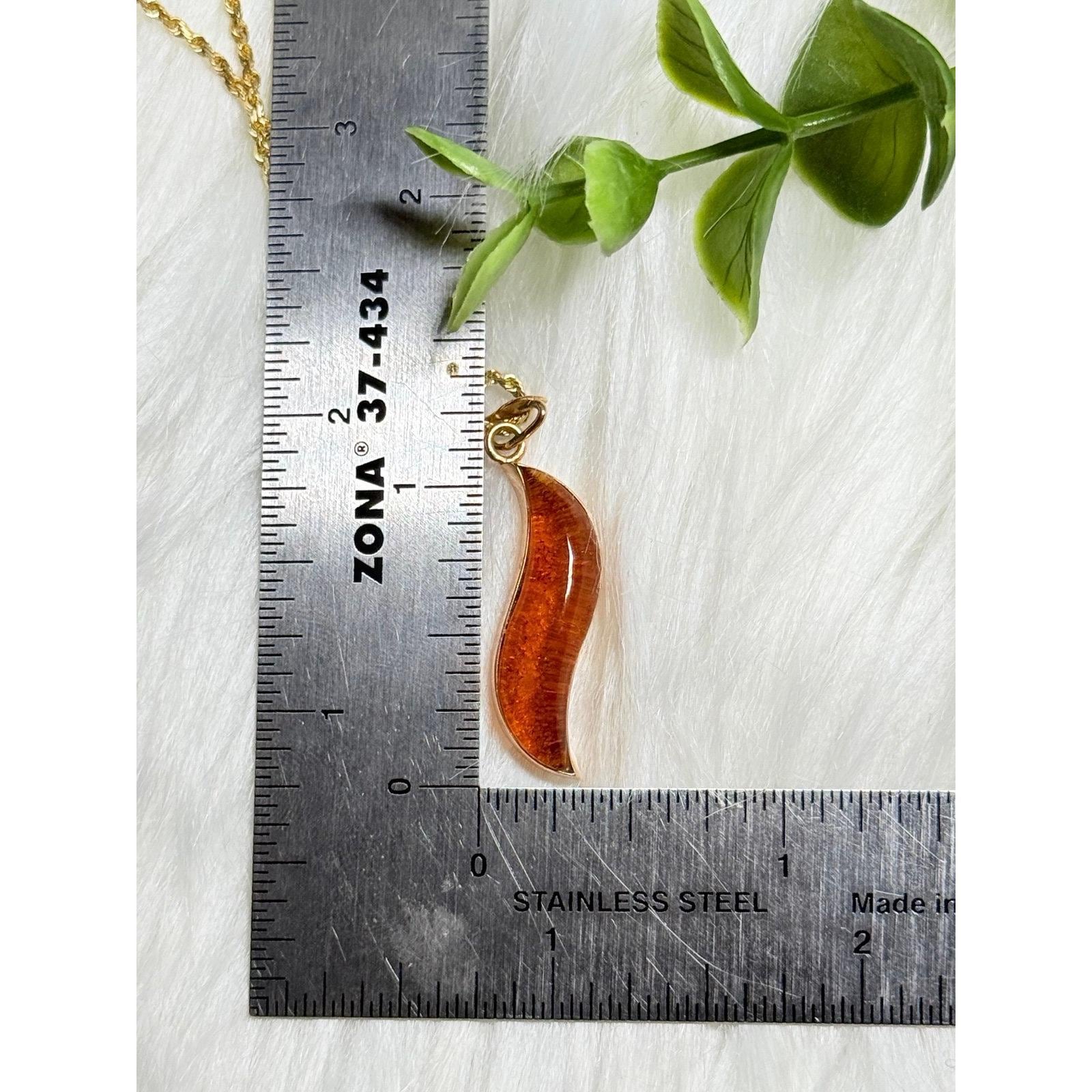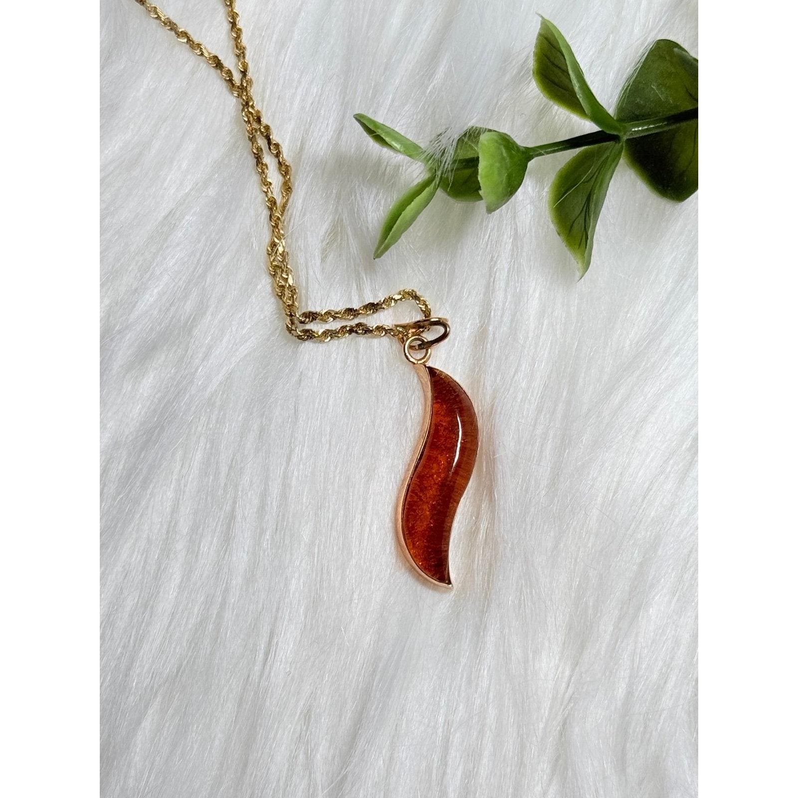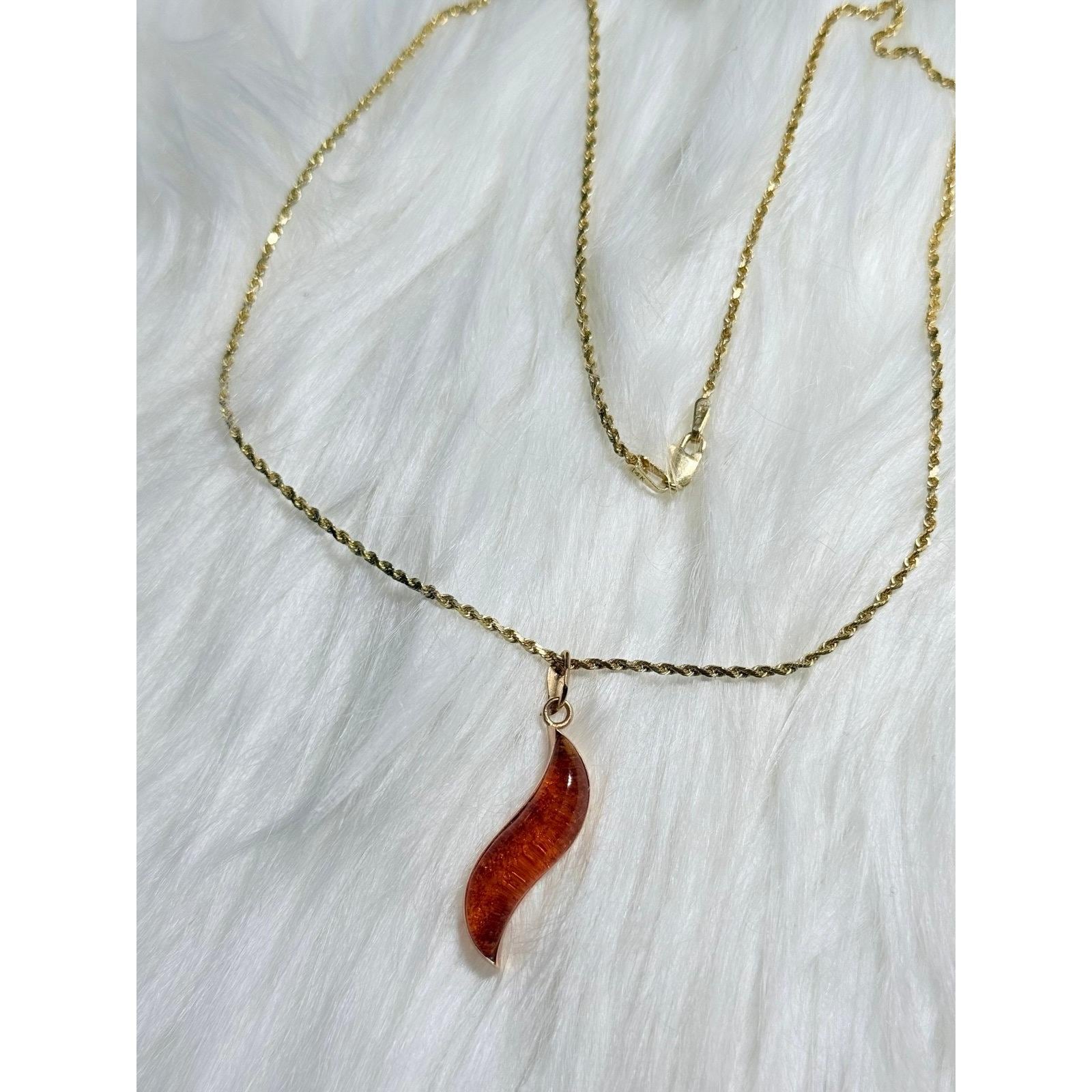 Real 14k Yellow Gold Amber Pendant Necklace , REAL GOLD, NOT GOLD PLATED OR GOLD FILLED.