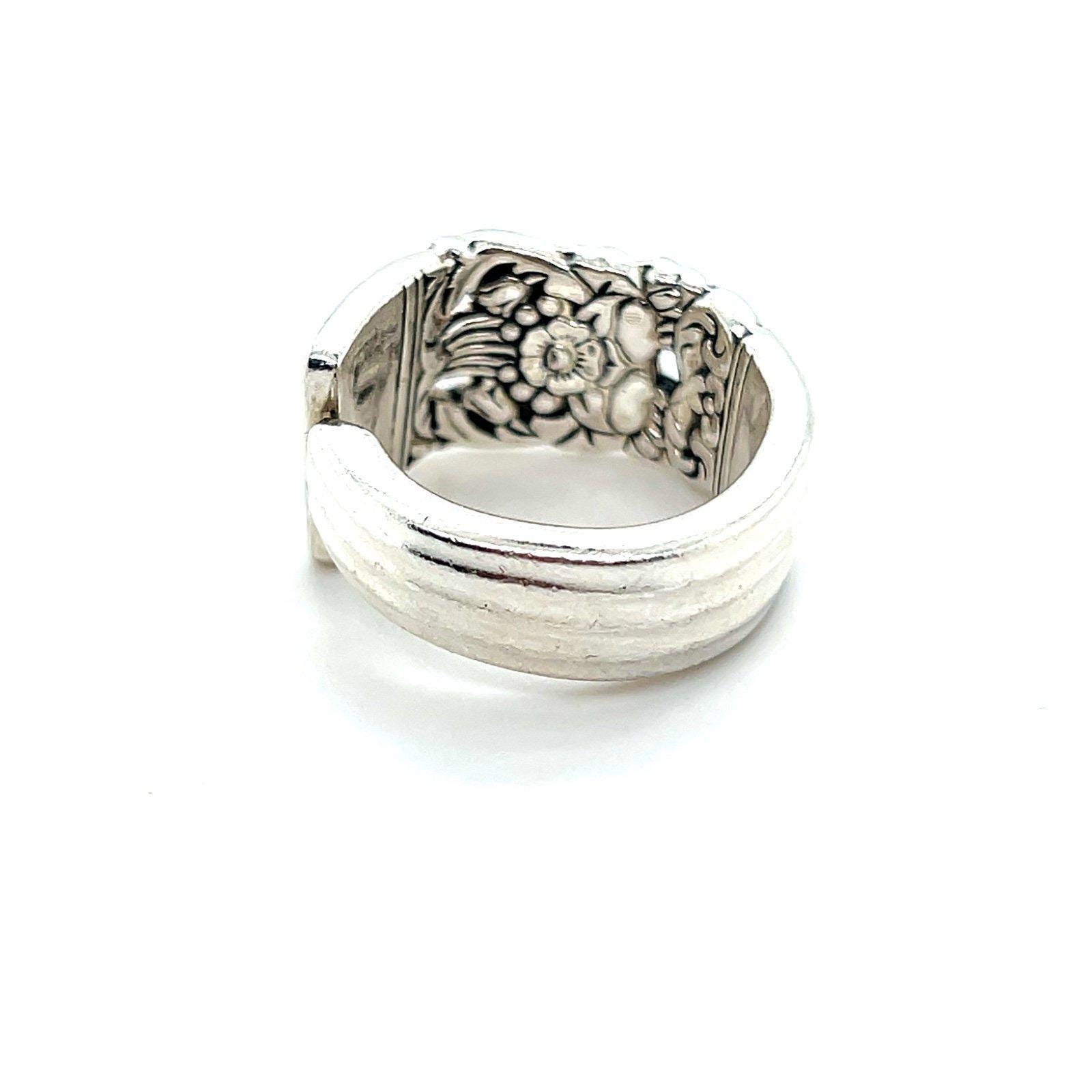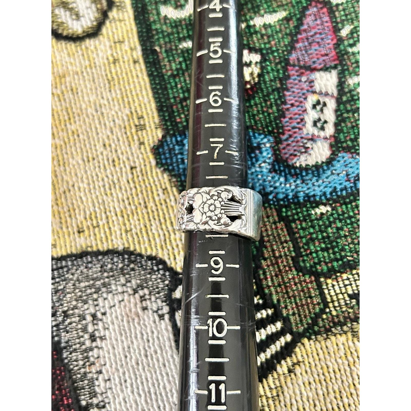Lovely Heart and Flower Design Spoon Ring Size 8 Preowned