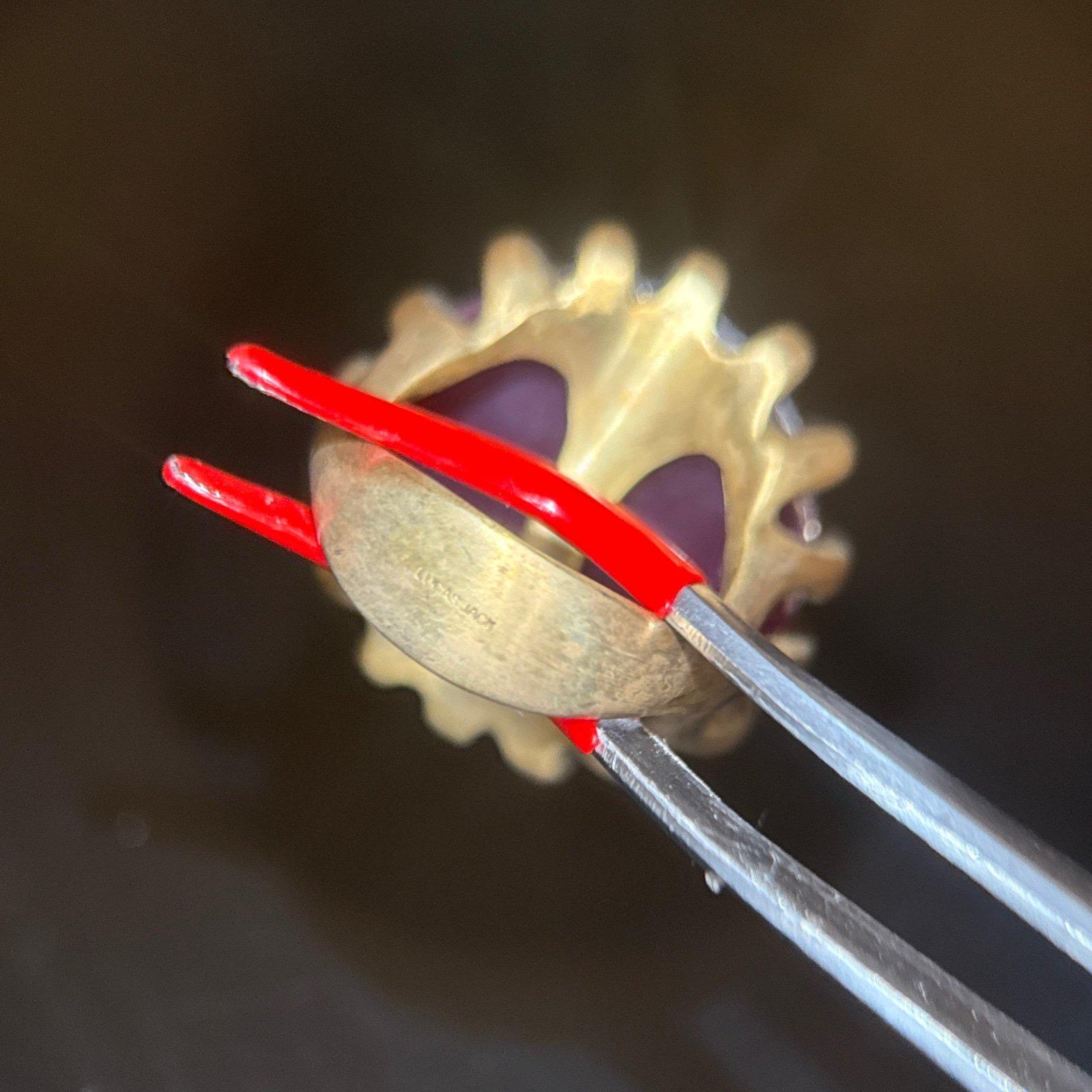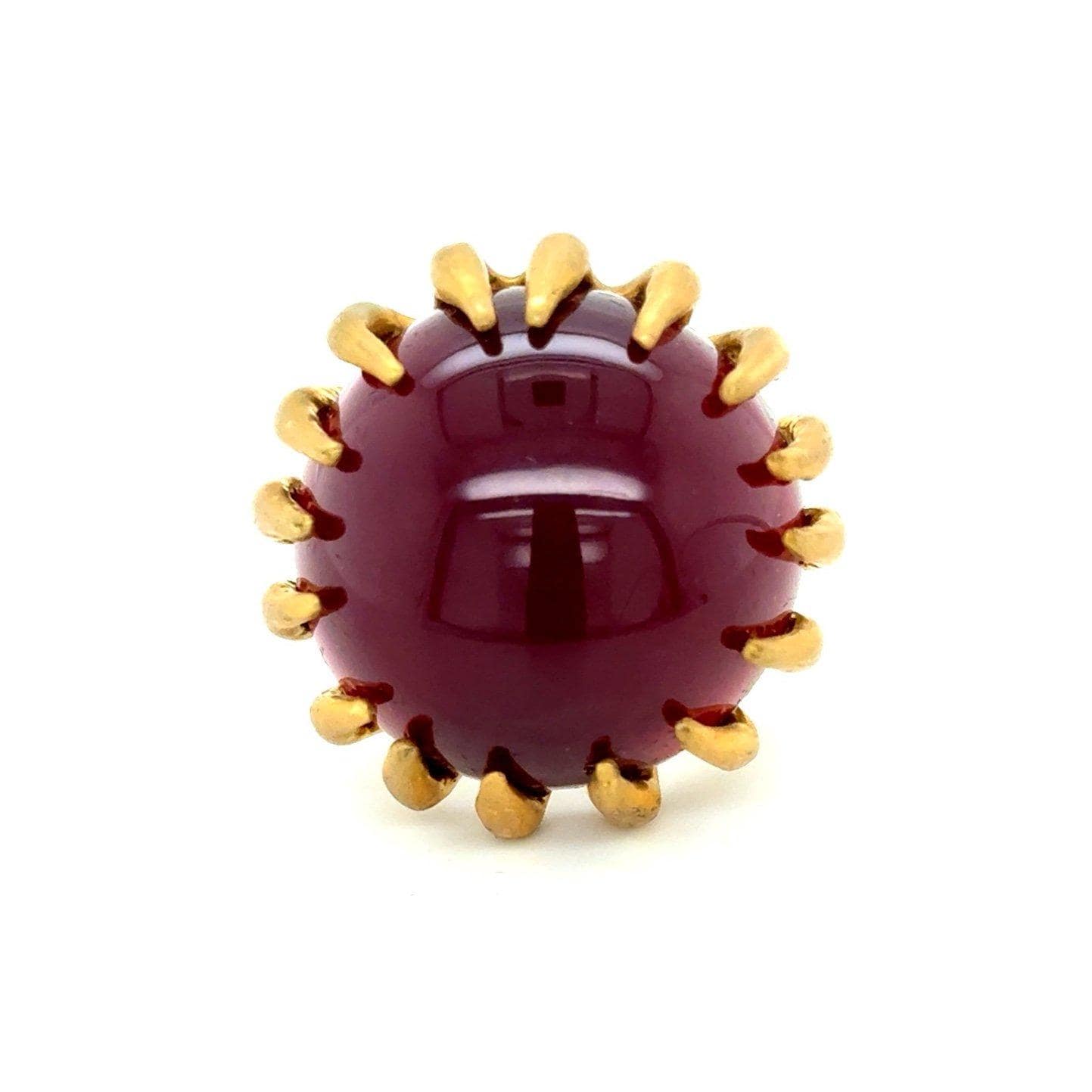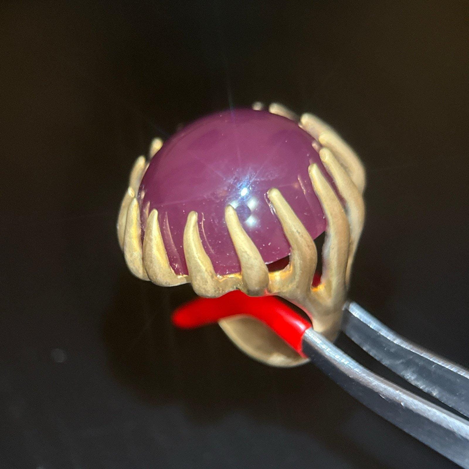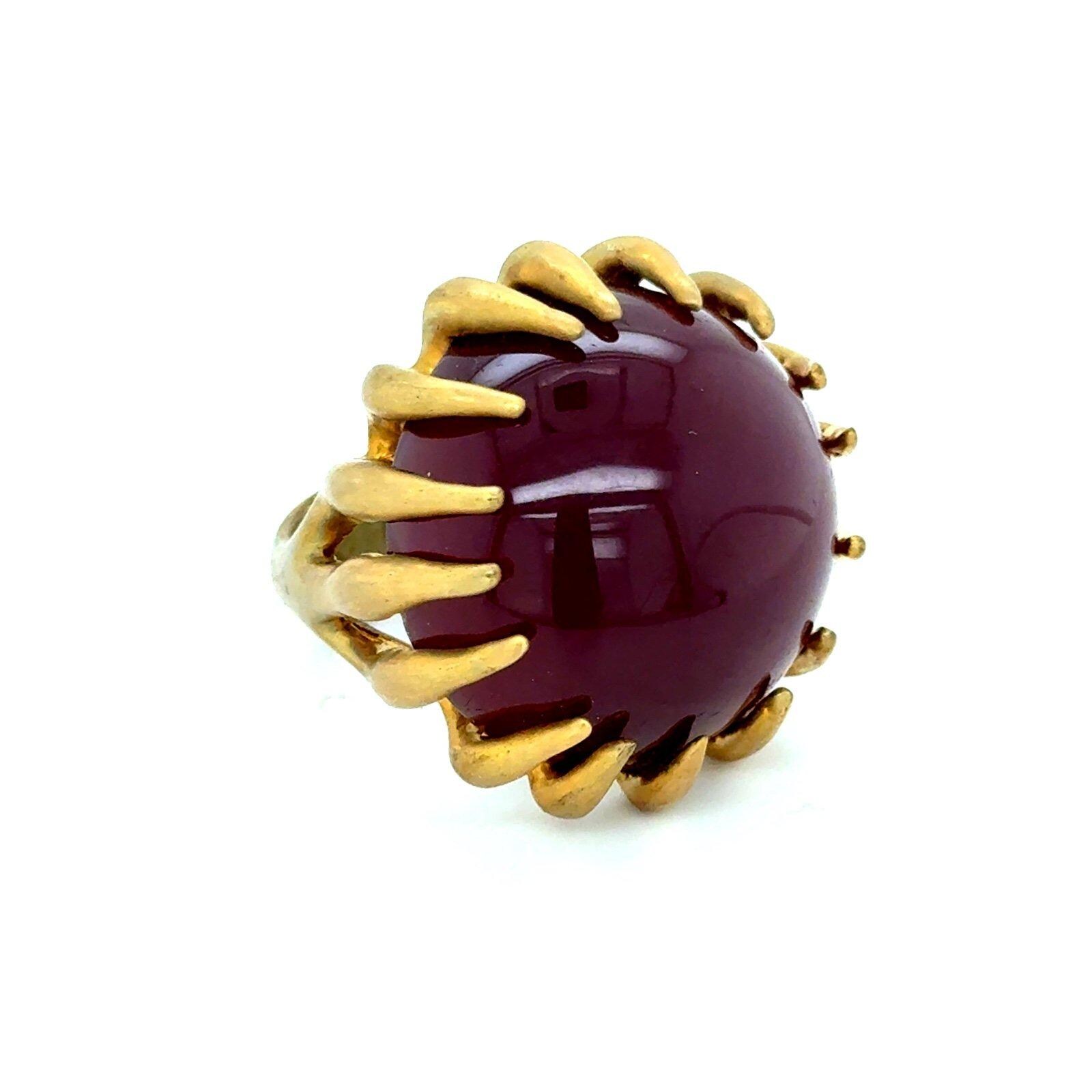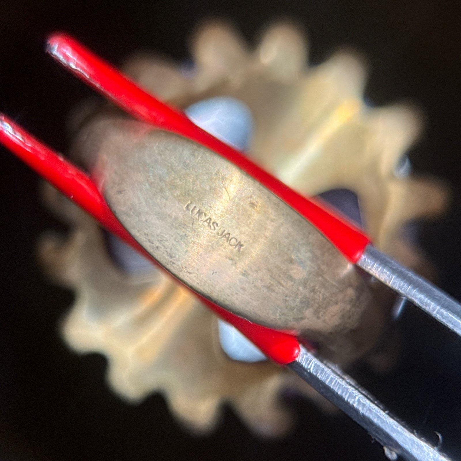 Another cool and unique pieceSigned Lucas JackLarge Red Cabuchon stoneRing is a size 8Preowned