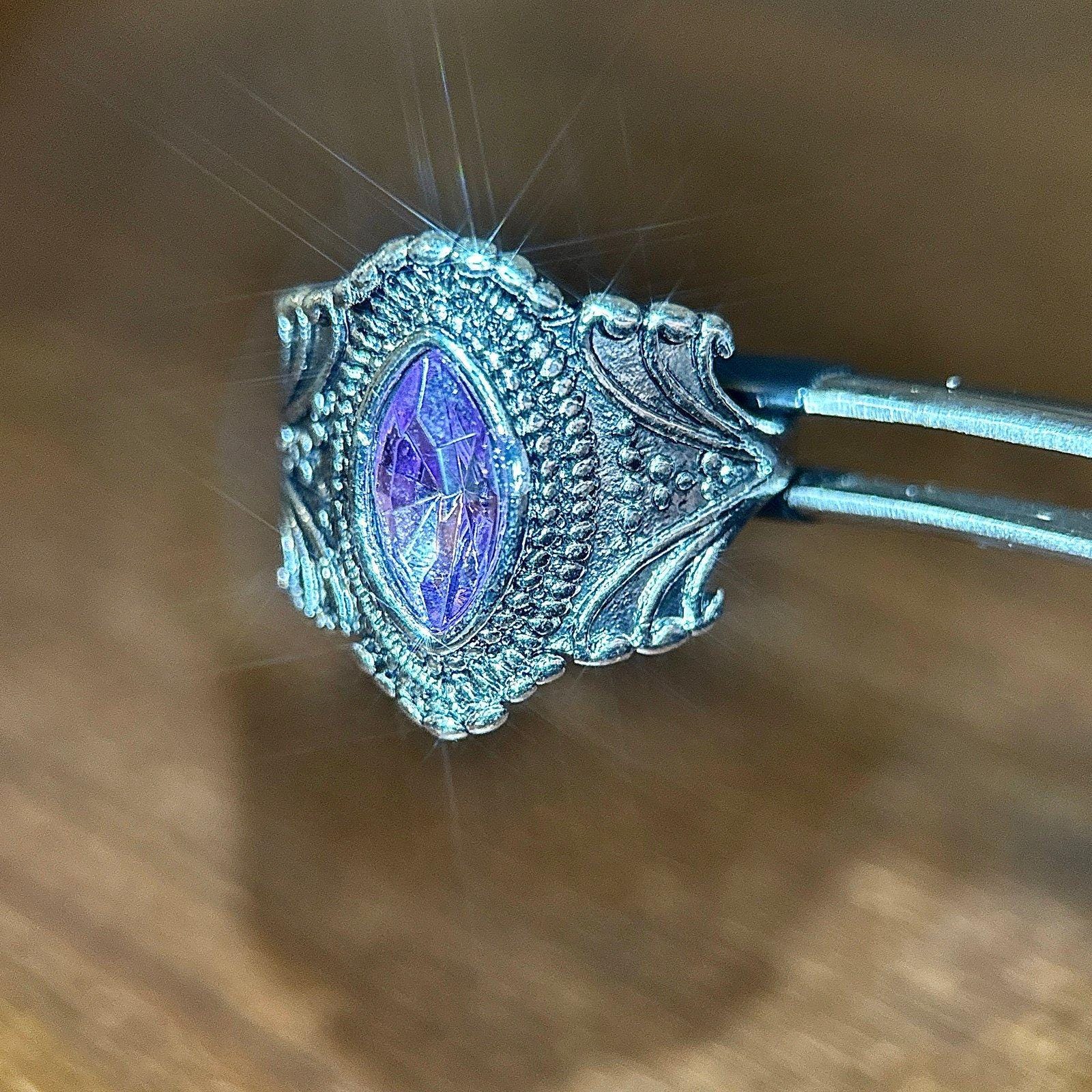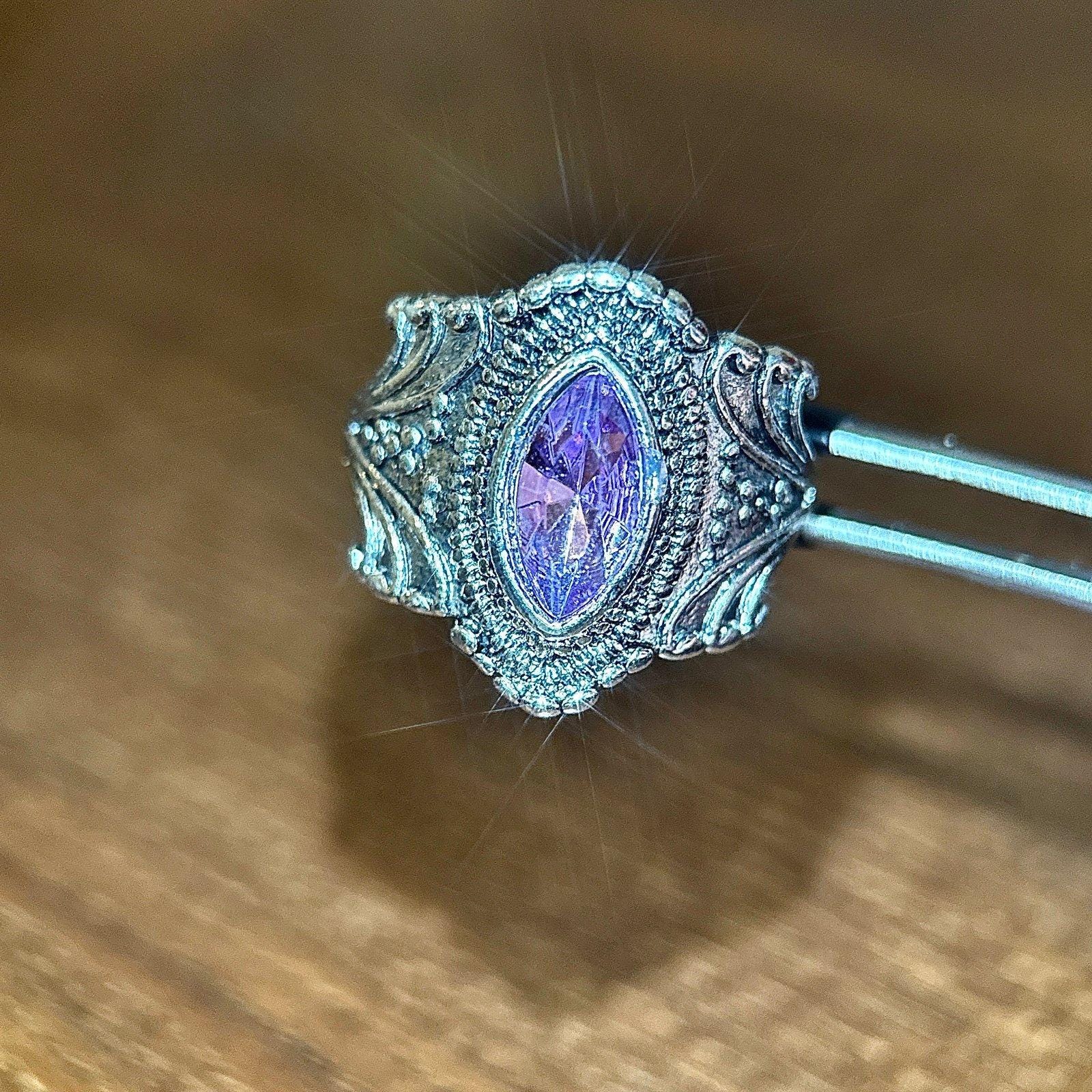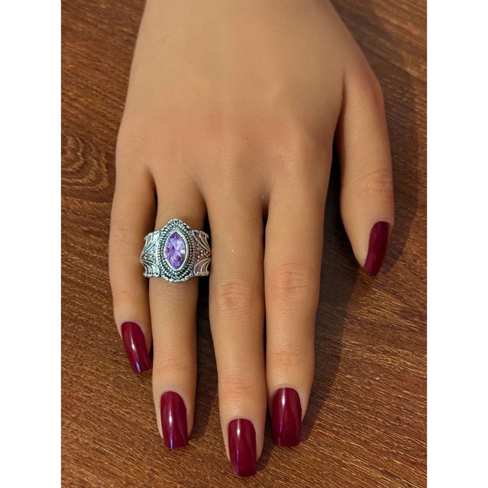 Marquis Cut Purple Stone Ring Silver plated Excellent condition Size 10