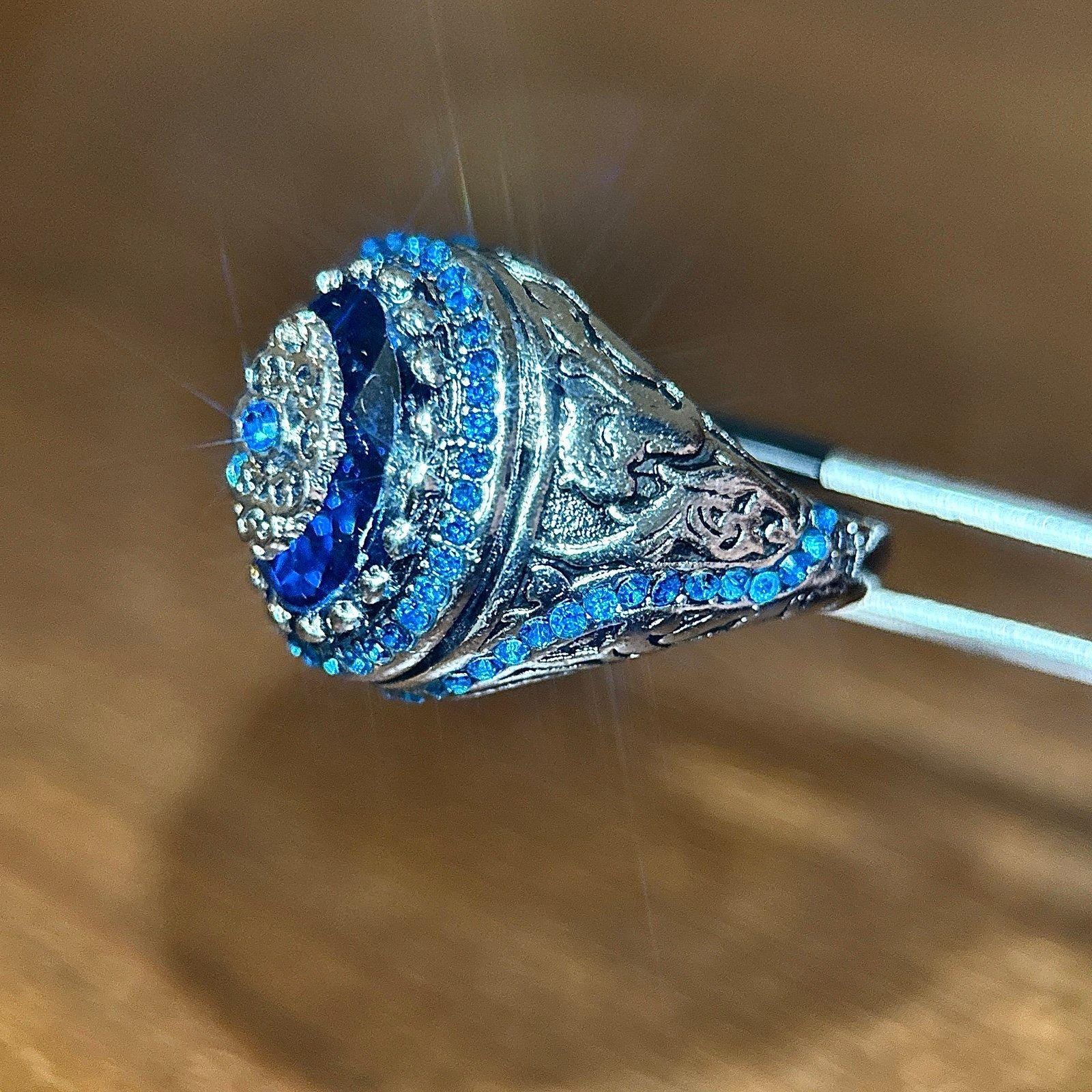 Silver Multi Blue Stones Ring