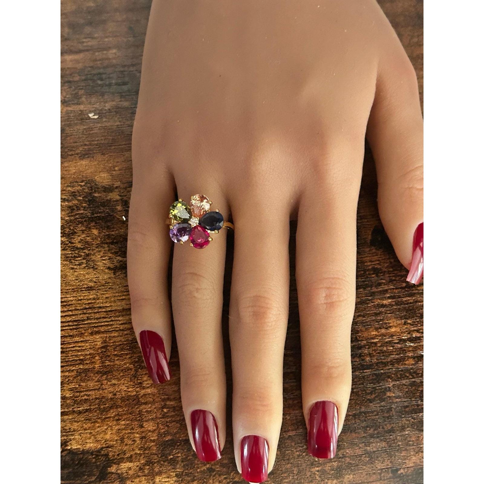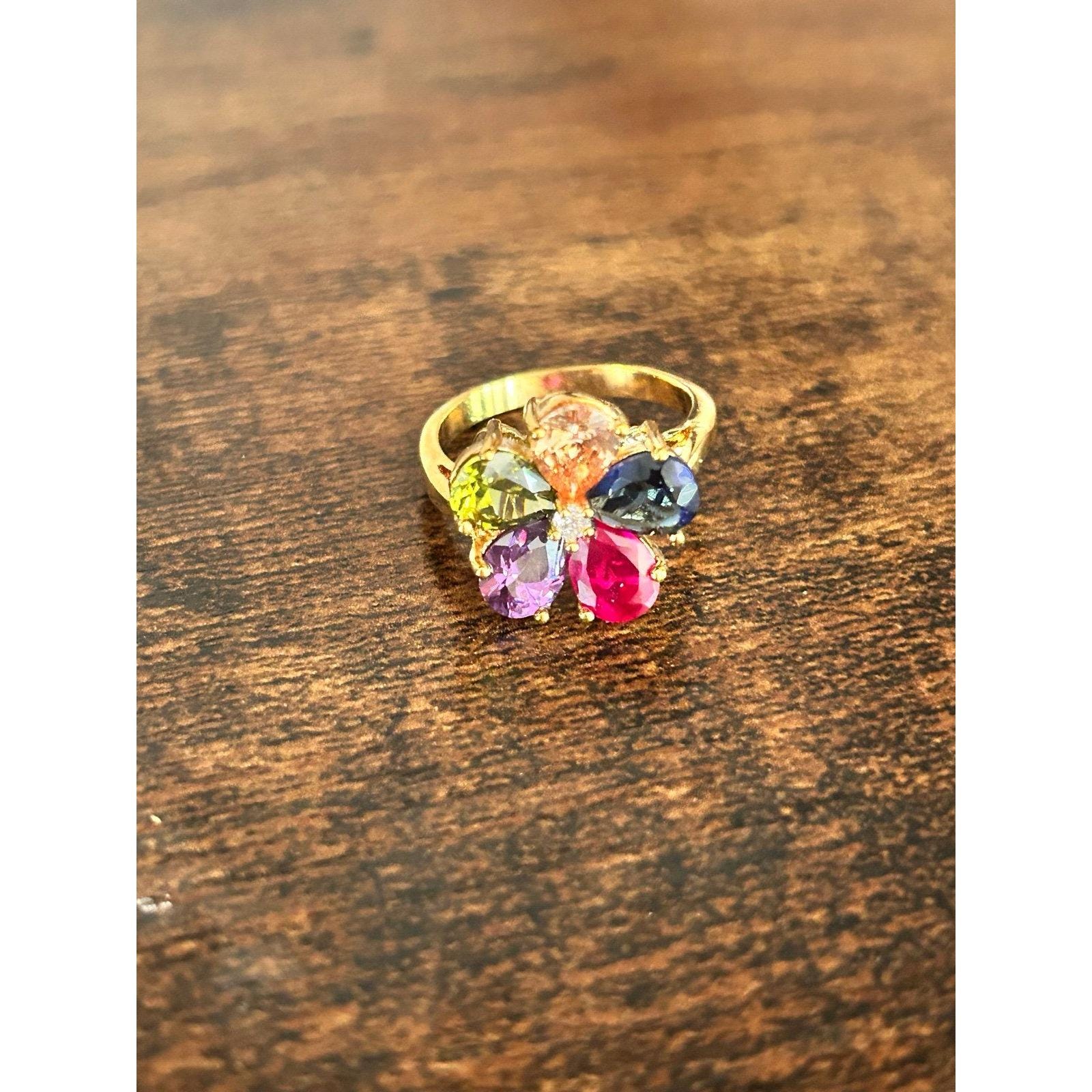 Gold color Multicolor stones Not real gold , not real stones Sz 9 Excellent condition