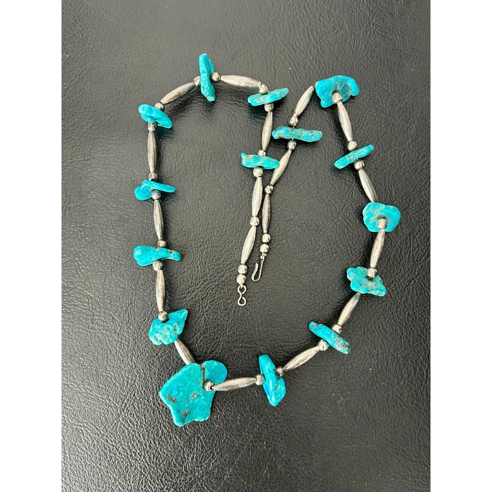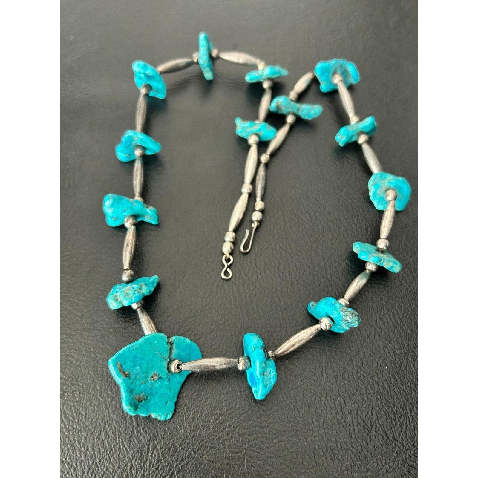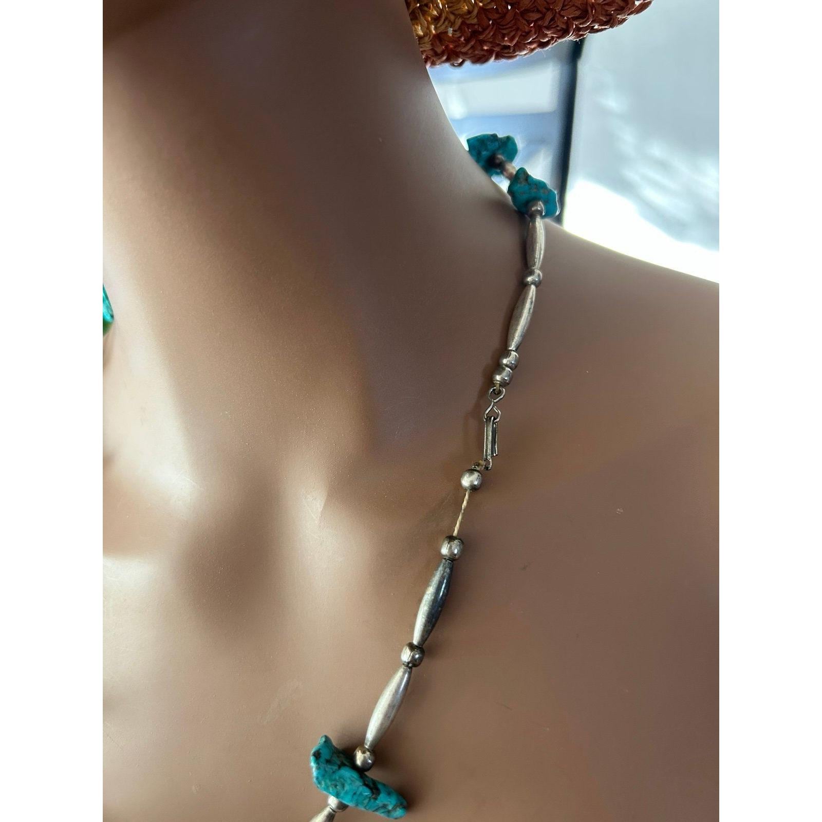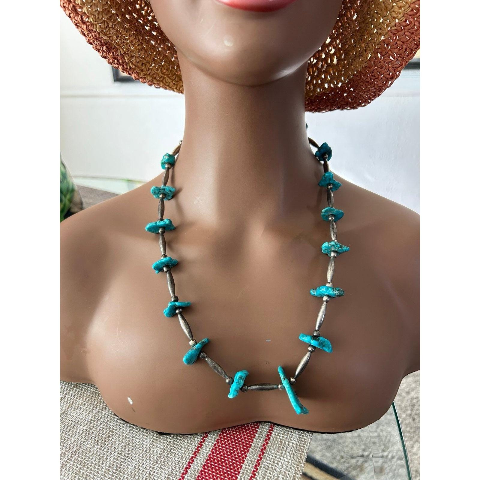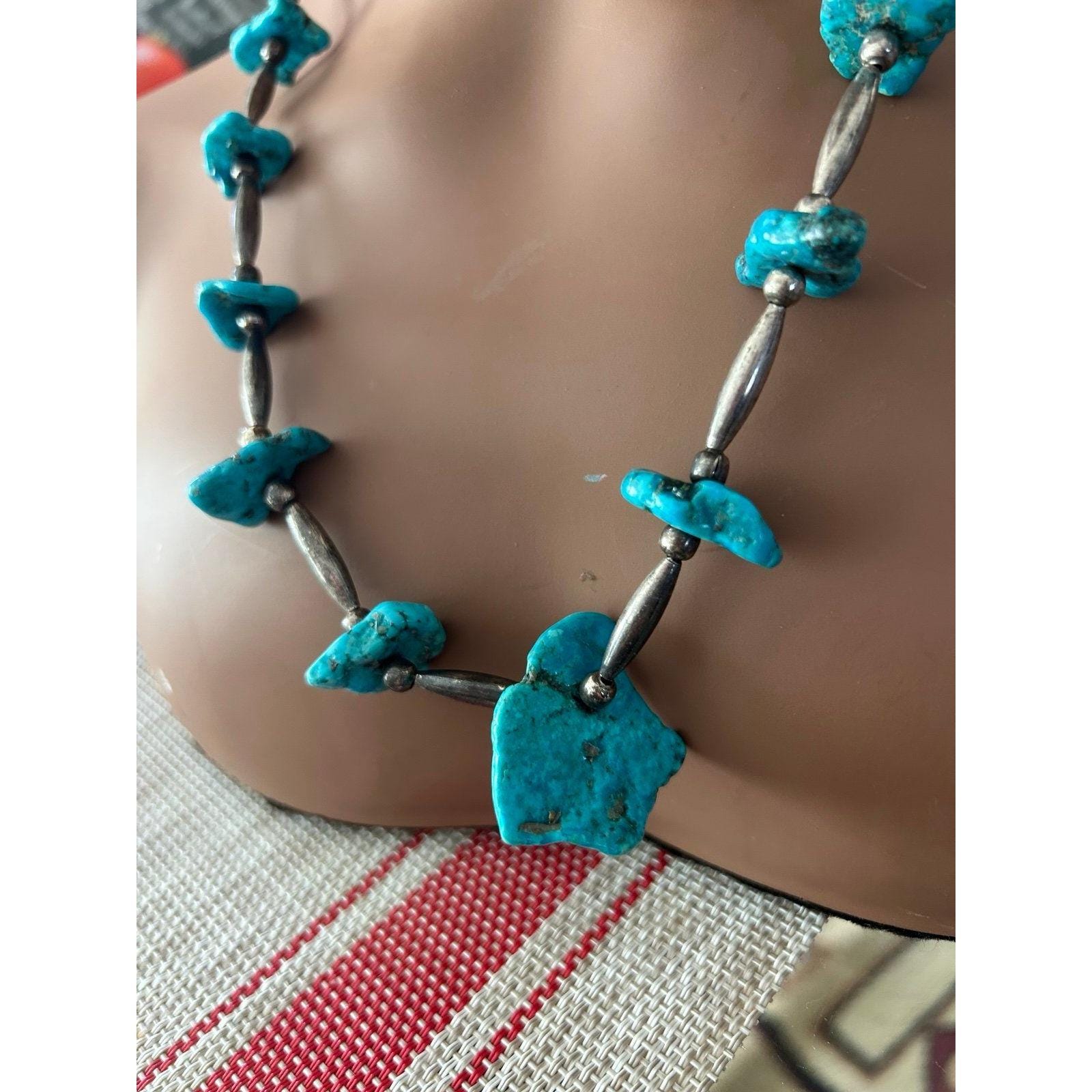 Gorgeous piece Silver turquoise necklace Measures 24” L May need cleaning