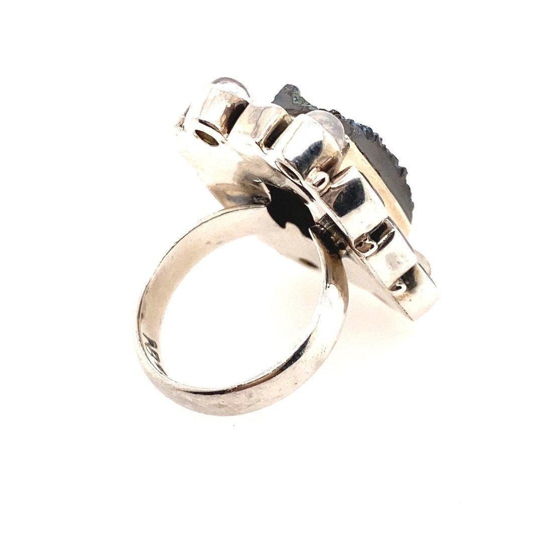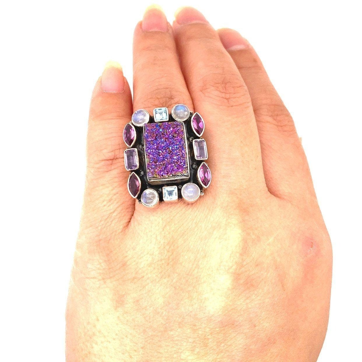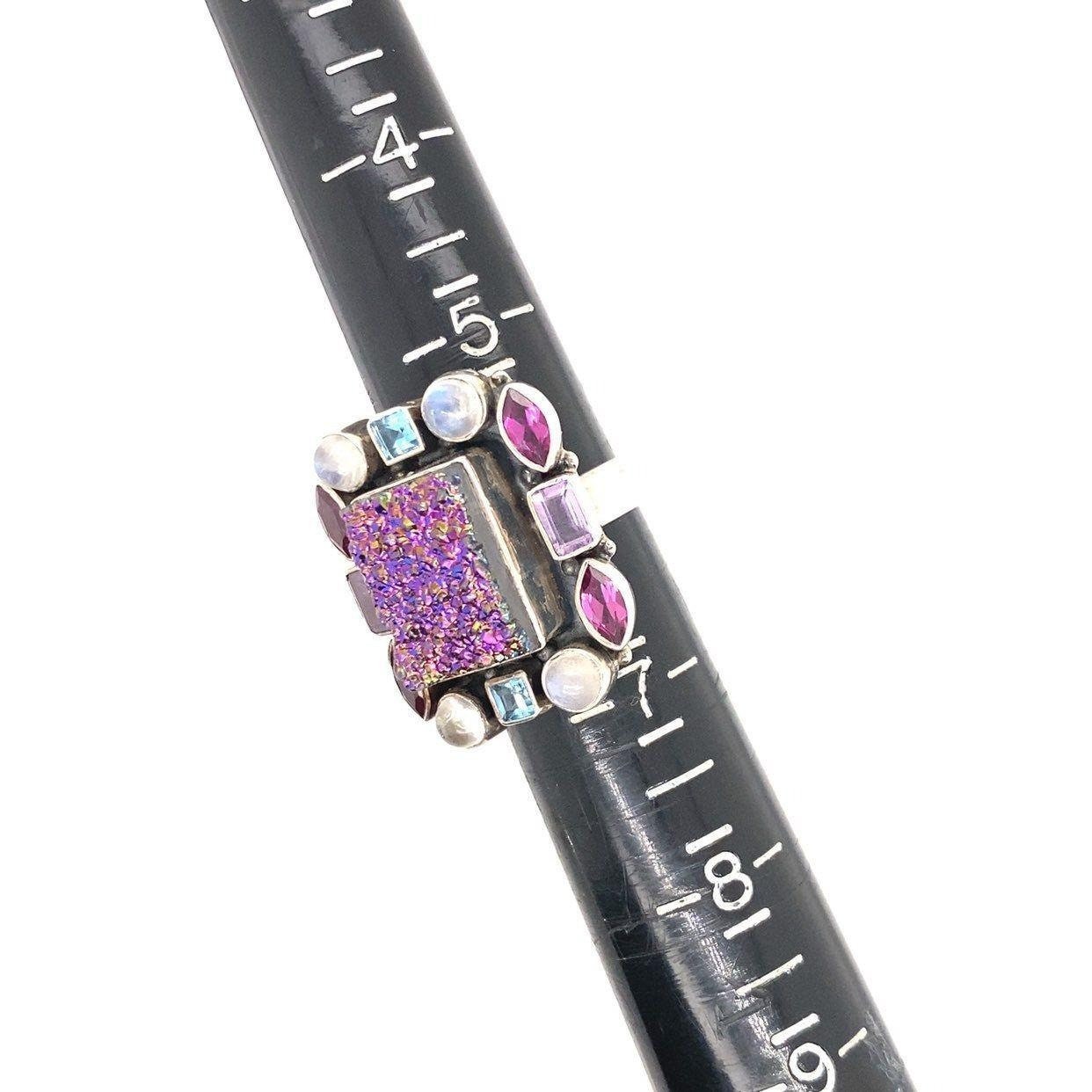 Stunning Nicky Butler 925 Square Druzy Moonstone, Topaz and Amethysts Ring . This is a great statement piece.