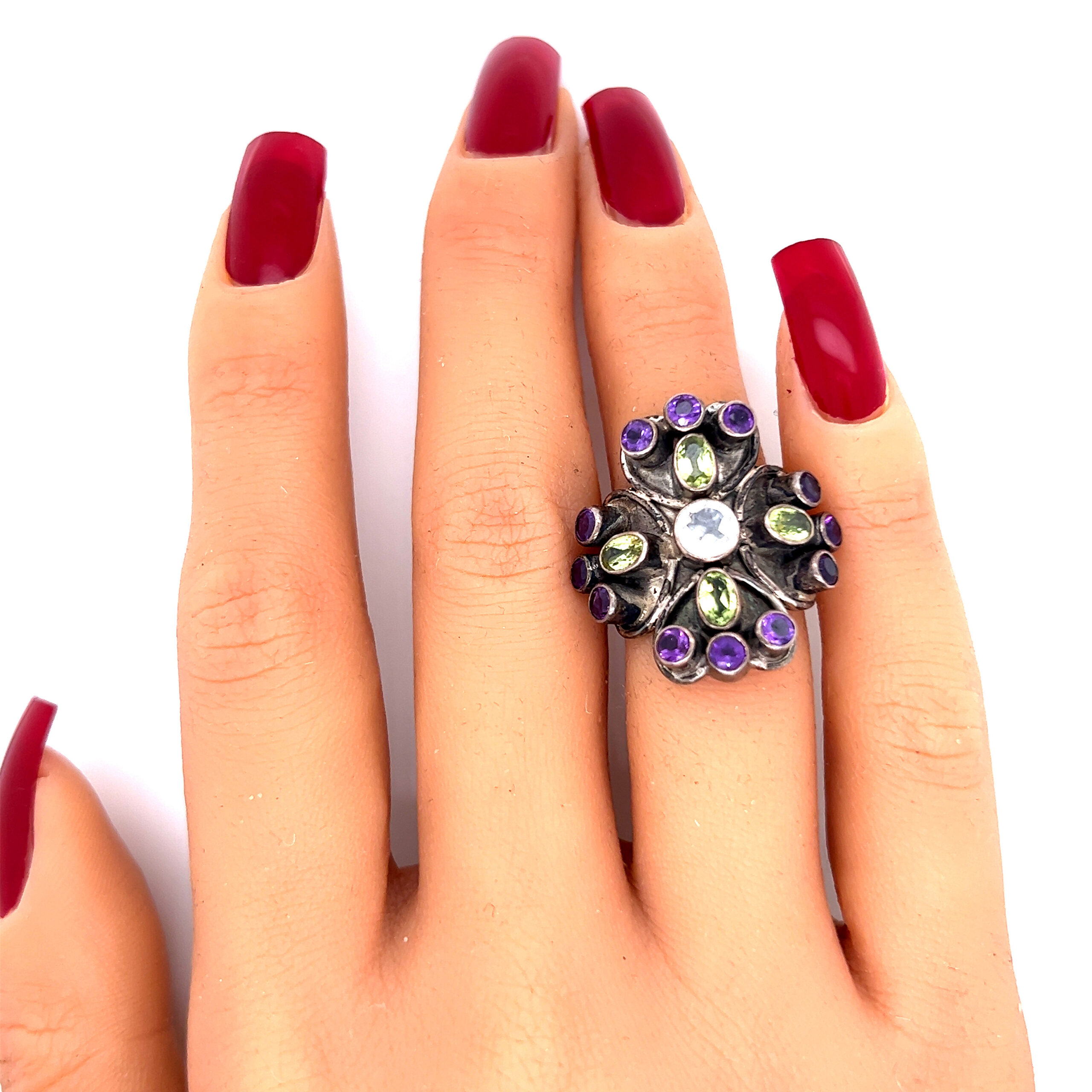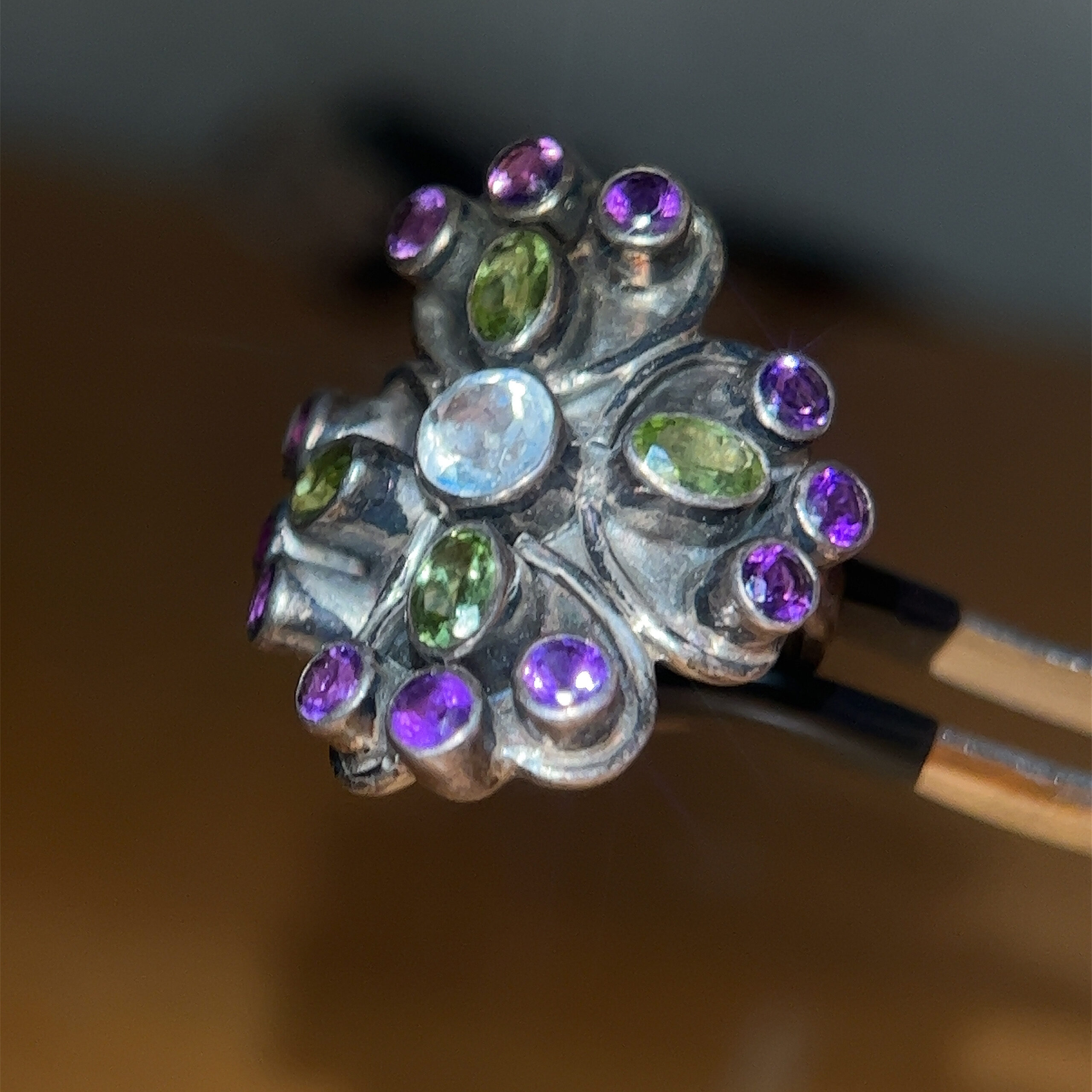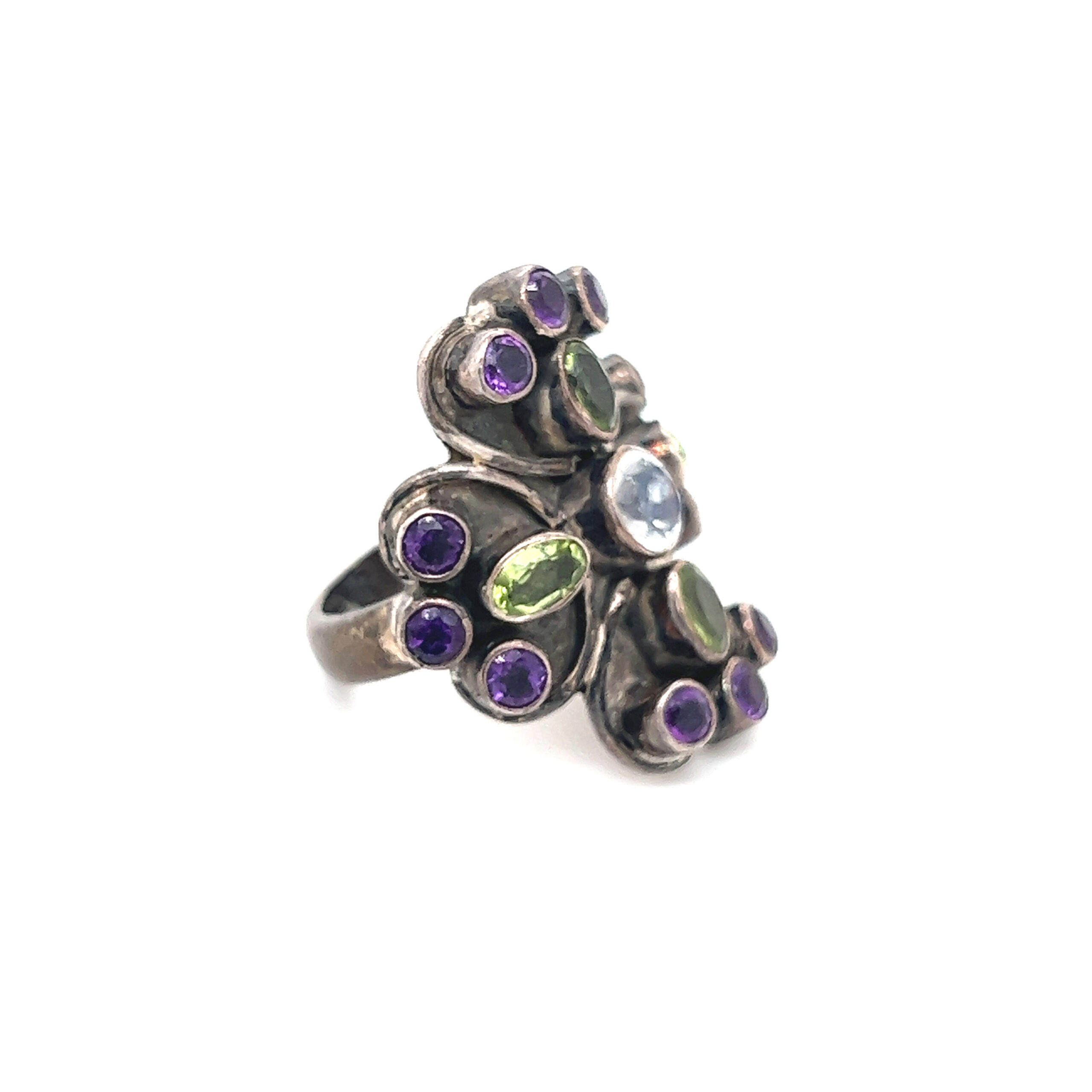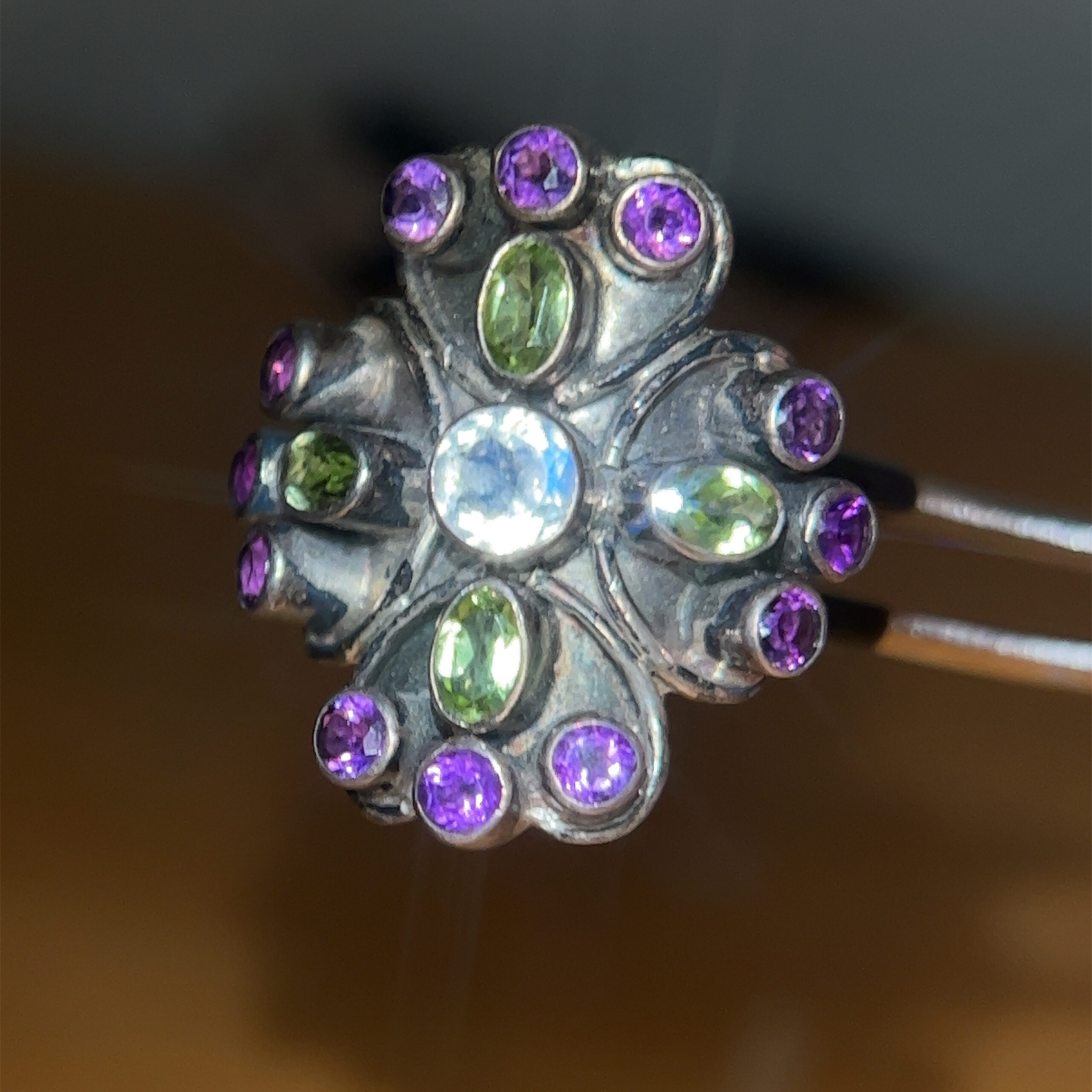 Stunning Nicky Butler 925 White Sapphire, Amethyst & Peridot Ring . This is a great statement piece.