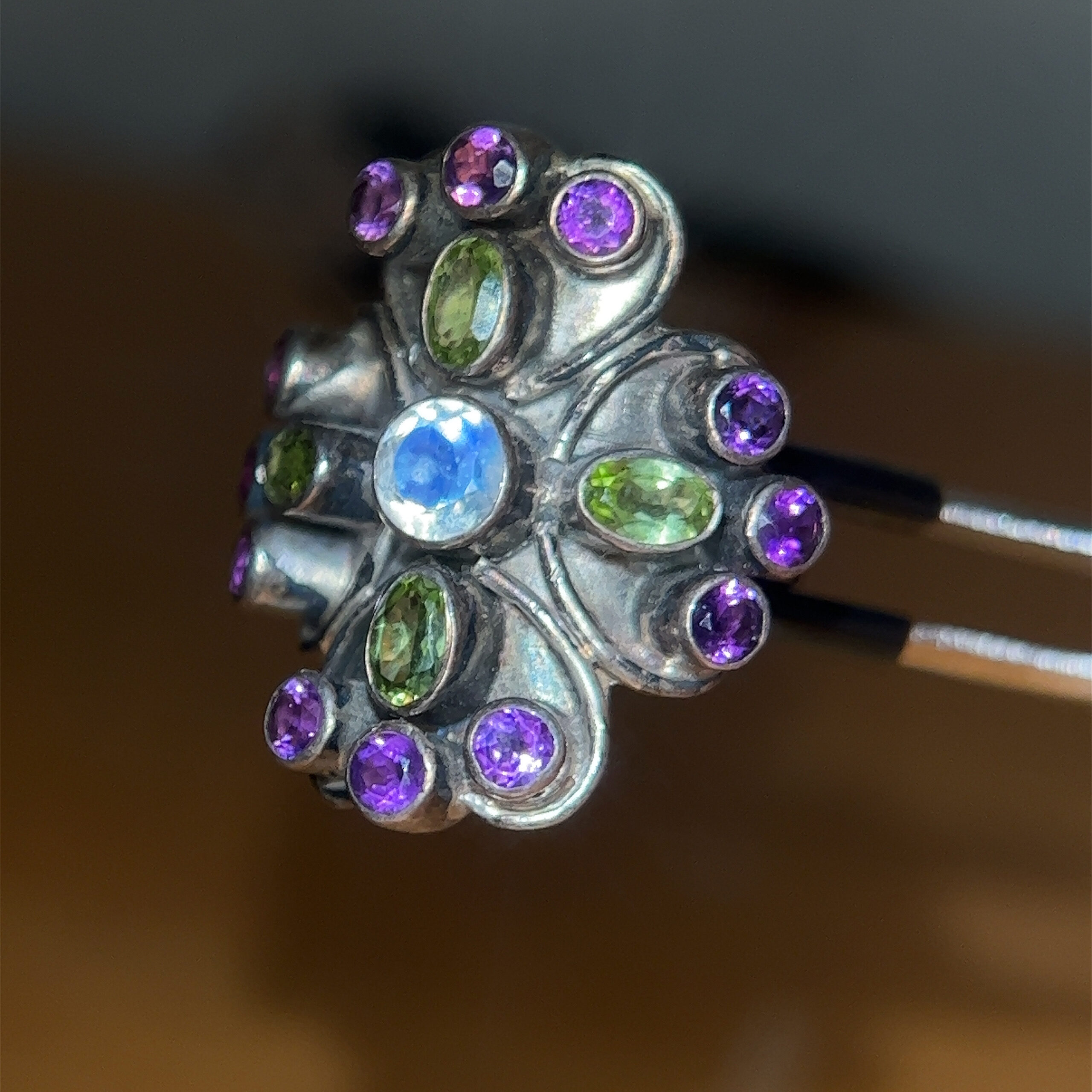 Gems: White Sapphire, Amethyst & Peridot (not 100% sure)