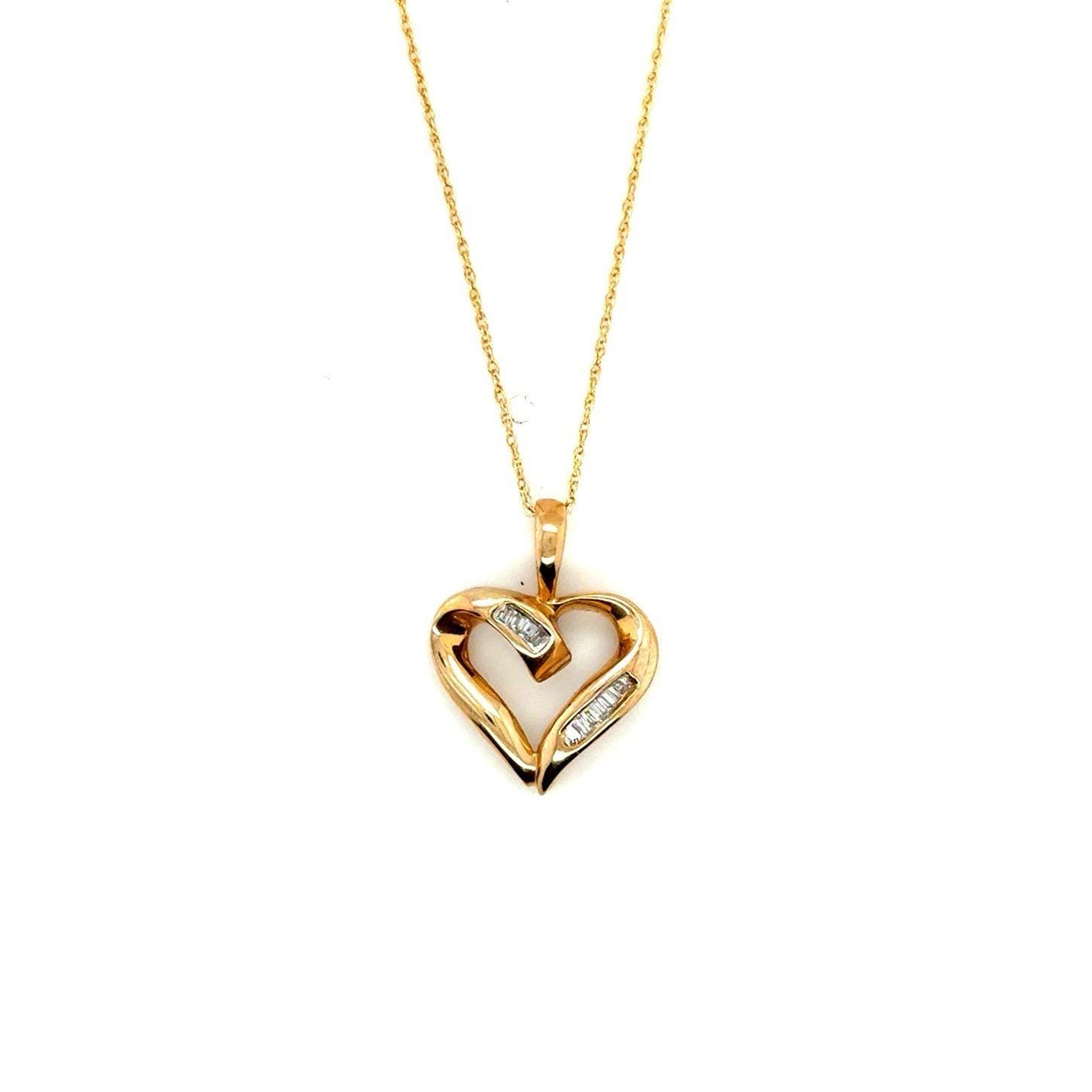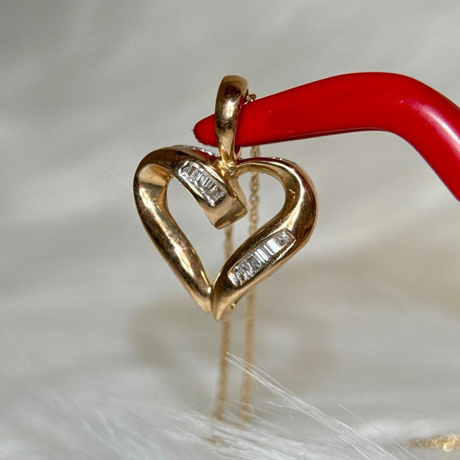 Real 10k Yellow Gold Baguette Heart Pendant Necklace , REAL GOLD, NOT GOLD PLATED OR GOLD FILLED.