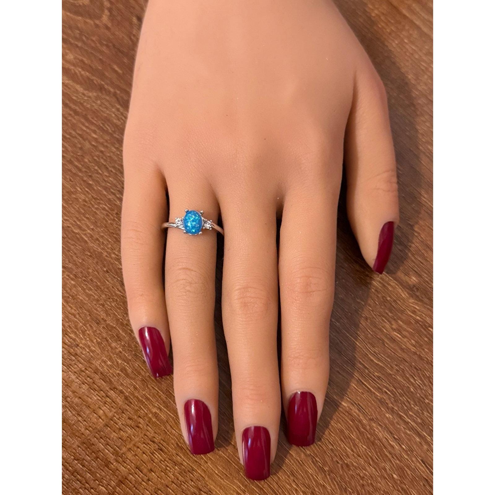 Opal/Cz Ring Not real silver Excellent condition Size 8