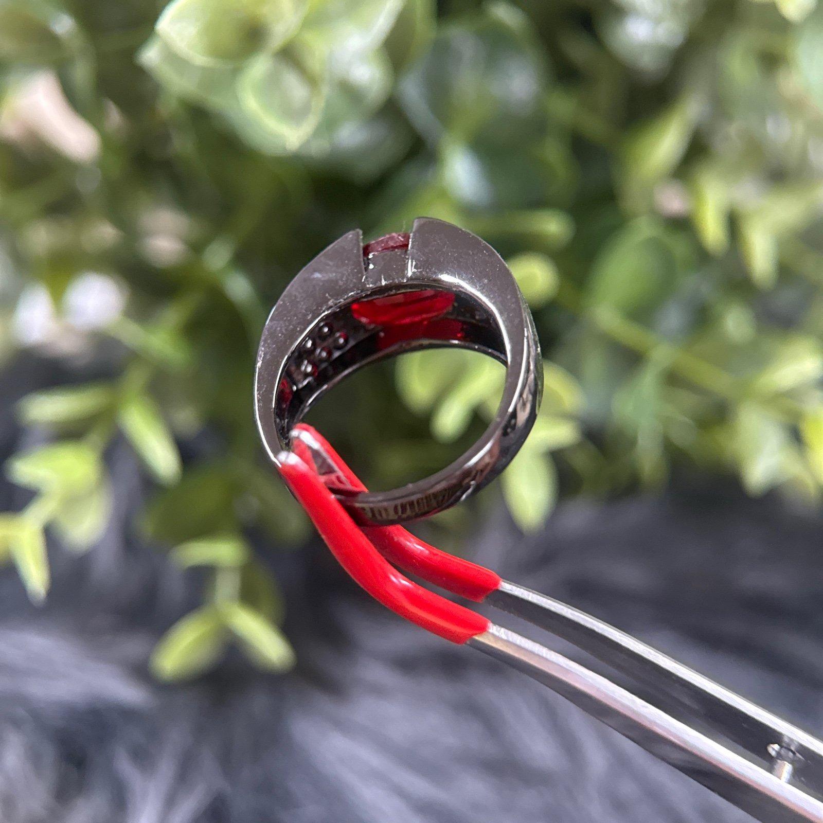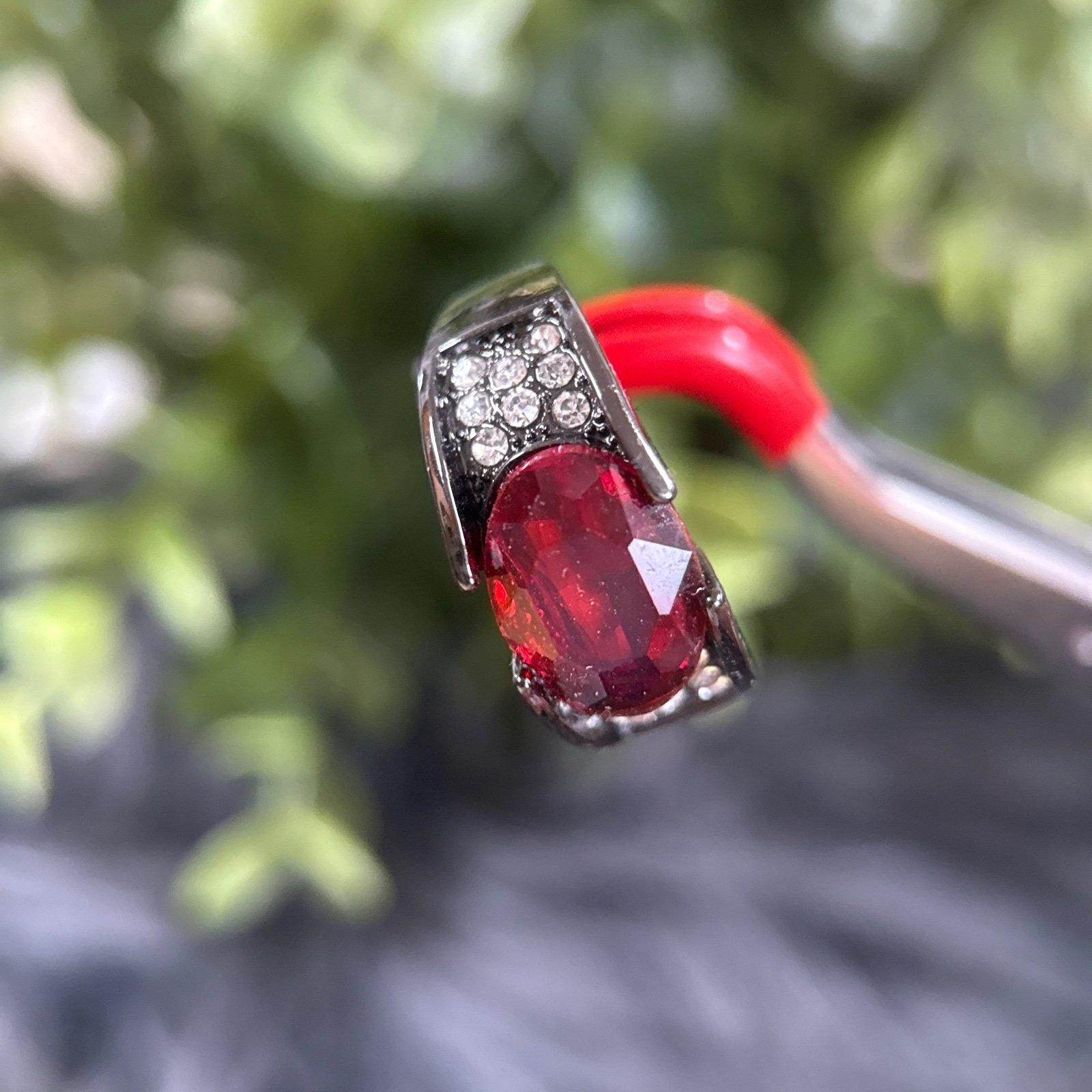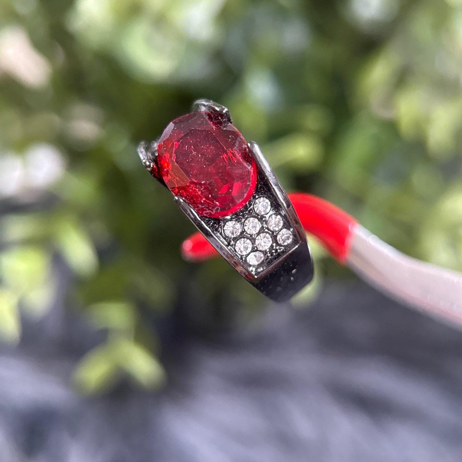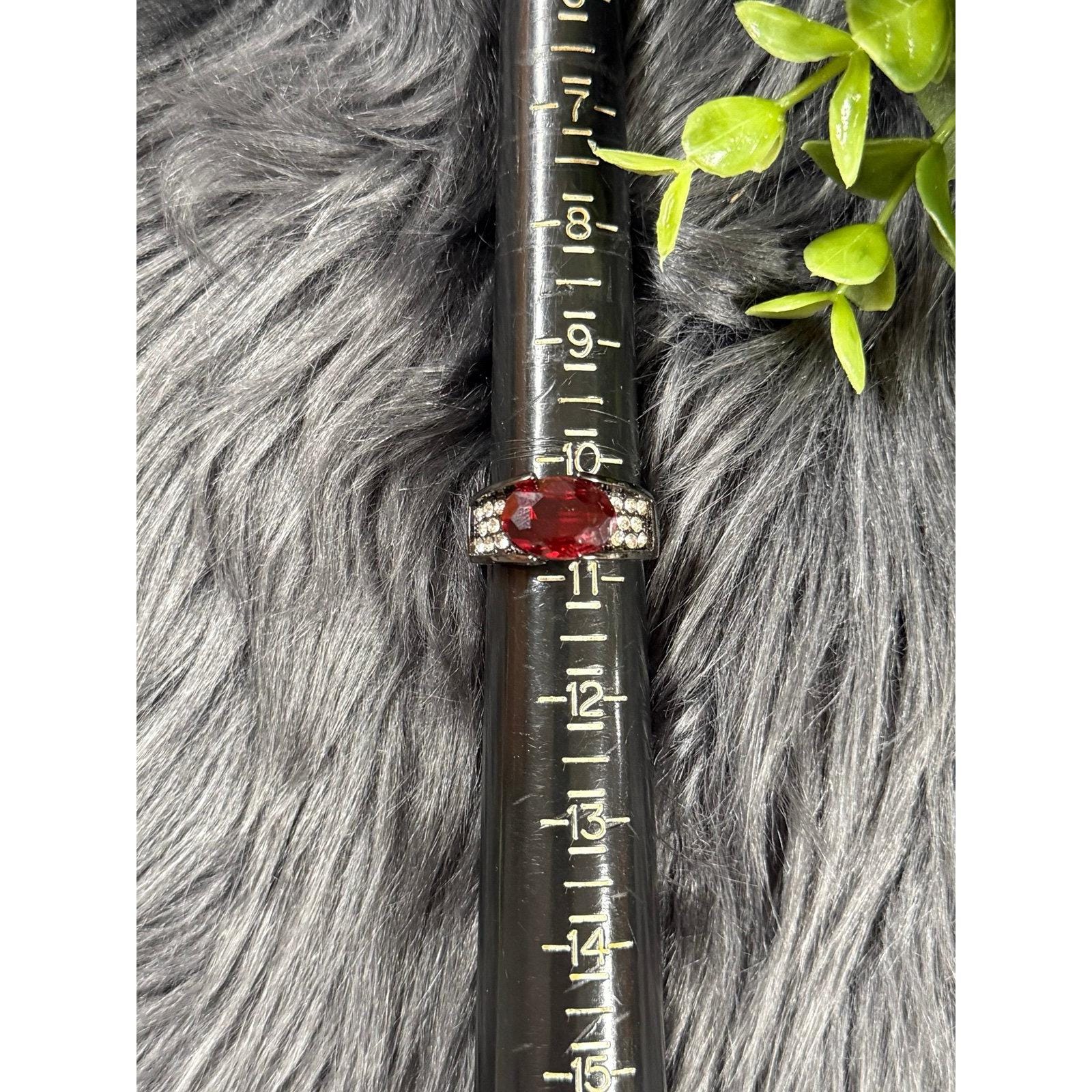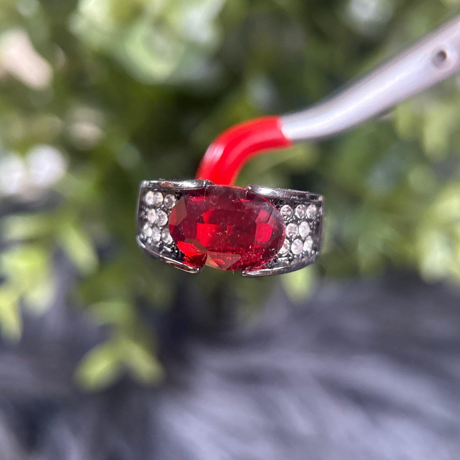 *Oval Shaped faux garnet colored stone with rhinestones on the side ring