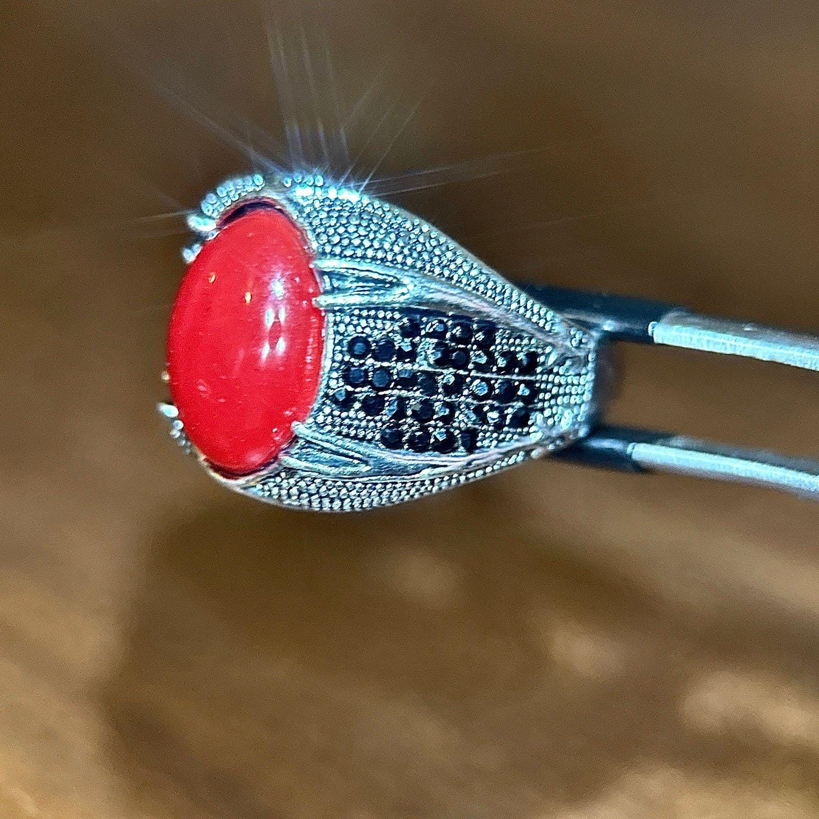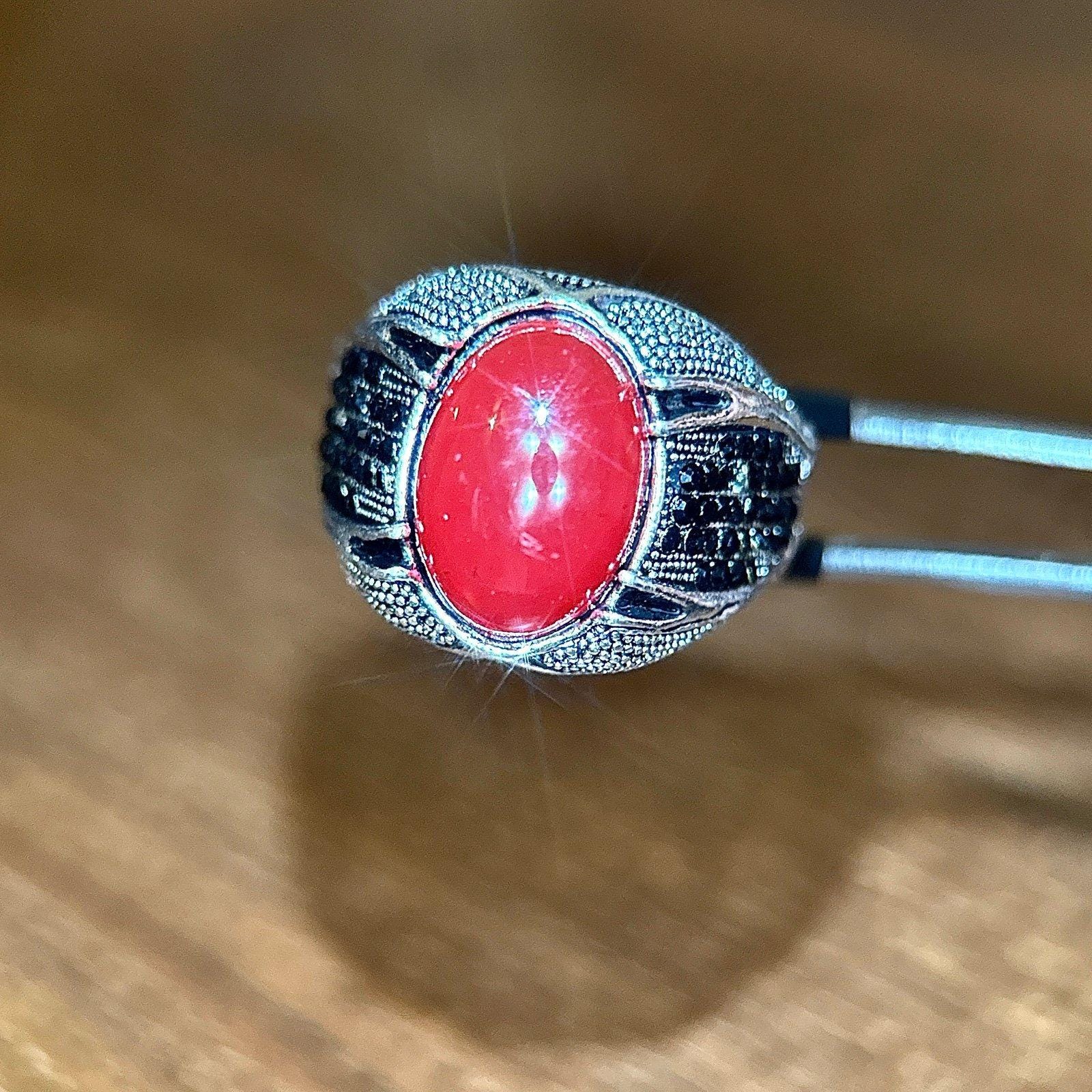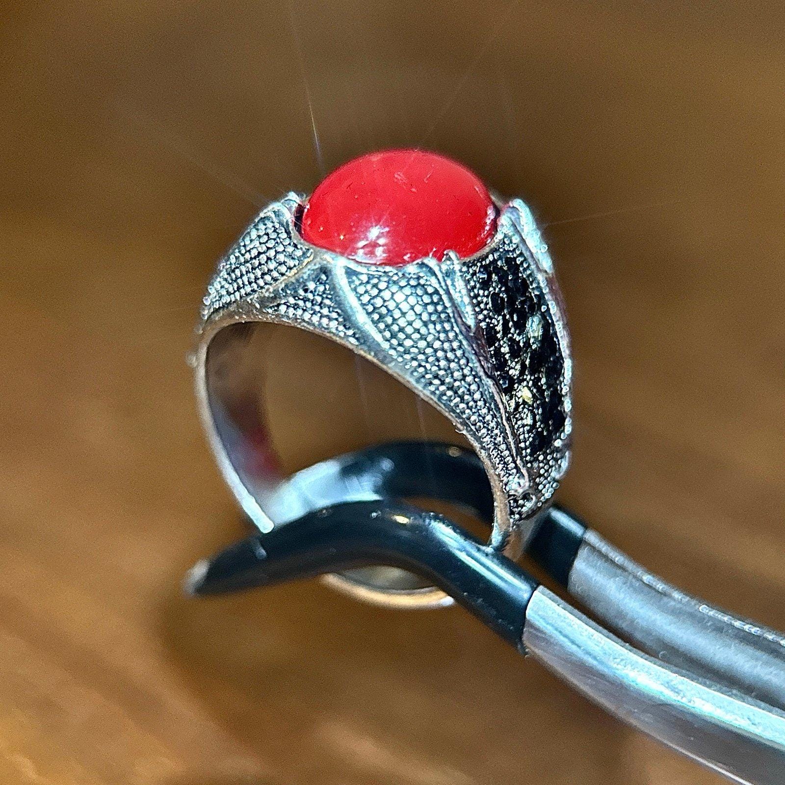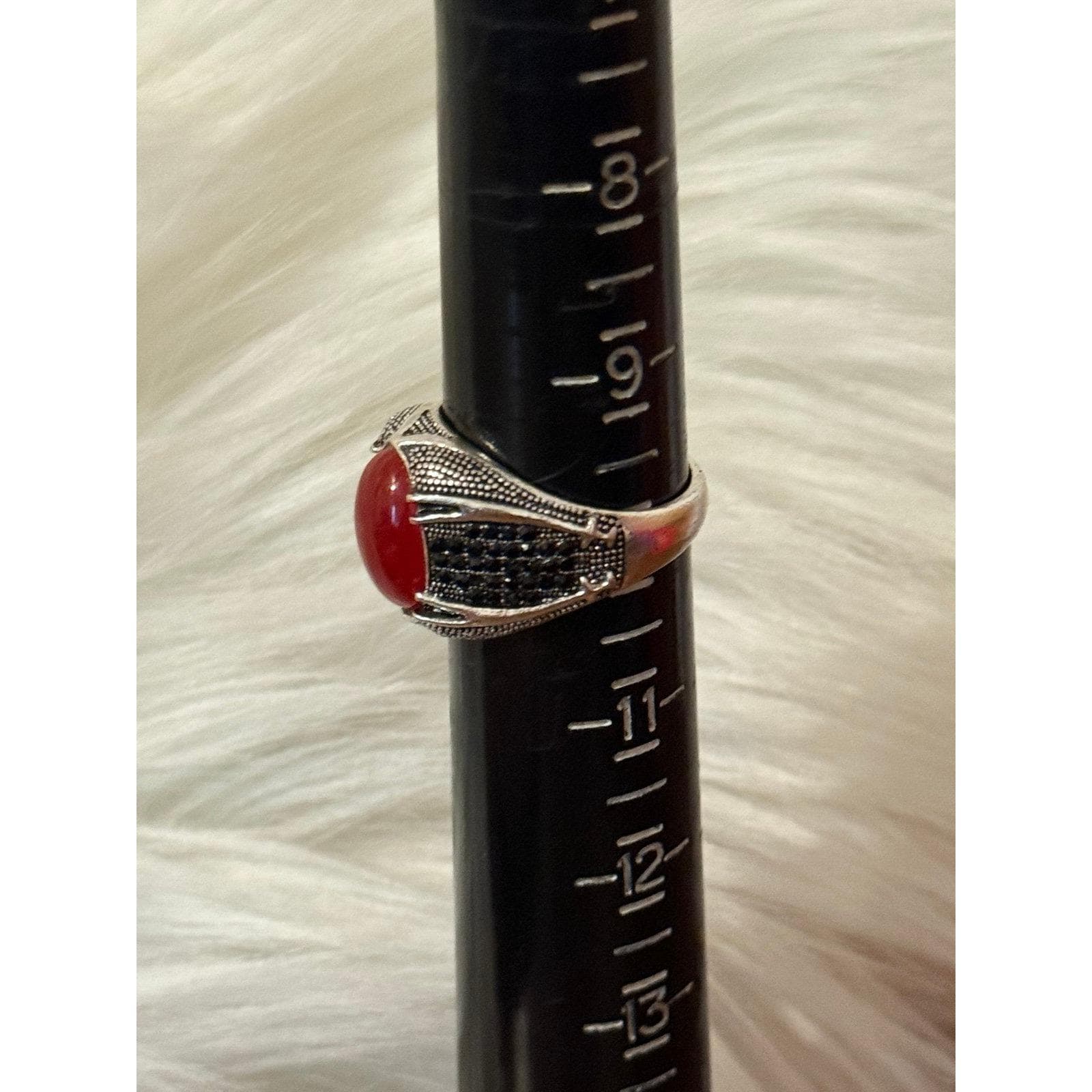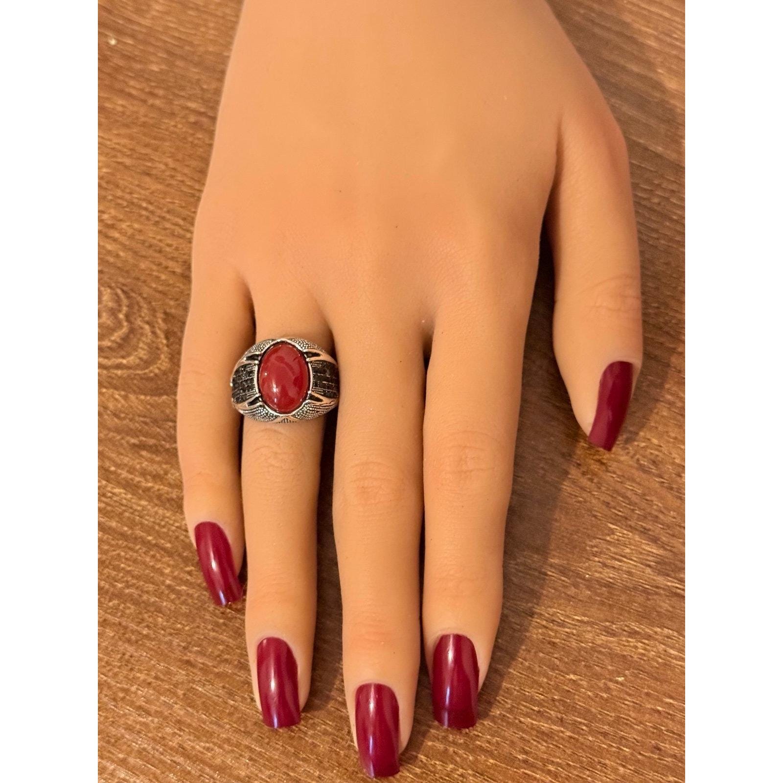 Silver Red with Small Stones RingSilver plated Excellent condition Size 10