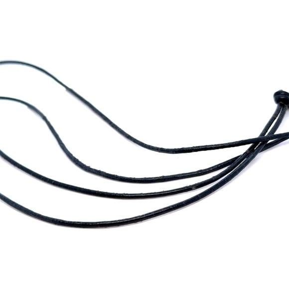 Adjustable black leather cord necklace from Pandora. Metal aglet tips add subtle shine. Simple and versatile everyday piece.