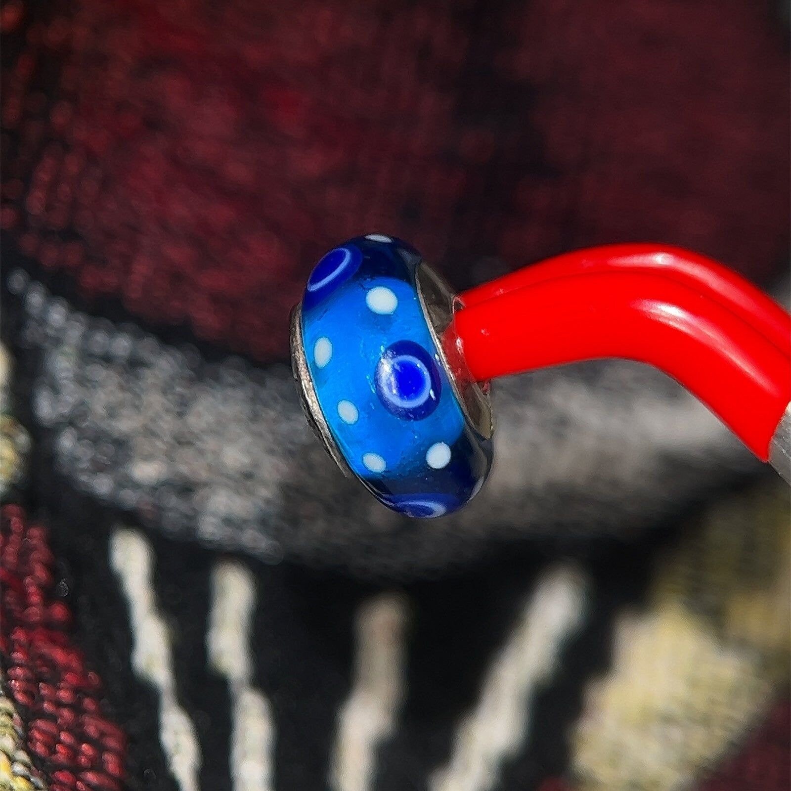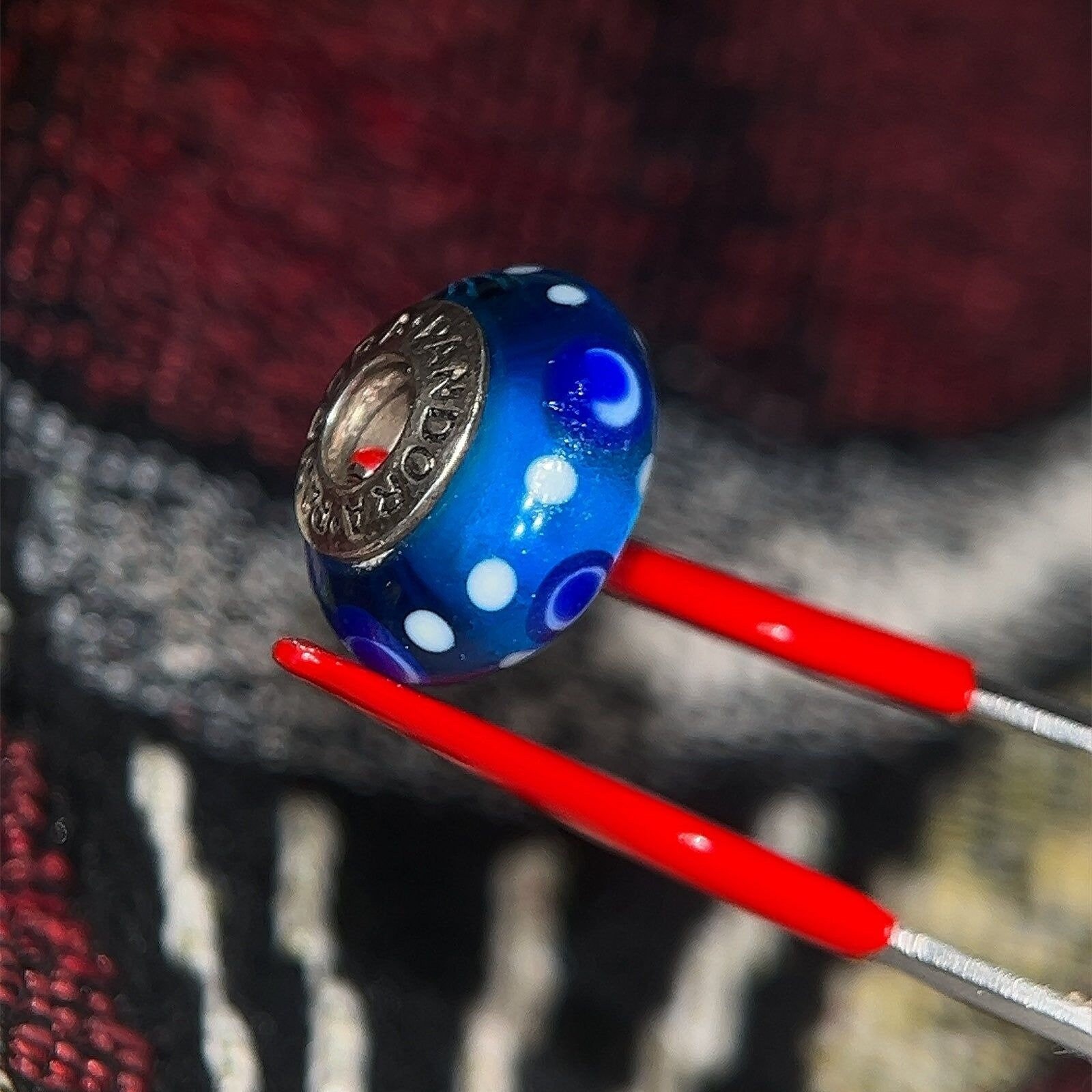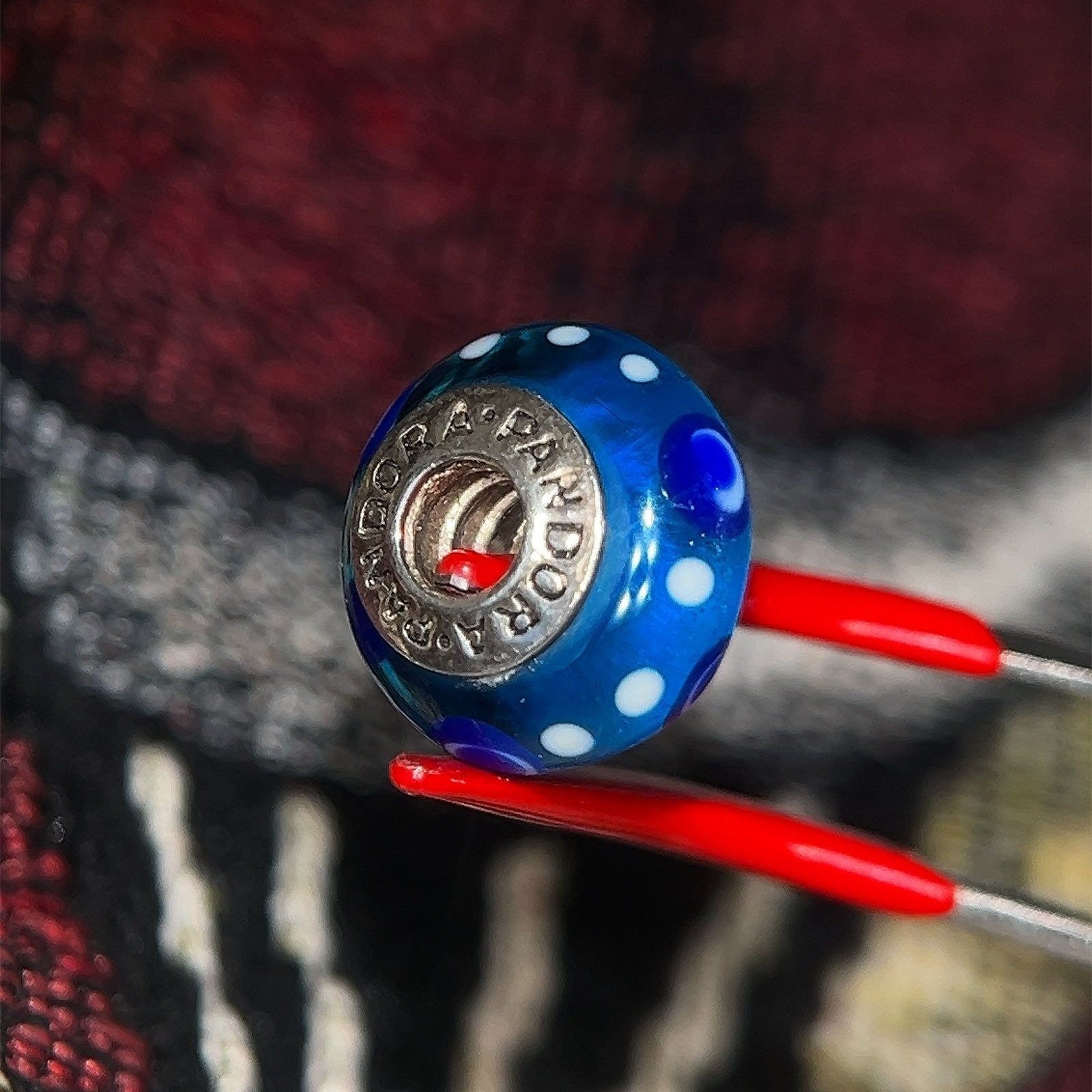 Authentic Pandora Blue Polka Dot Murano Glass Charm.
