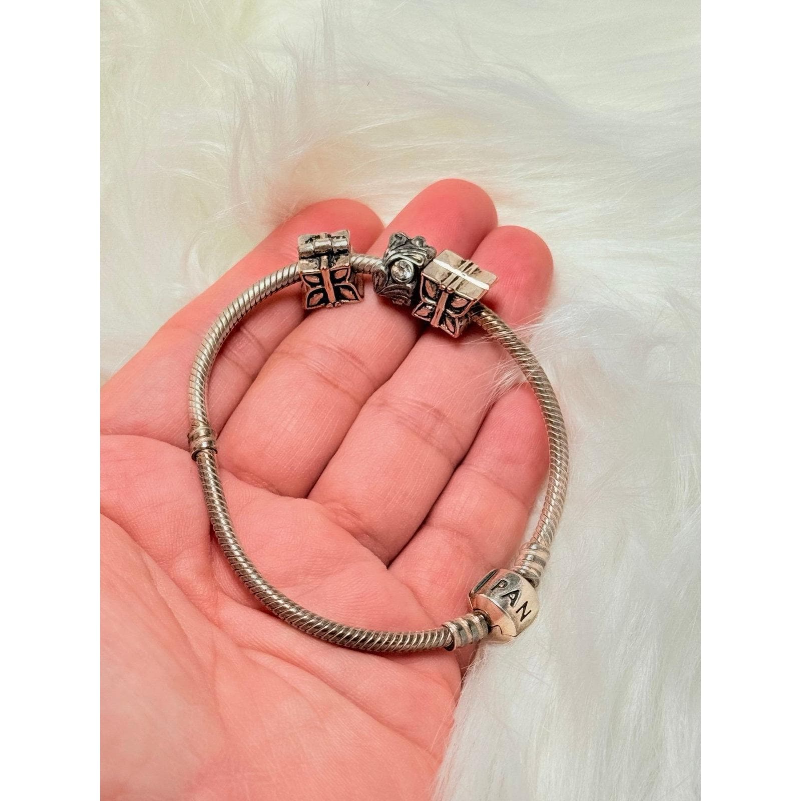 Charms are unbranded 2 butterfly clips and one Cz charm