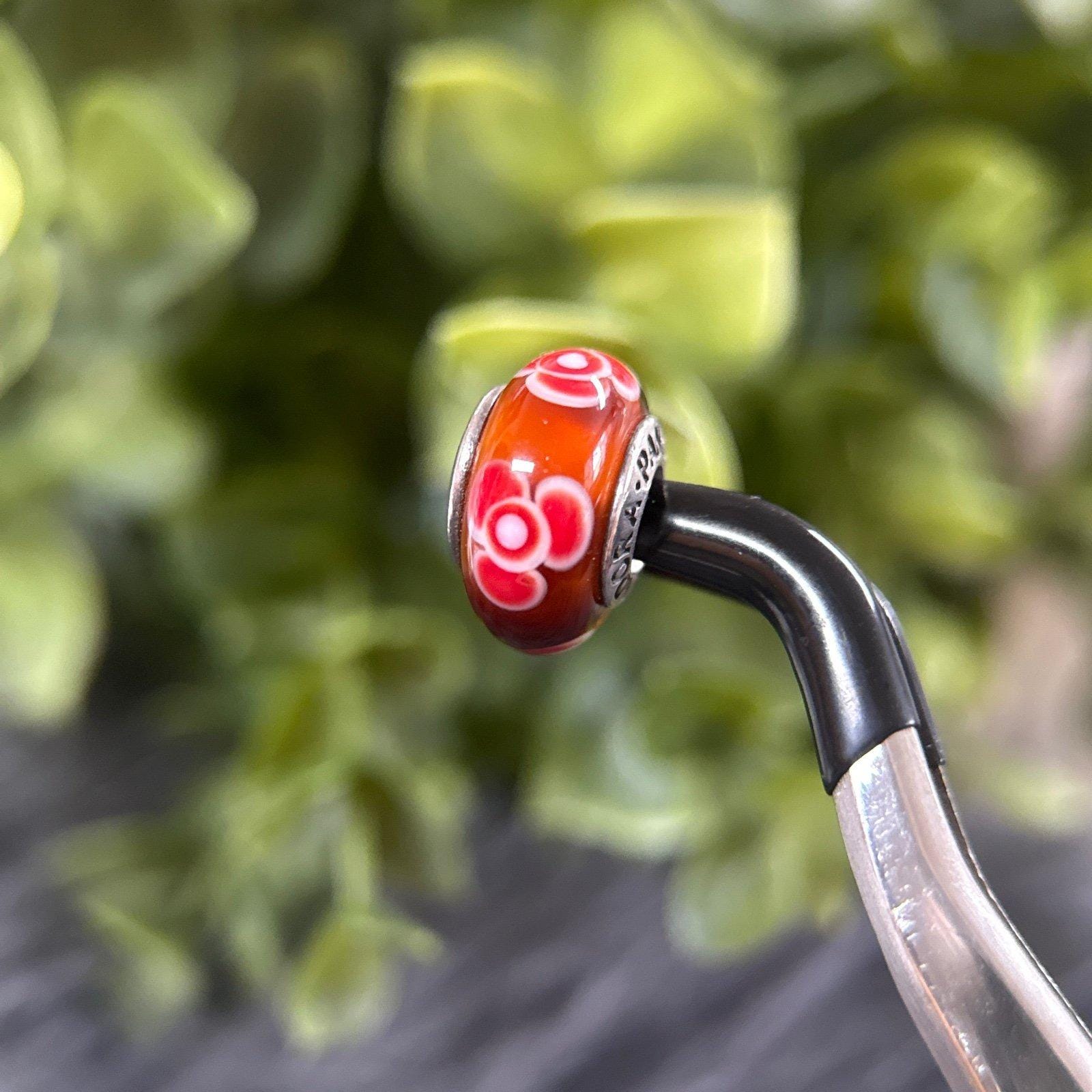 Authentic Pandora Flower Red Murano Glass Charm.