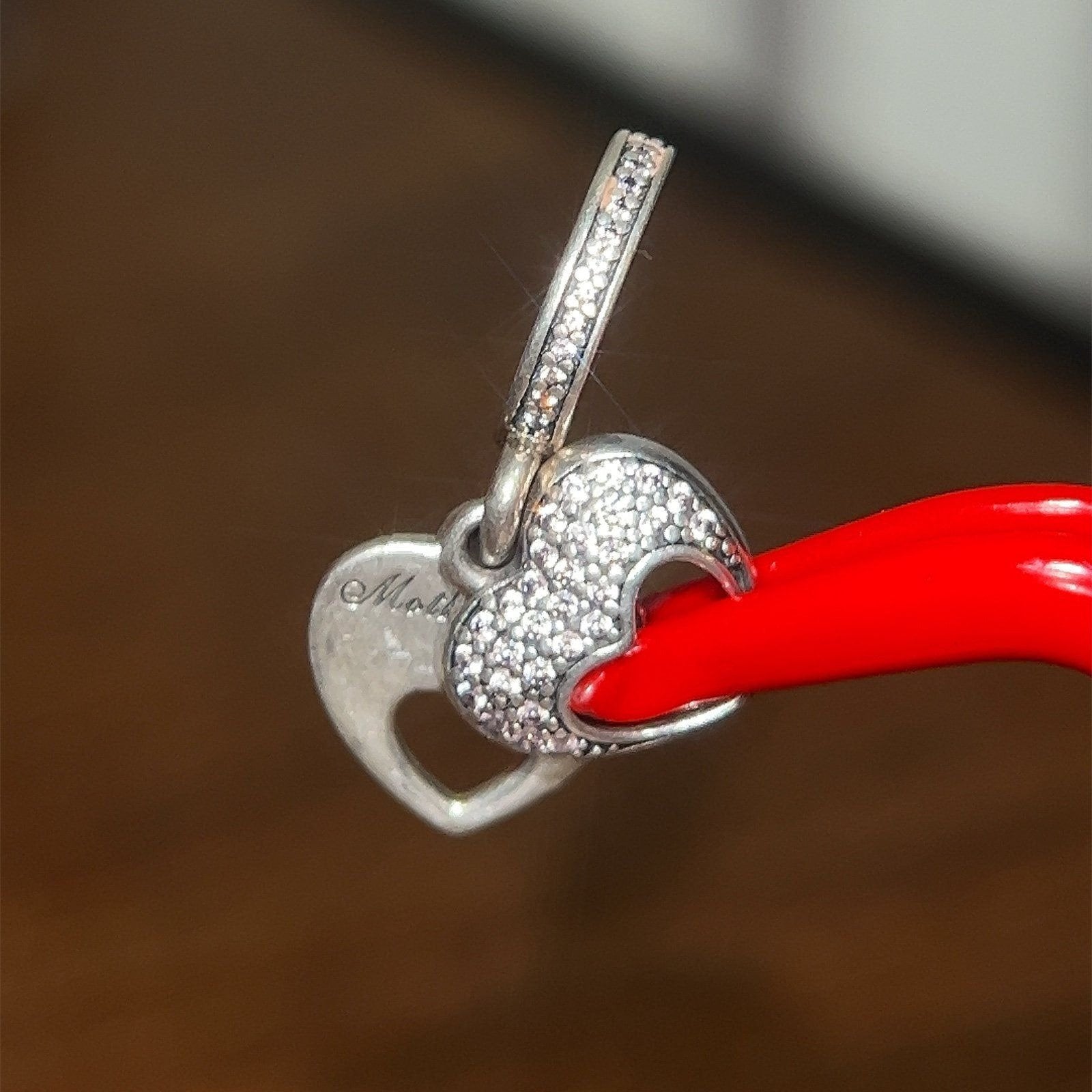 Authentic 100% Silver Pandora Pave Cz Mother’s Love Dangle Charm.